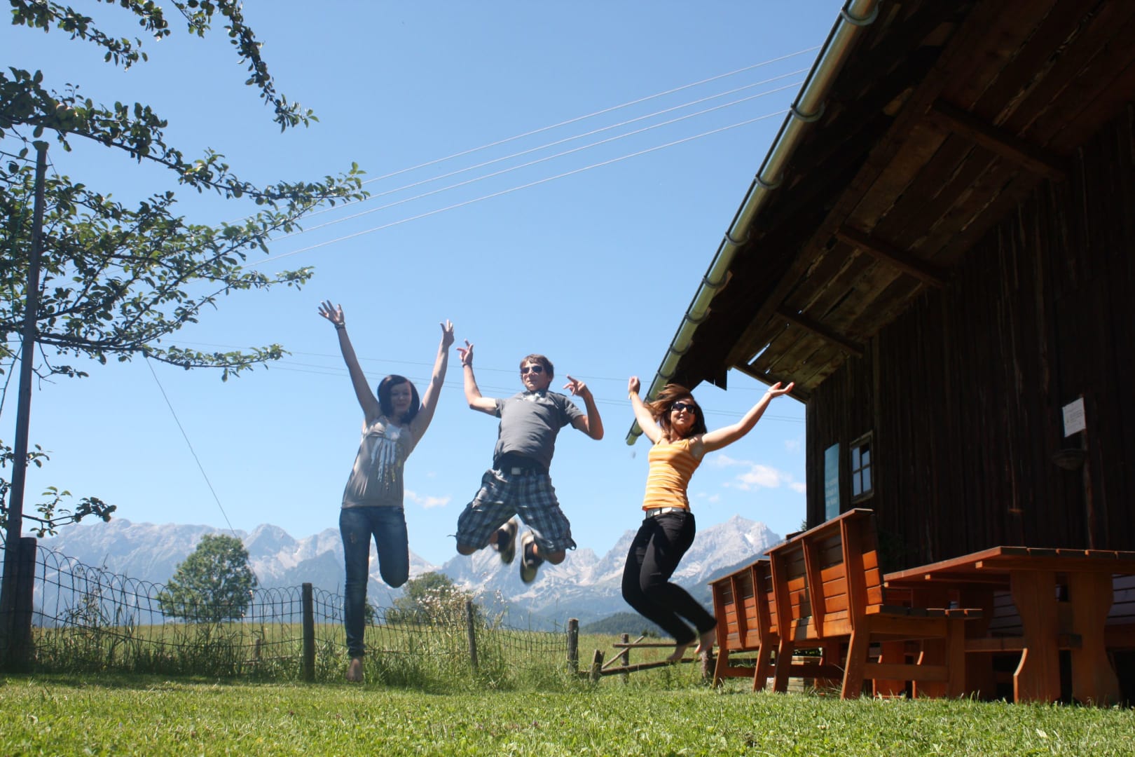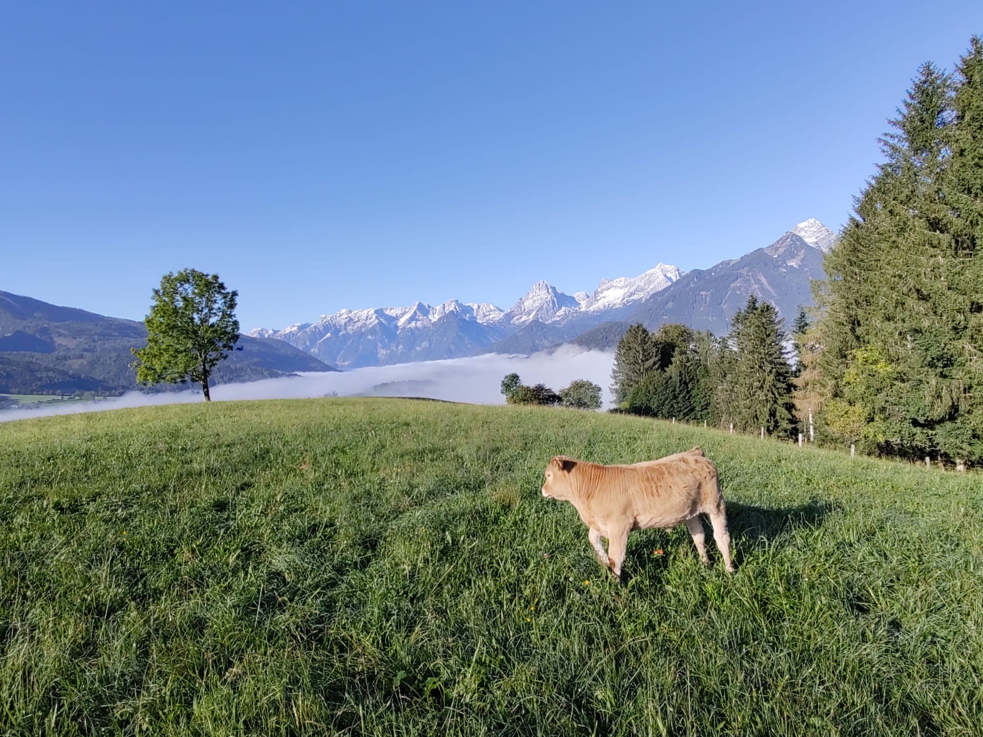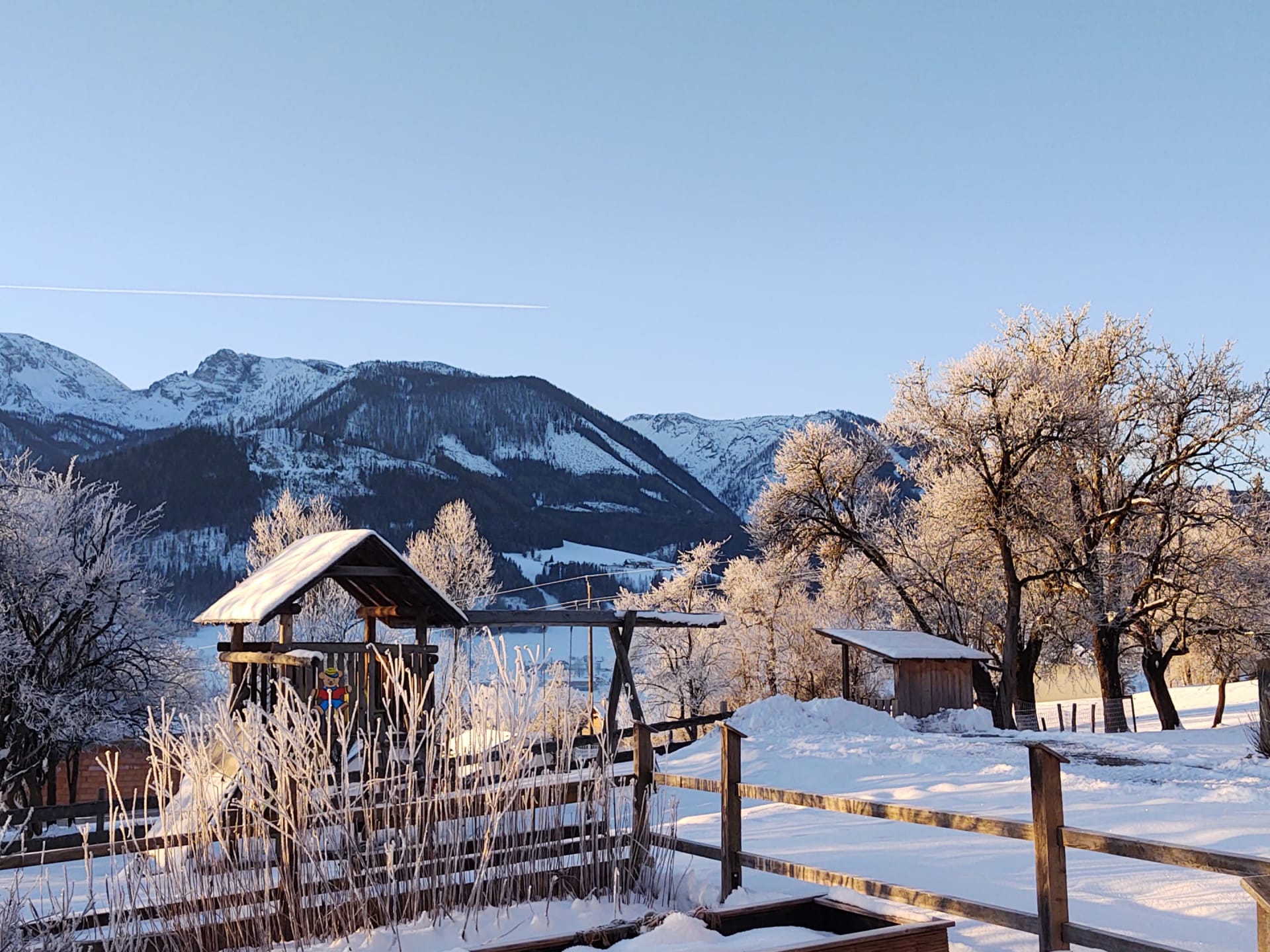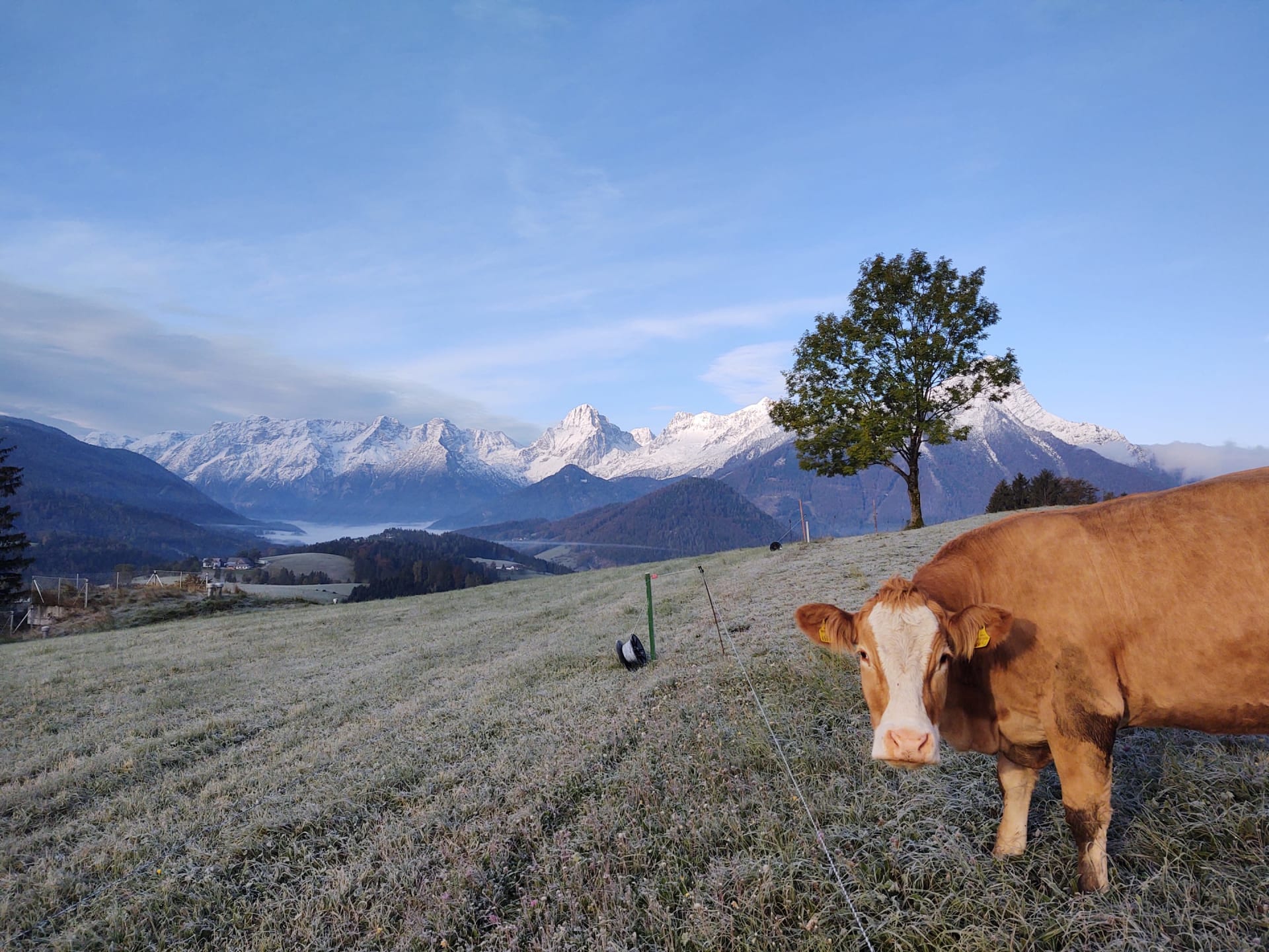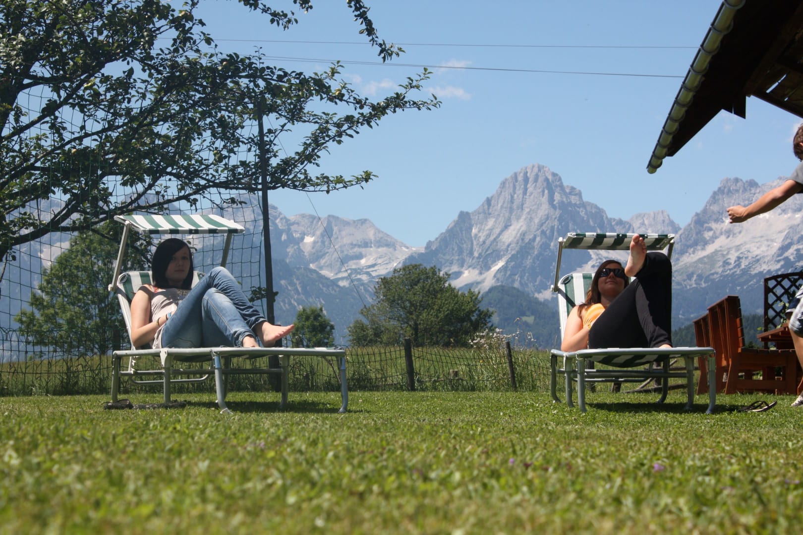 • einem Balkon mit Aussicht auf die Berge Bosruck, Pyhrgas und Scheiblingstein und unserem Hof.