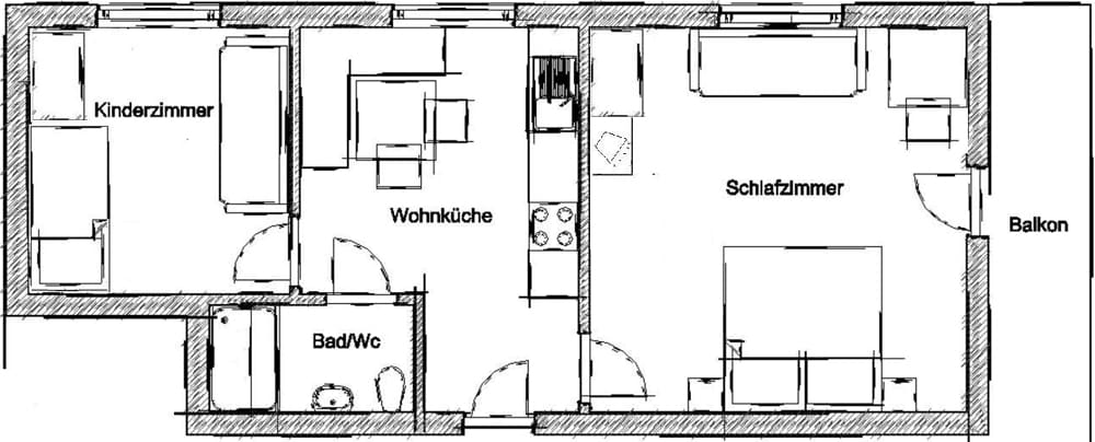 • einem kleinen Bad mit Dusche und WC sowie