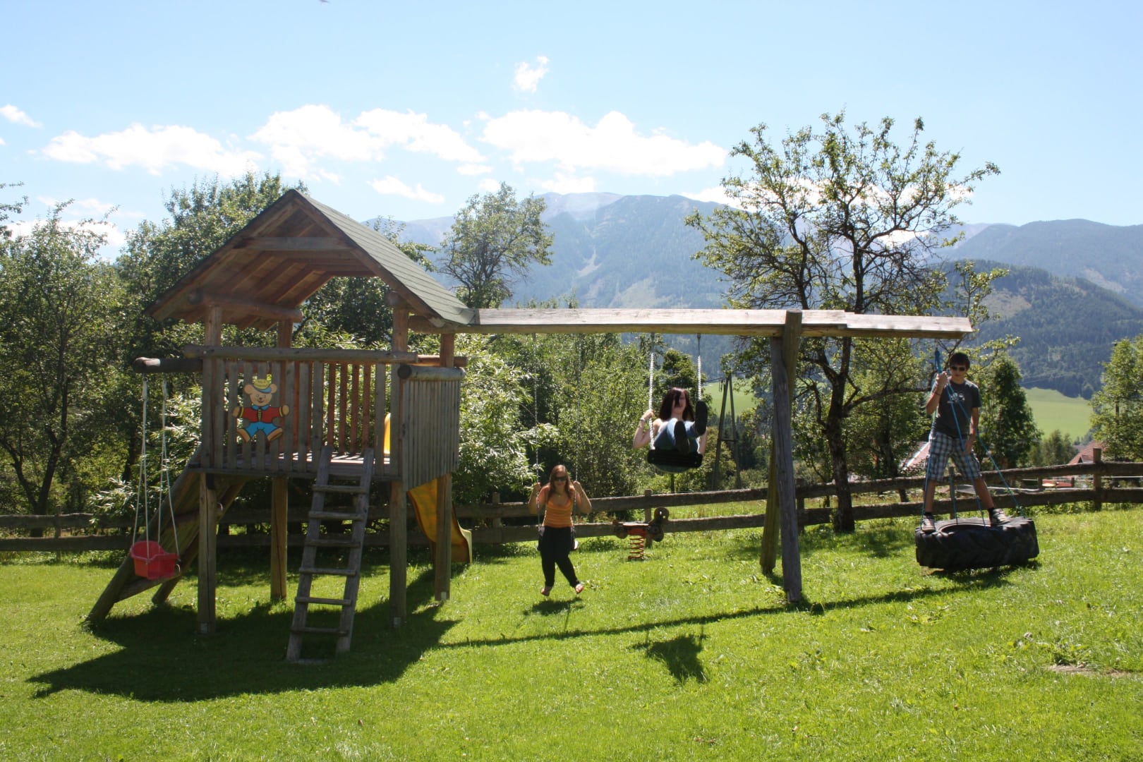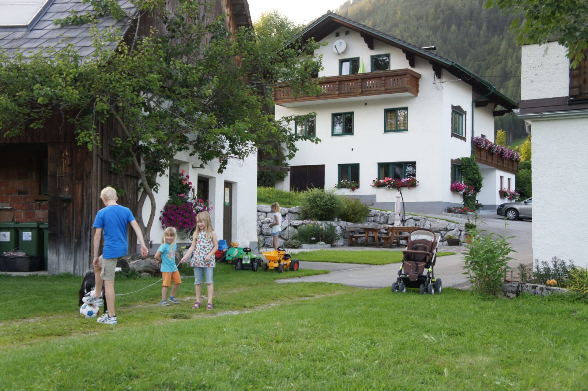Viel Platz und Freiraum rund um den Hof mit gemütlichen Gartenplätzchen, jede Ferienwohnung mit gemütlicher Wohnküche und Balkon. Spielwiese, großer Spielplatz, Spielzimmer, Sauna, rustikale Gästestube mit Kachelofen und WLAN, autofreie Lage, Minifußballwiese, Minitraktoren, Beobachten und Streicheln der Tiere, Liegewiese, vielleicht mal mitfahren am Traktor mit Bauer Hans. Alle Ferienwohnungen sind mit Massivholzmöbeln vom Tischler eingerichtet. Hier fühlt man sich wohl!