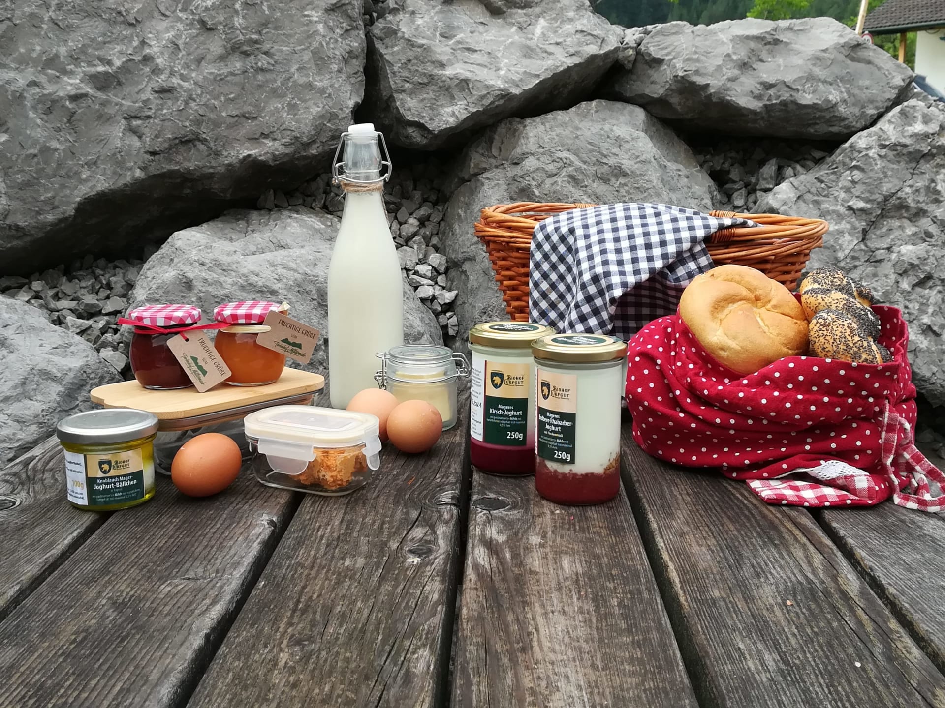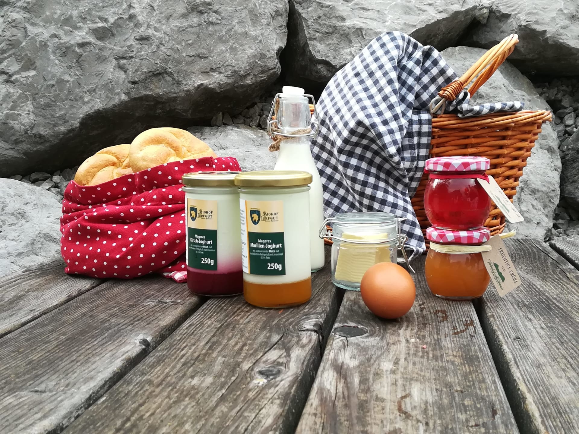 Sehr gerne bringen wir einen gut bestückten regionalen Frühstückskorb zu Ihnen vor die Woh-nungstür.