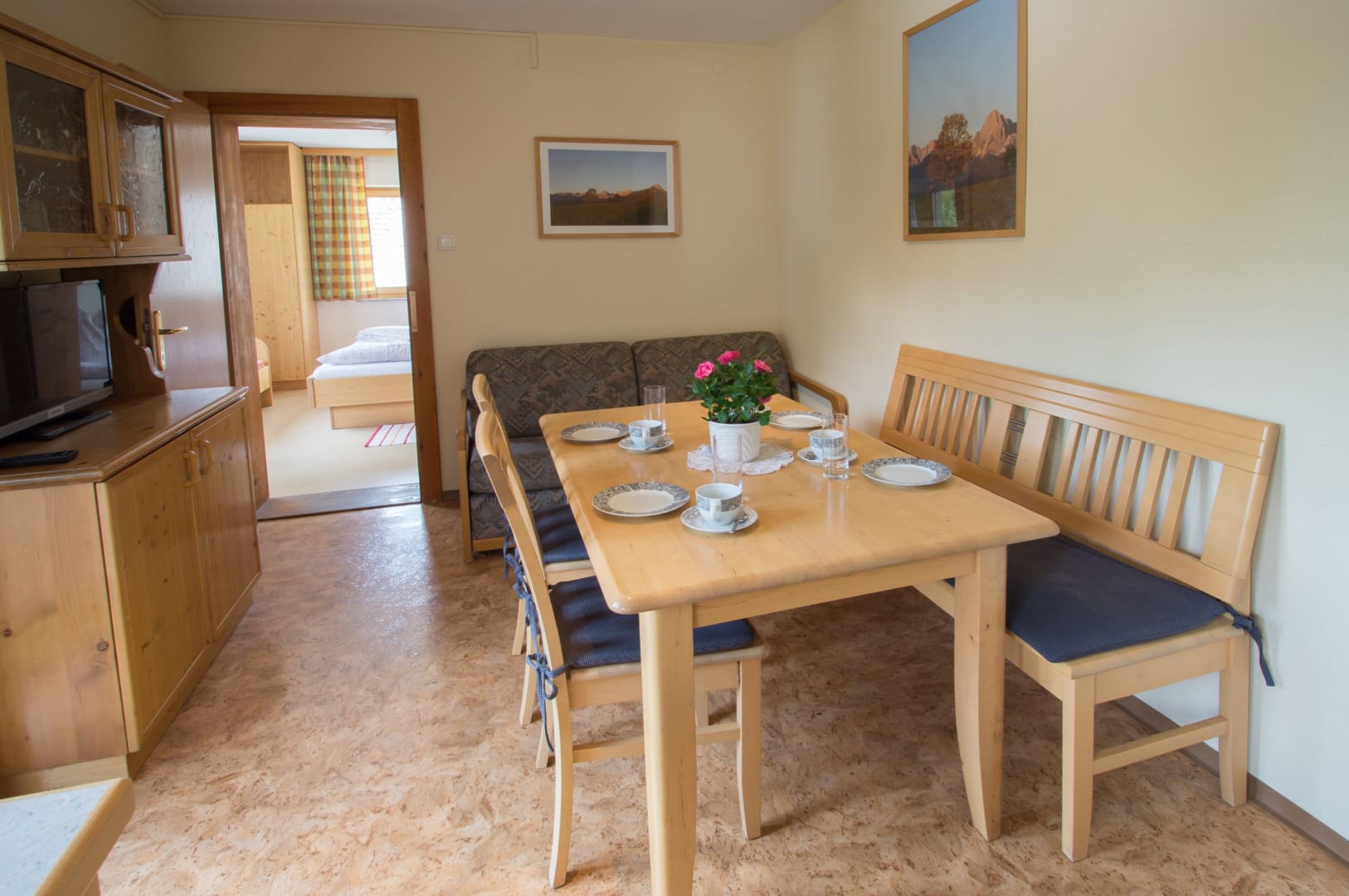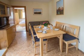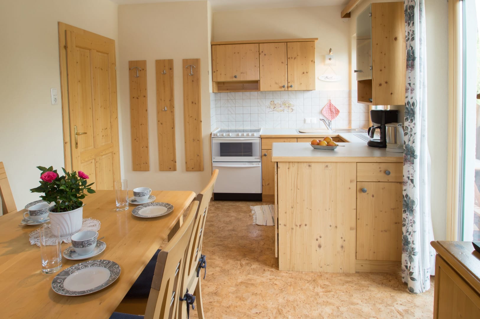 Schöne, sonnige Ferienwohnung mit gemütlicher und gut ausgestatteter Wohnküche, einem Schlafzimmer, Balkon mit Sonne vom frühen Morgen bis zum Nachmittag, Dusche/WC, Sat-TV und Radio-CD-Player. Gerne stellen wir ein Beistellbett für ein Baby bereit.