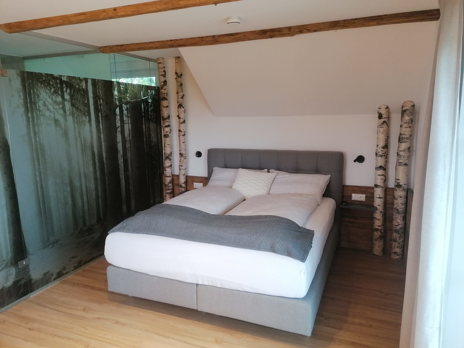 Dieses Appartement befindet sich im 1. Stock und beeindruckt mit toller Aussicht auf die Bergketten, den Wald und die umliegende Natur. Mit der südlichen Ausrichtung des überdachten großen Balkons lassen sich viele gemütliche Sonnenstunden genießen.
