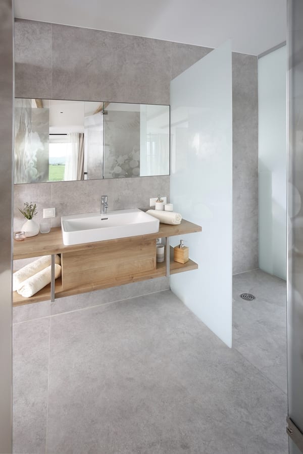 • 1 Badezimmer mit edlem Duschbereich, Föhn, Handtuchwärmer und Fenster