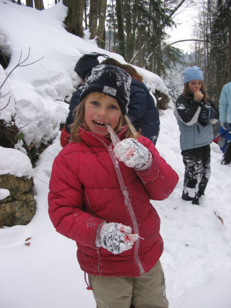 Am liebsten gehen unsere Gäste rodeln und toben im Tiefschnee. Die herrliche Landschaft lockt zu ausgedehnten Wanderungen. Kinder finden Spuren im Schnee.