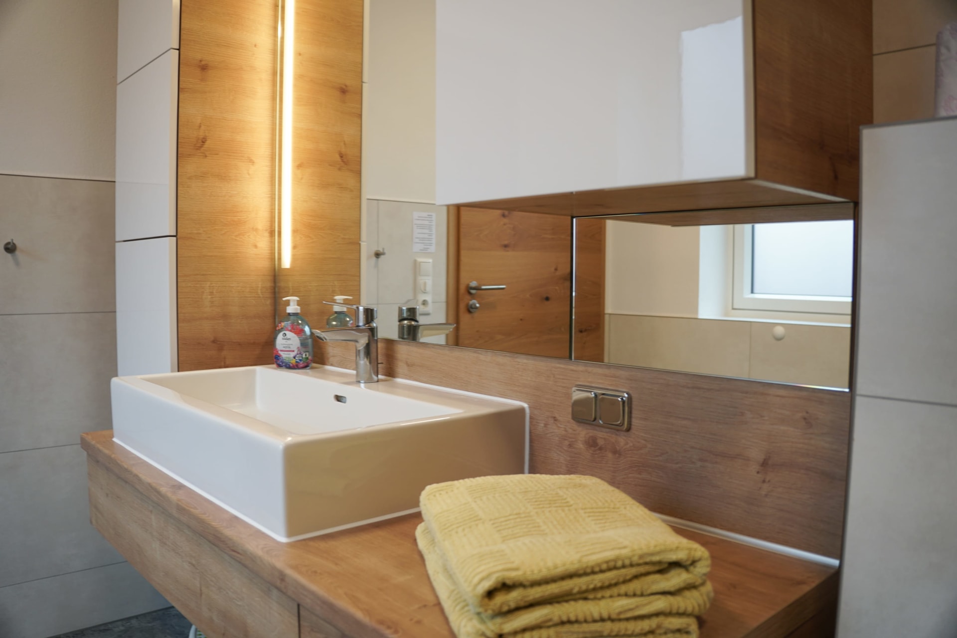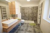 Das Familienzimmer Gänseblümchen hat einen geräumigen Vorraum mit Garderobe, zwei getrennte Schlafzimmer und ein wunderschönes Bad mit Dusche und WC.