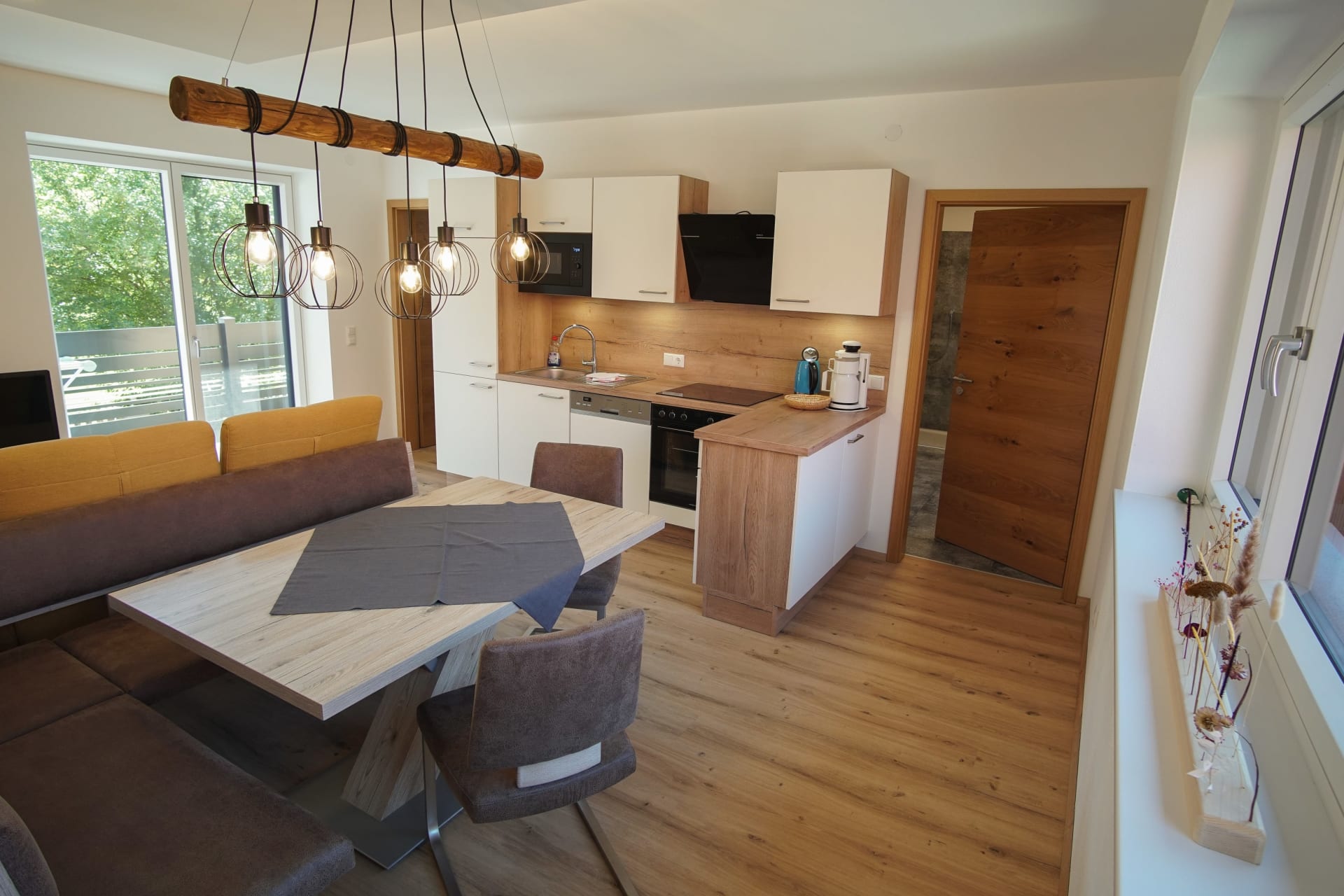 Aus der großen Wohnküche behalten Sie Ihre spielenden Kinder auf dem Kinderspielplatz immer im Auge.