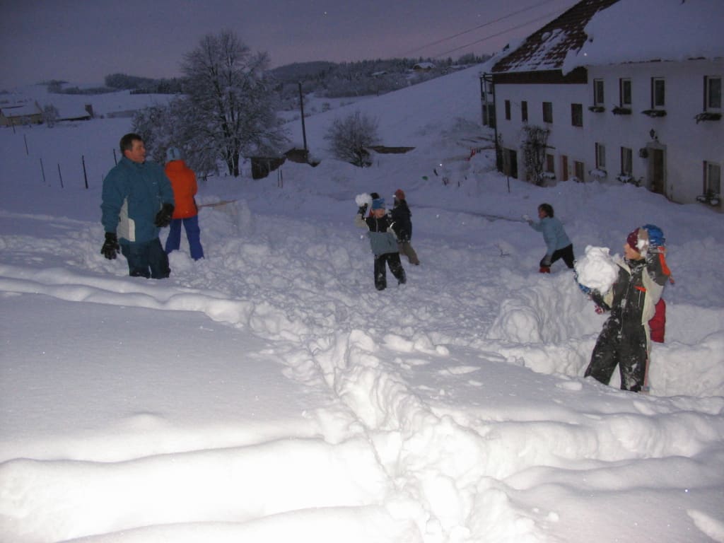 Am liebsten gehen unsere Gäste rodeln und toben im Tiefschnee. Die herrliche Landschaft lockt zu ausgedehnten Wanderungen. Kinder finden Spuren im Schnee.