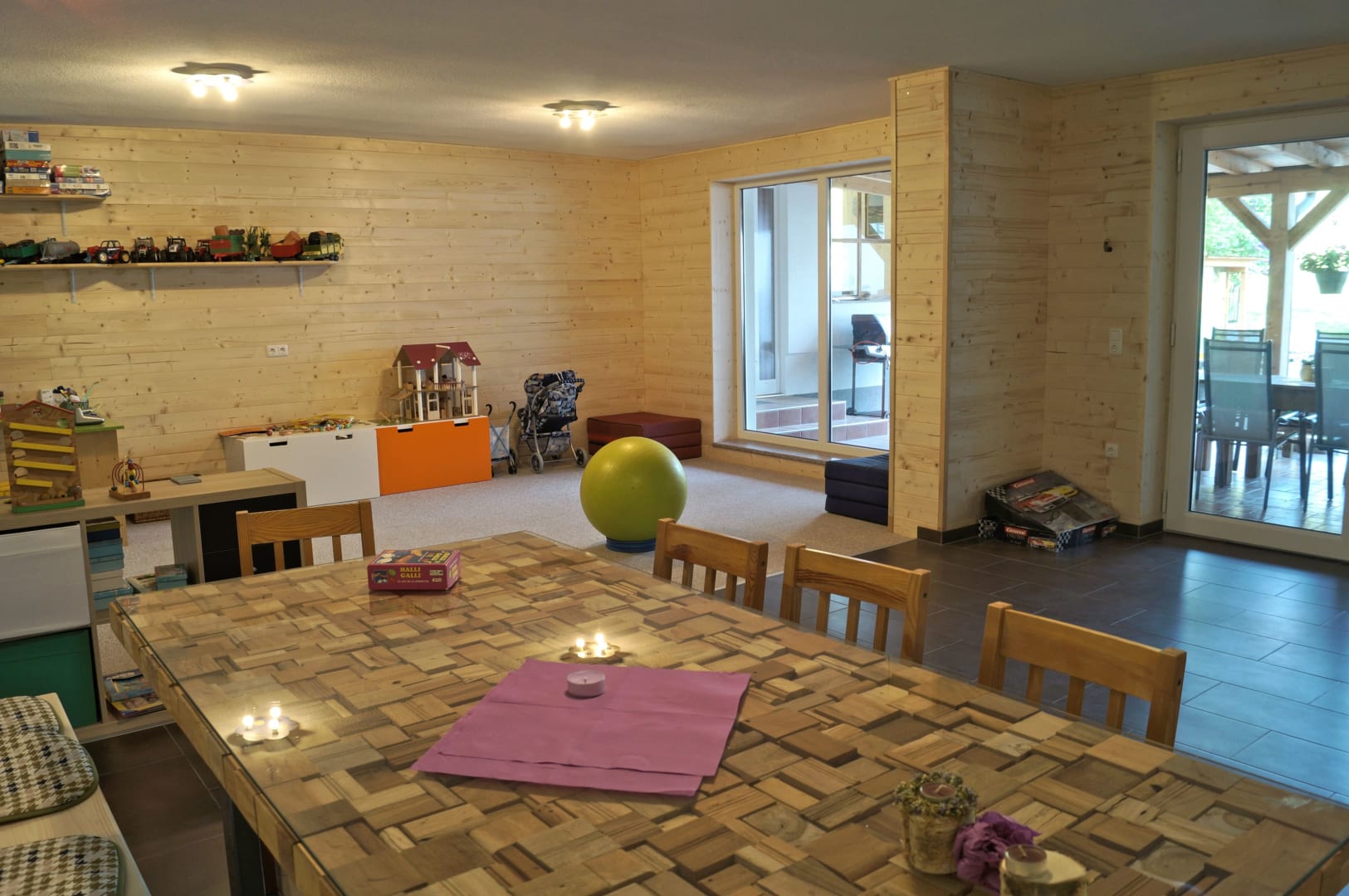 Bei uns am Bauernhof vergnügen sich Ihre Kinder gerne bei den Tieren, streicheln die Kälbchen, füttern die Kätzchen und Hasen, verweilen beim Pony Emma und holen sich ihr Frühstücksei natürlich selbst vom Hühnernest. Ein großer Spielraum mit vielen Spielsachen steht den Kindern zur Verfügung.