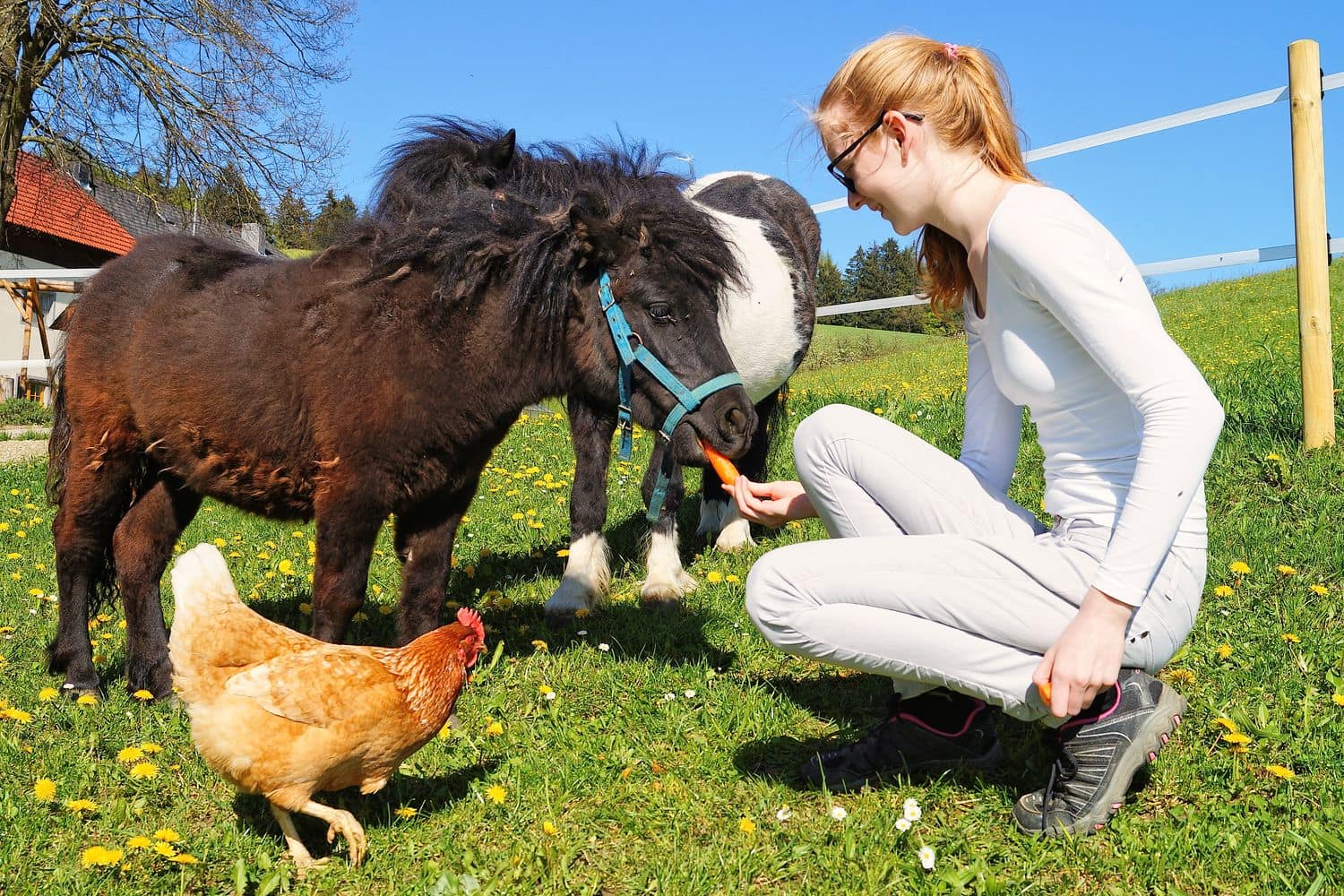 Bei uns am Bauernhof vergnügen sich Ihre Kinder gerne bei den Tieren, streicheln die Kälbchen, füttern die Kätzchen und Hasen, verweilen beim Pony Emma und holen sich ihr Frühstücksei natürlich selbst vom Hühnernest. Ein großer Spielraum mit vielen Spielsachen steht den Kindern zur Verfügung.