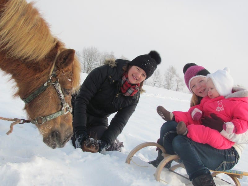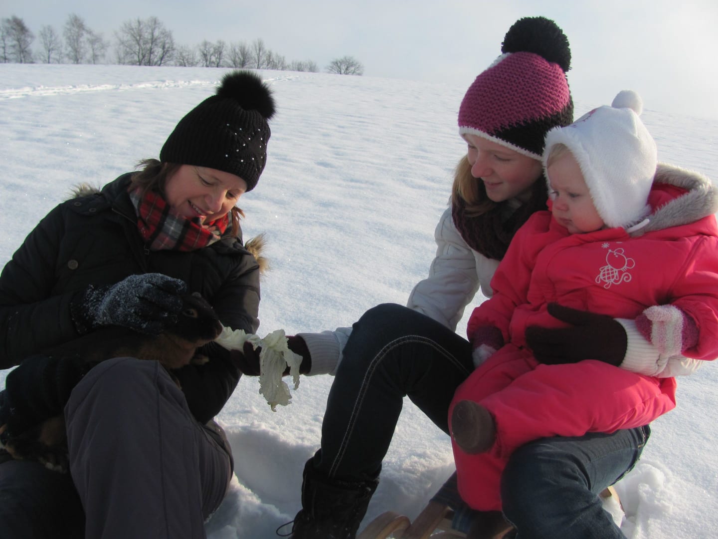 Am liebsten gehen unsere Gäste rodeln und toben im Tiefschnee. Die herrliche Landschaft lockt zu ausgedehnten Wanderungen. Kinder finden Spuren im Schnee.