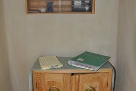 Die gemütliche Ferienwohnung HARMONIE für 2 Personen im Parterre: 1 Wohnküche, 1 Schlafzimmer mit Doppelbett, Dusche und separates WC. Durch Tonputz genießen Sie ein besonderes Ambiente der Farben und Formen. Diese dritte Haut hilft Ihnen, Ihre Gesundheit und Leistungsfähigkeit zu erhalten. Auf Wunsch und Aufpreis haben Sie die einzigartige Möglichkeit, in feiner LEINEN-BETTWÄSCHE zu schlafen.