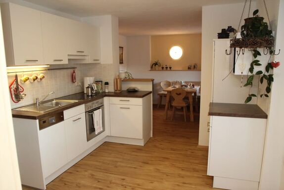 Ferienwohnung für 2 Personen, behindertengerecht (rollstuhlbefahrbar). Bestehend aus Küche mit Terrasse in den Kräutergarten, Wohnzimmer mit Sitzecke und Sofa, Sat-TV und Internetanschluss. Schlafzimmer mit Couchgarnitur, Sat-TV und Internetanschluss. Badezimmer mit Dusche/WC.