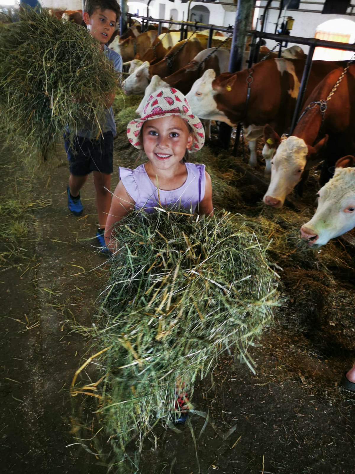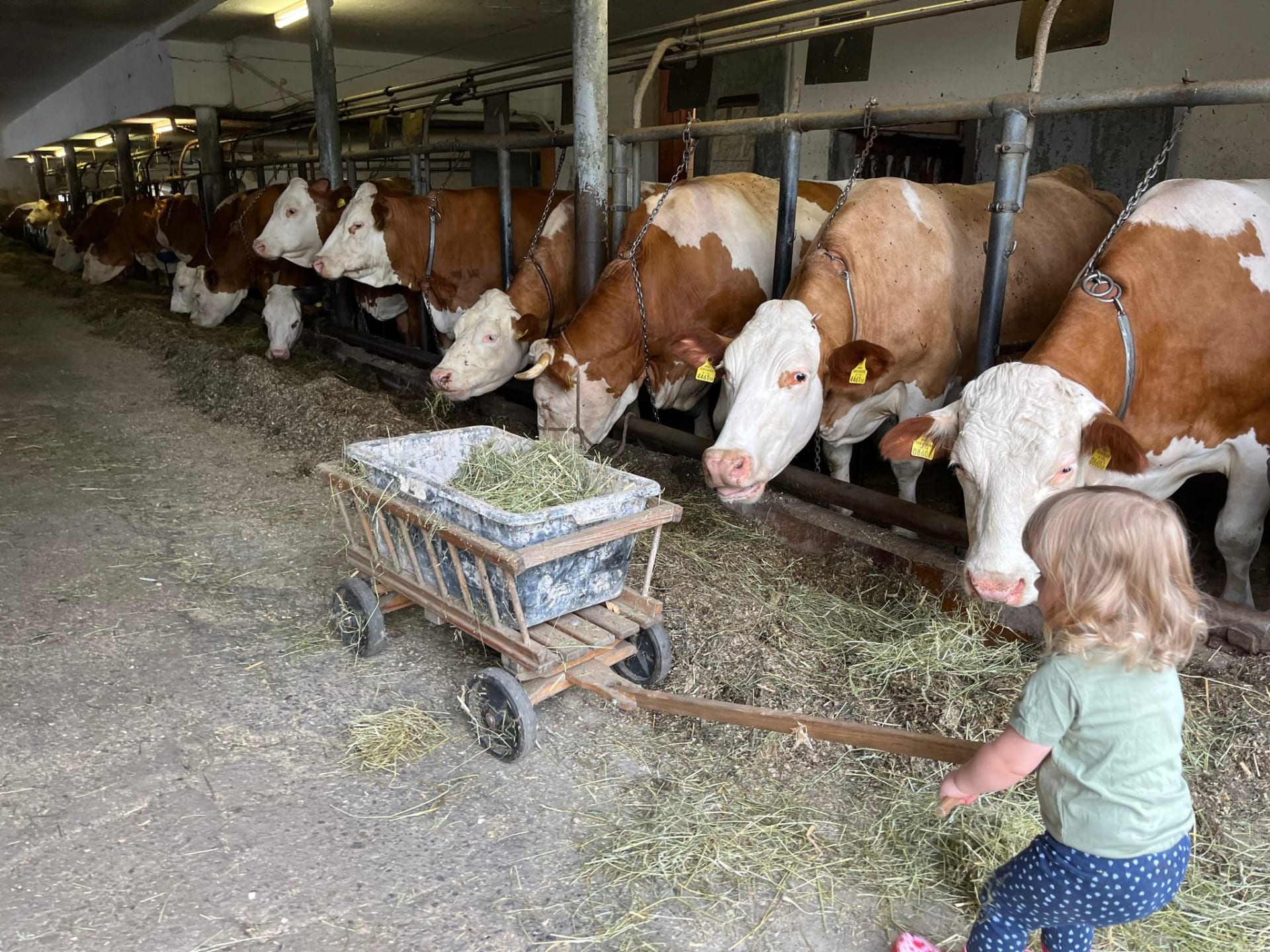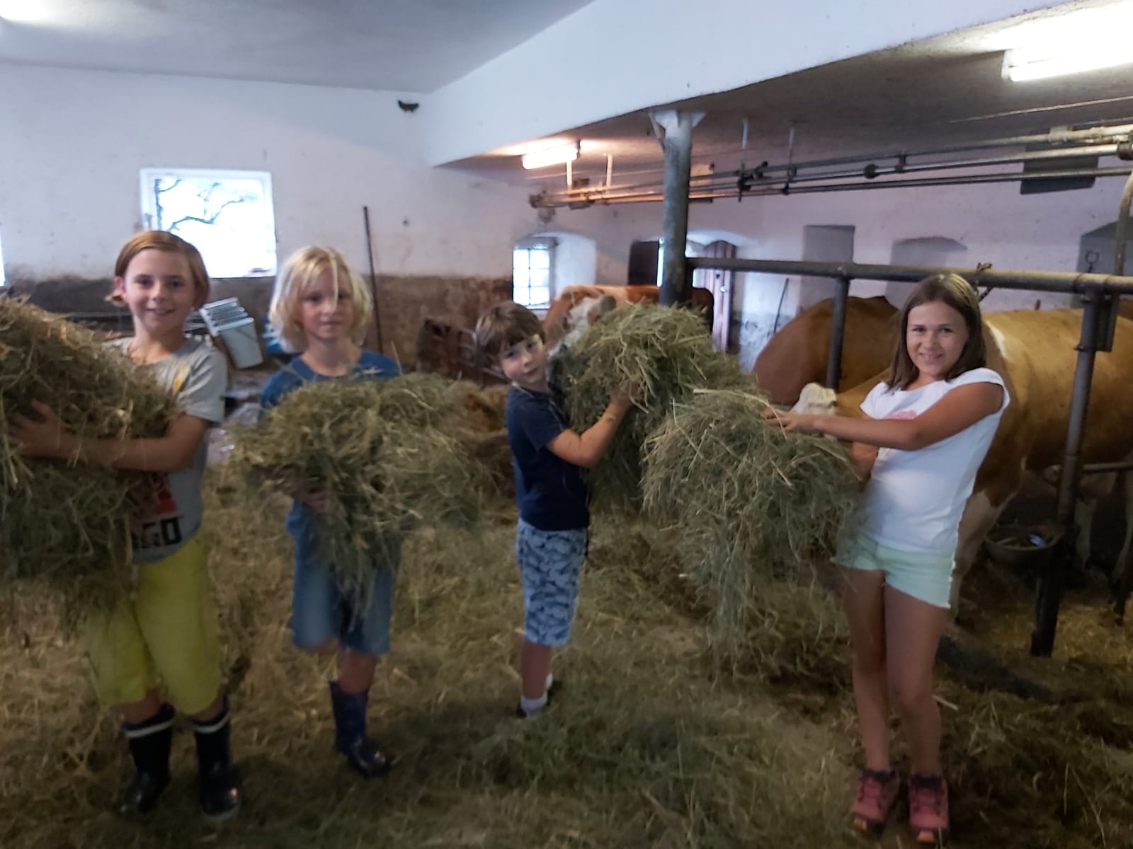 - im Stall beim Füttern der Kühe und Kälber mithelfen?