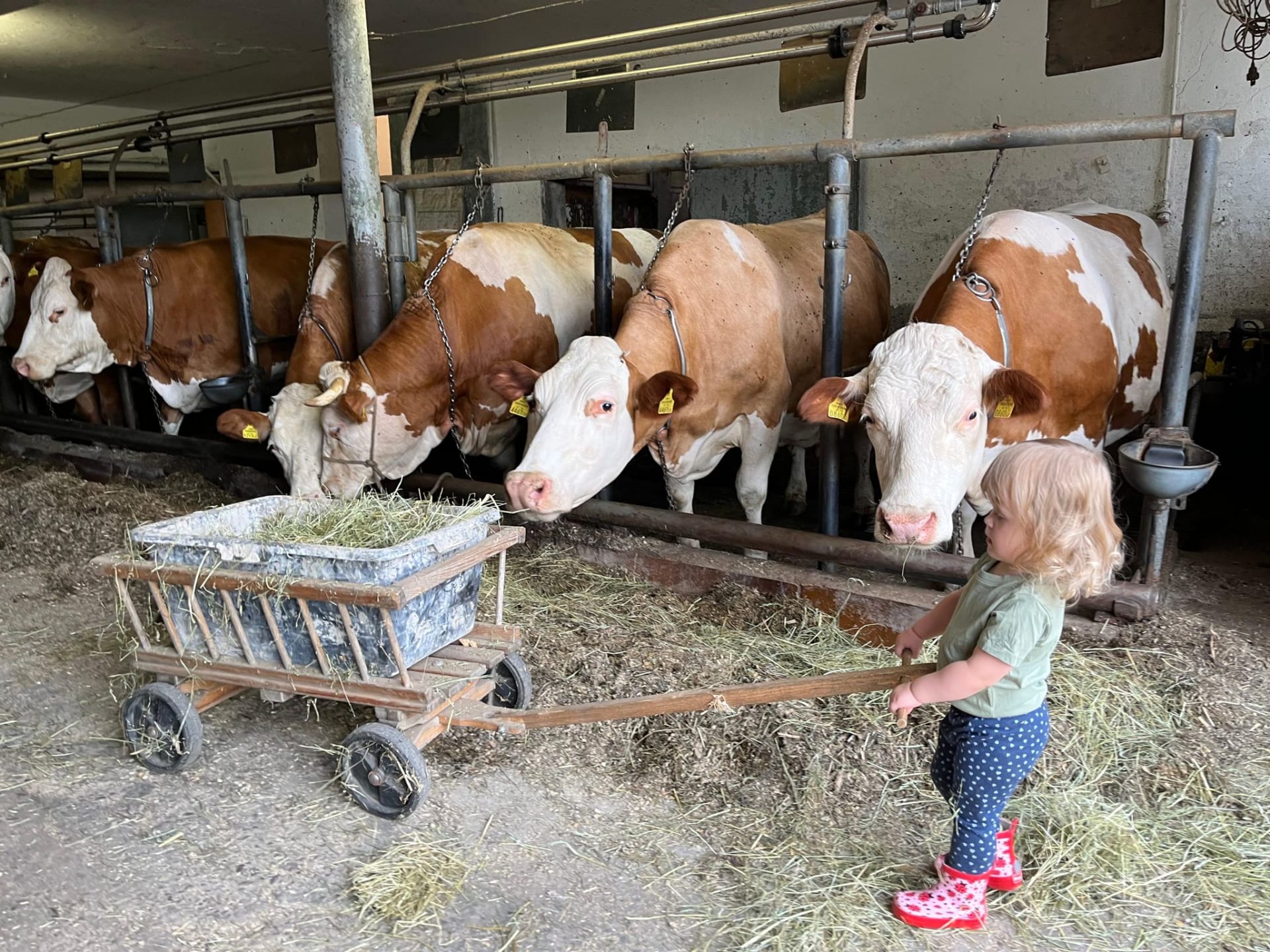 - im Stall beim Füttern der Kühe und Kälber mithelfen?
