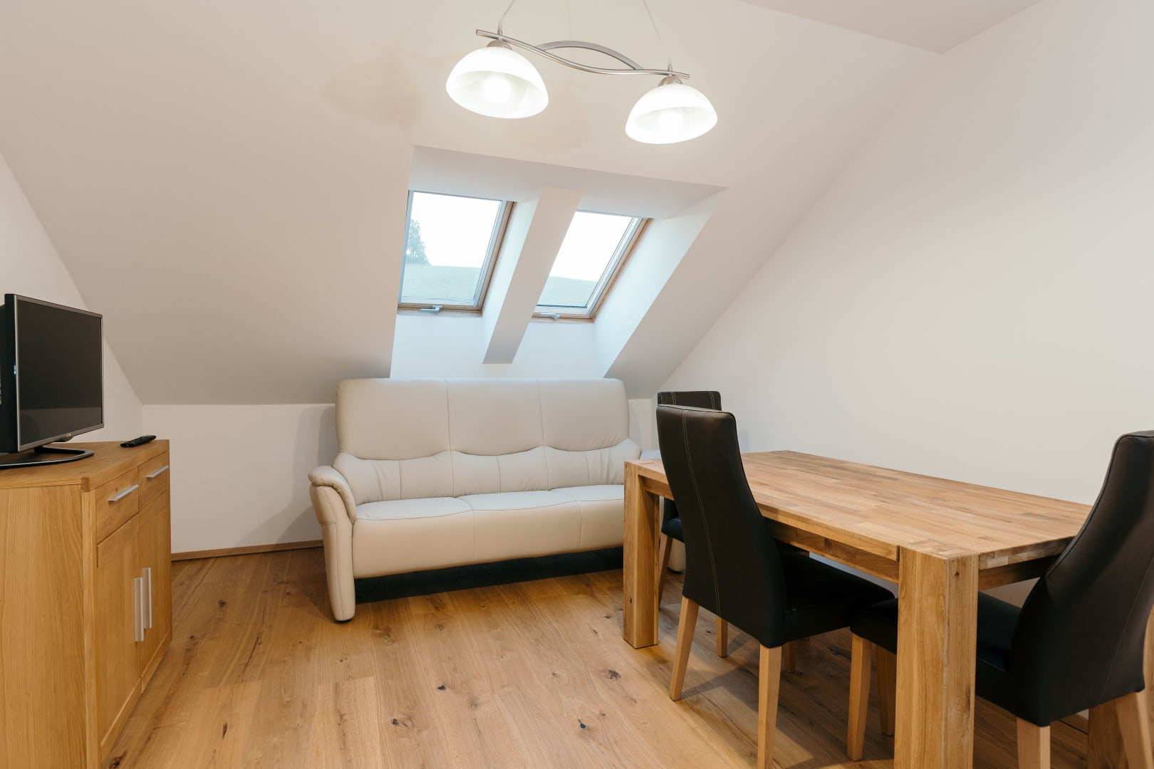 • einem Schlafzimmer mit Doppelbett (alle Möbel aus Zirbenholz),
