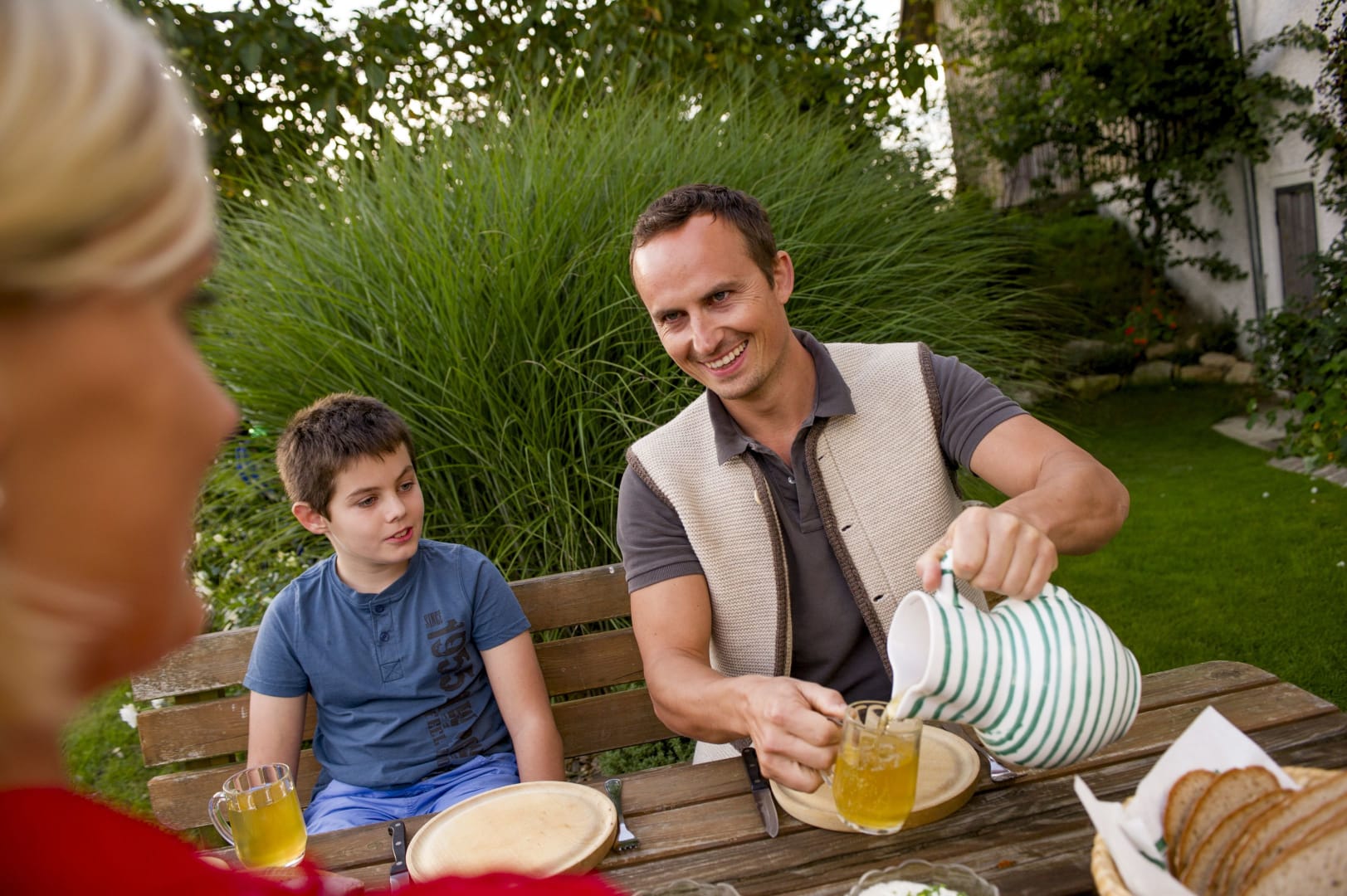 Sie können die Arbeiten auf dem Hof miterleben und hofeigene Produkte erwerben.