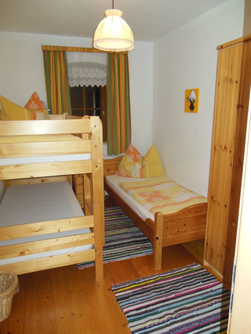 Helle gemütliche Wohnung mit Holzfußböden; Wohnküche ist mit Sitzgruppe, Sofa, Sat-Fernseher, Microwelle, E-Herd, Geschirrspüler, Kühlschrank mit Gefrierfach, Toaster, Eierkocher, Wasserkocher und Kaffeemaschine ausgestattet; Kinderzimmer mit Stockbett und Einzelbett; Großes Bad mit Fußbodenheizung, Dusche und WC. Handtücher, Duschtücher, Geschirrtücher und Bettwäsche ist vorhanden.