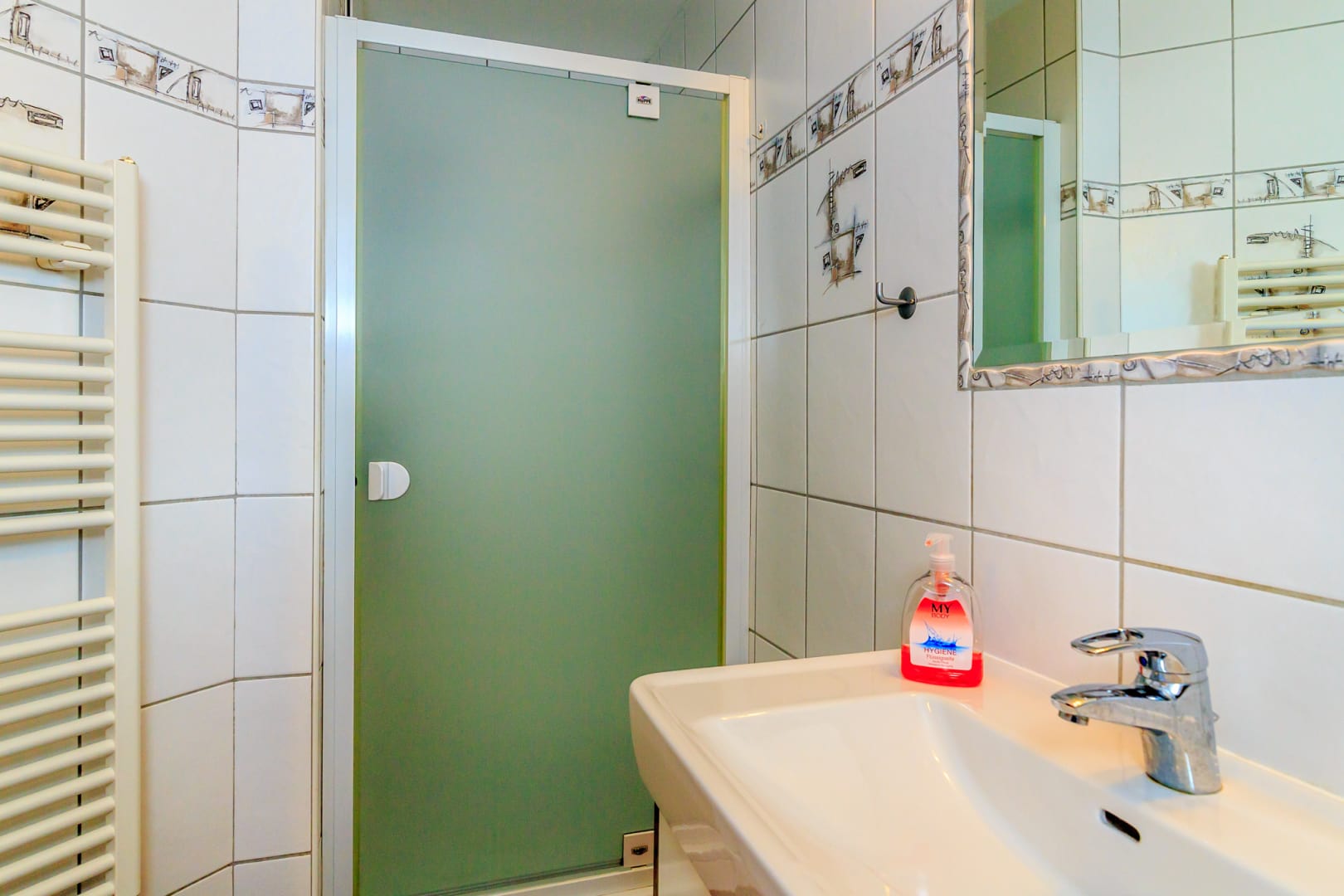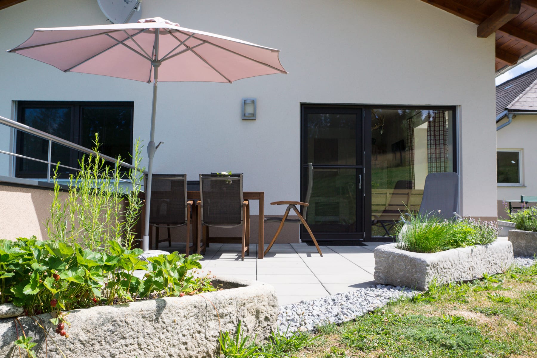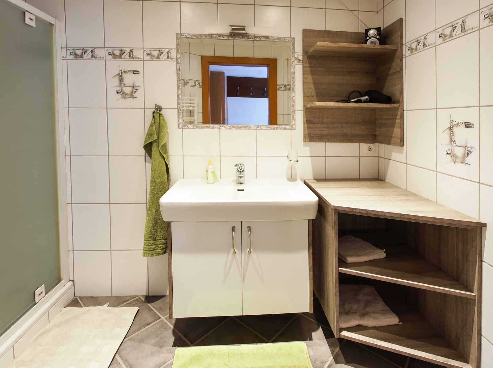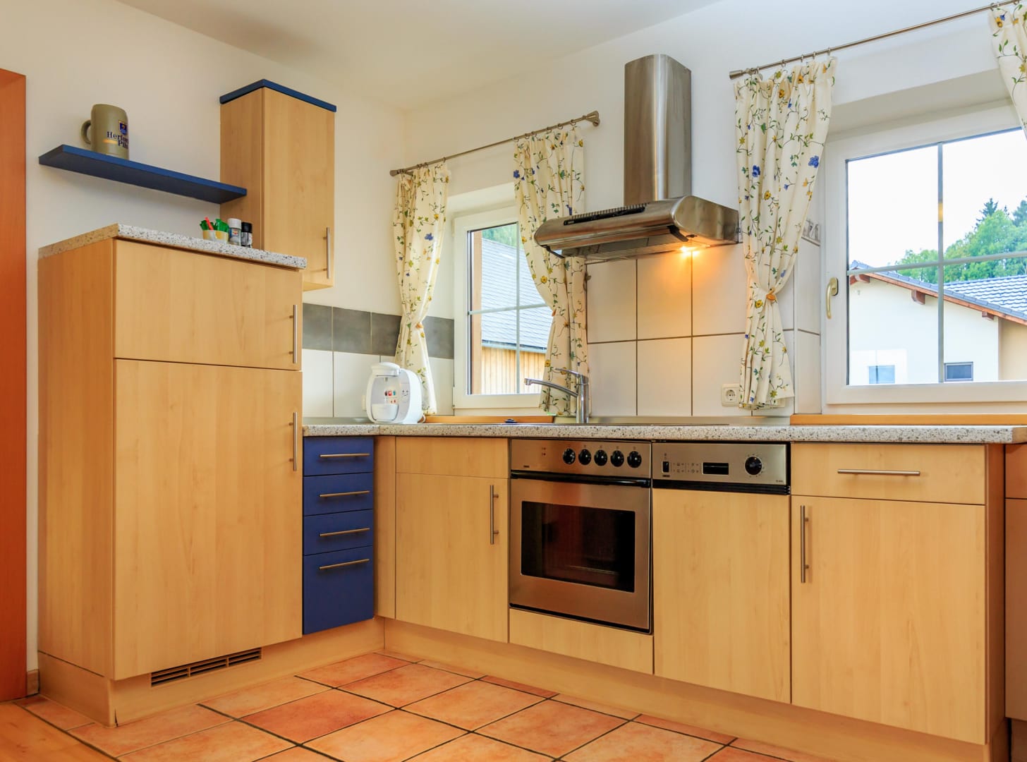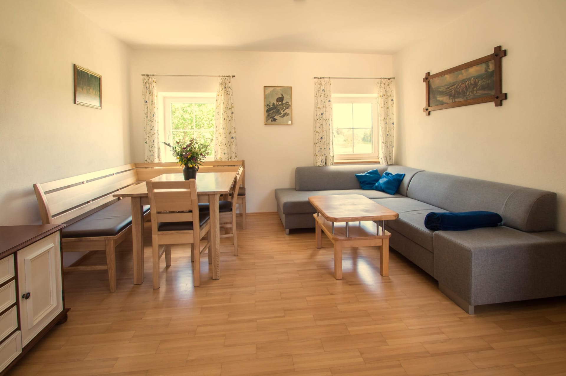 Helle Ferienwohnung mit Wohnküche mit Geschirrspüler, Elternschlafzimmer, Kinderzimmer, Vollholzmöbeln, tollem modernem Bad mit Dusche‚ Föhn‚ WC extra. Flat-TV‚ Internet‚ Babyausstattung, Insektenschutz, eigener Eingang. Ruhiger Balkon im Innenhof.