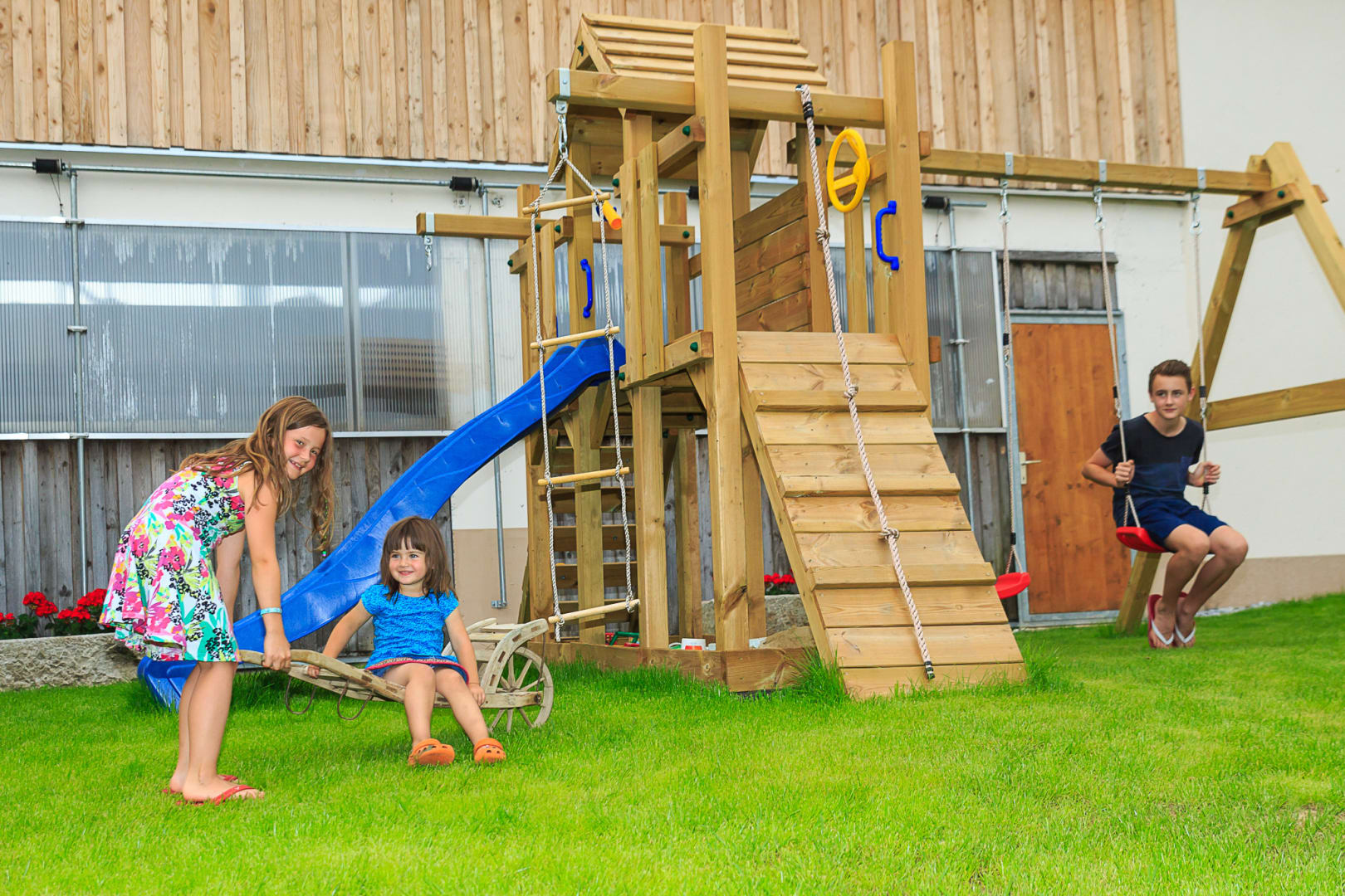 Vom Füttern der Tiere, über lustiges Sackrutschen, dem Spüren von Natur und Wald bis hin zu einfach grenzenlosem Spielen und Herumtollen - bei uns ist immer was los, ob im Winter beim Schifahren, Schlittenfahren, Langlaufen oder Schneeschuhwandern oder im Sommer beim Wandern, Radfahren, Bogenschießen, Klettern und bei der Hofarbeit.