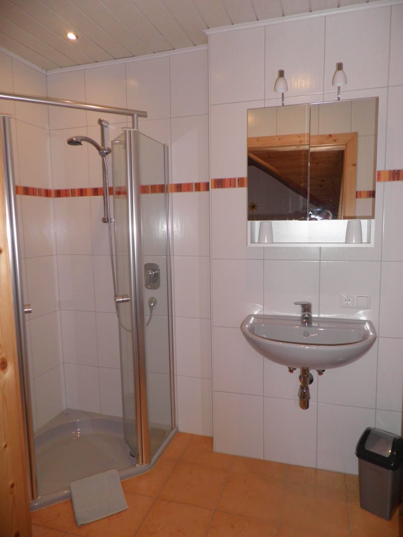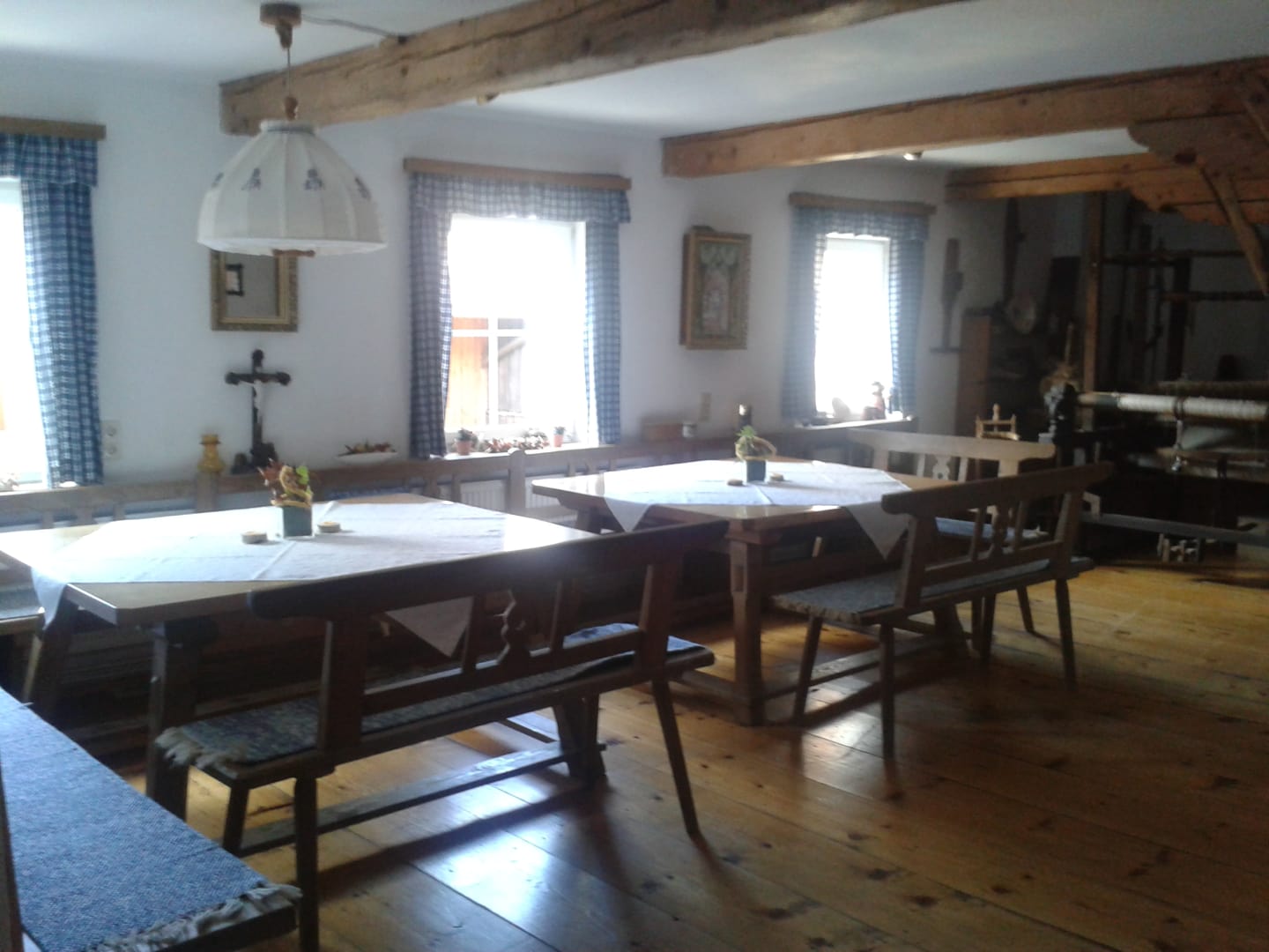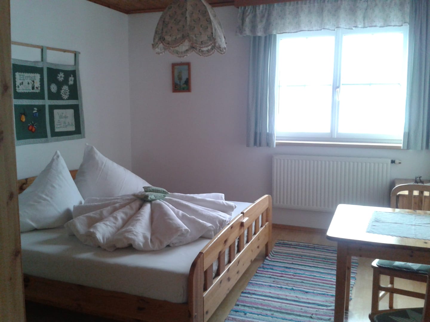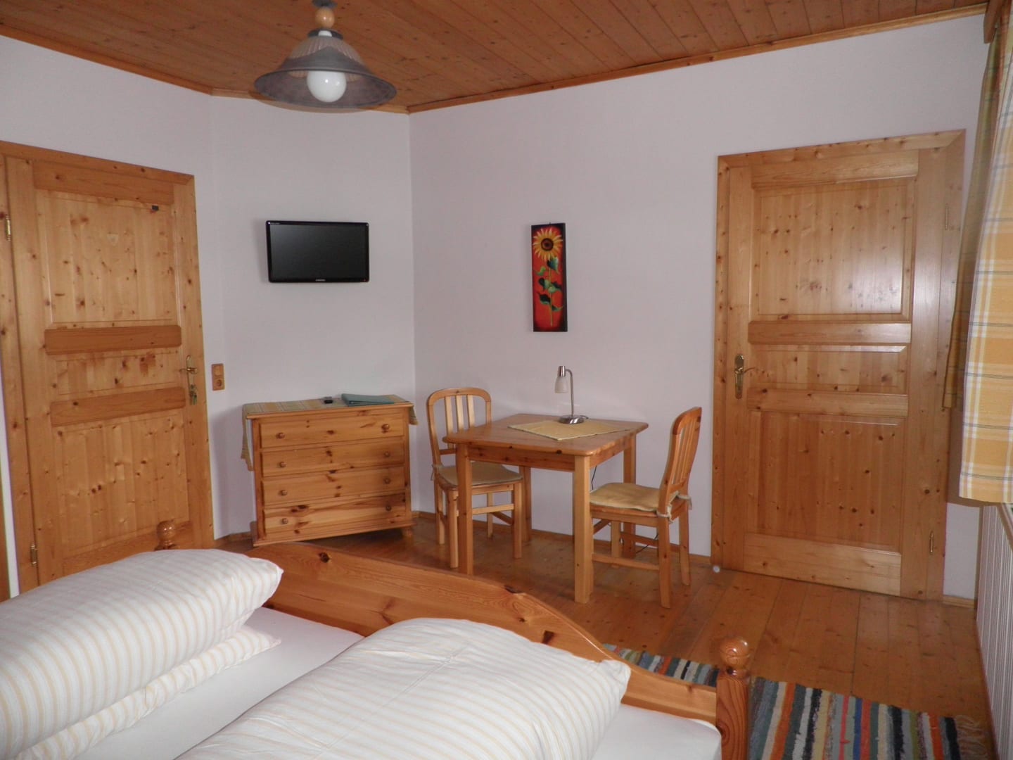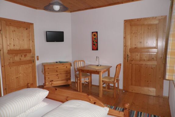 Unser 20 m² großes Sonnenblumenzimmer ist mit Dusche, WC, Sat-TV und Vollholzmöbeln ausgestattet. Nach einem gemütlichen Abendspaziergang entlang der Großen Mühl sorgt unsere Leinenbettwäsche für einen erholsamen Schlaf.