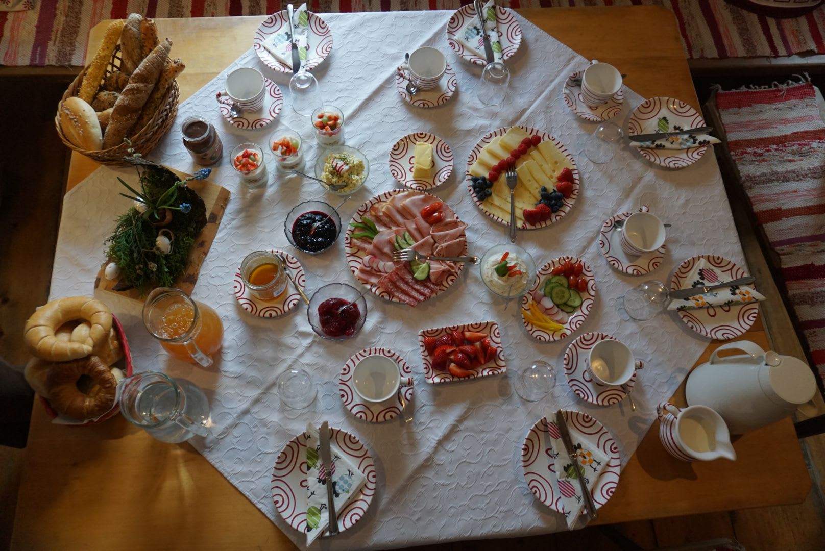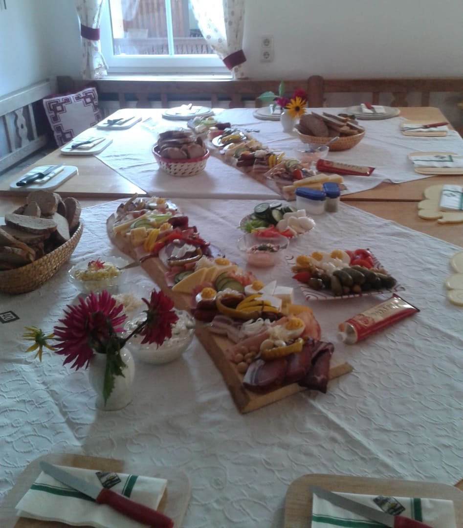 • Wir bieten folgende Verpflegung am Betrieb: Frühstück, Produkte vom eigenen Hof oder Hofladen, Brötchenservice