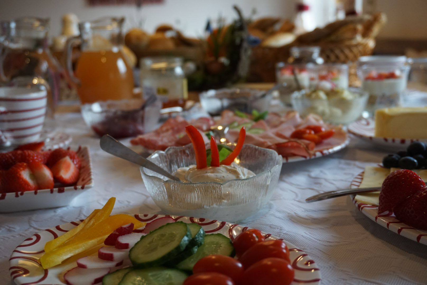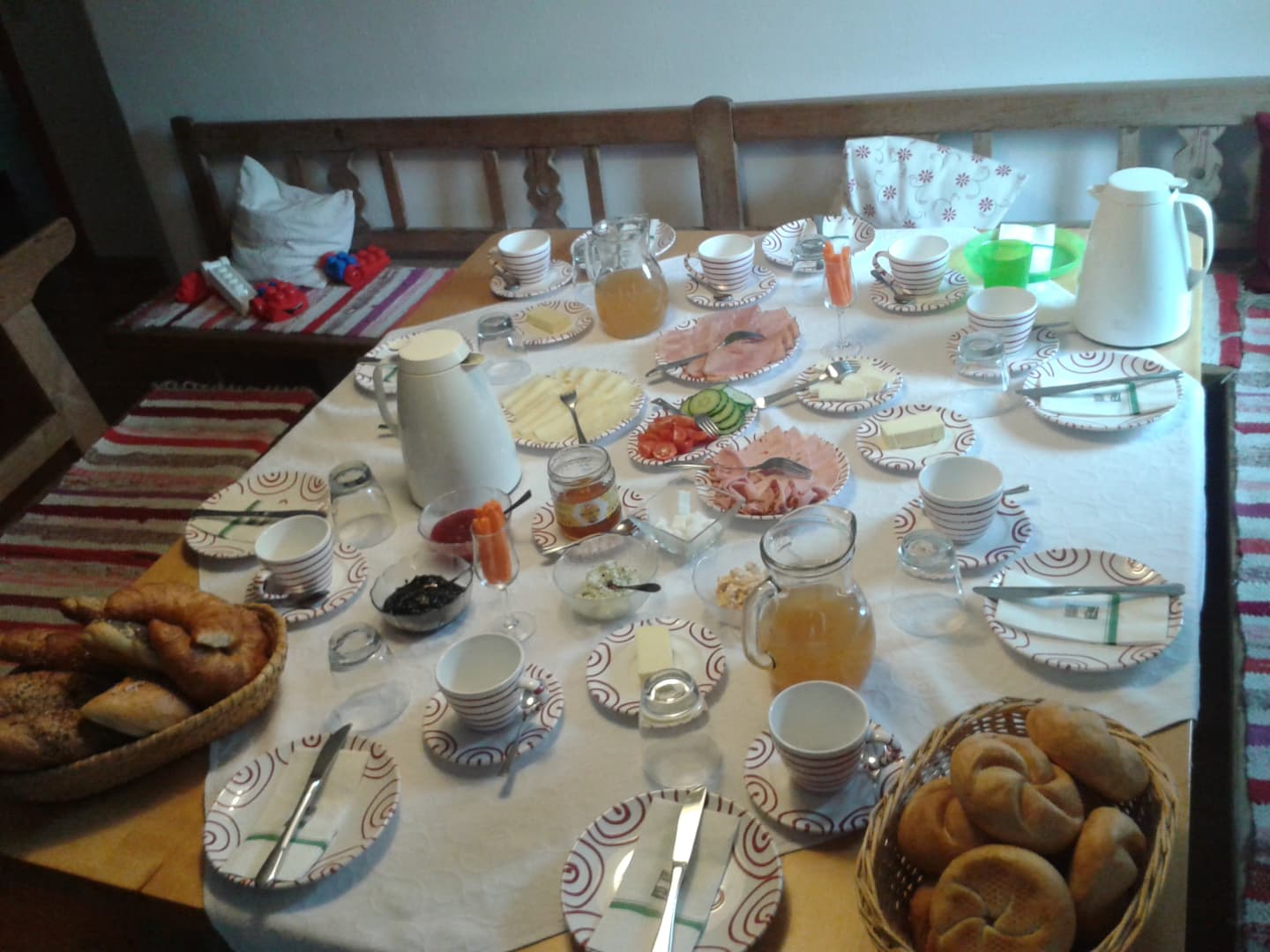 • Wir bieten folgende Verpflegung am Betrieb: Frühstück, Produkte vom eigenen Hof oder Hofladen, Brötchenservice