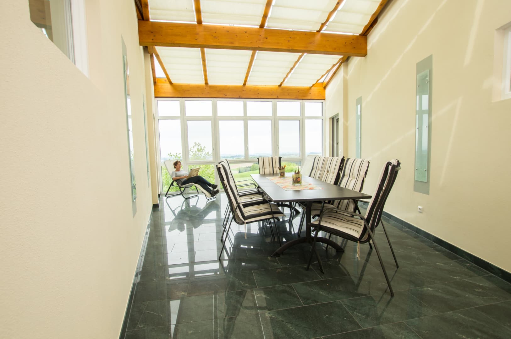 Genießen Sie ein paar erholsame Tage in unserer modern ausgestatteten Ferienwohnung mit Zugang zum Wintergarten. Von dort aus können Sie die Sterne am Himmel zählen, den Sonnenuntergang beobachten oder einfach nur die Sicht ins Ferne genießen.