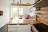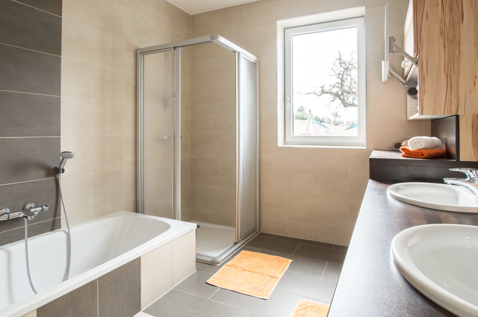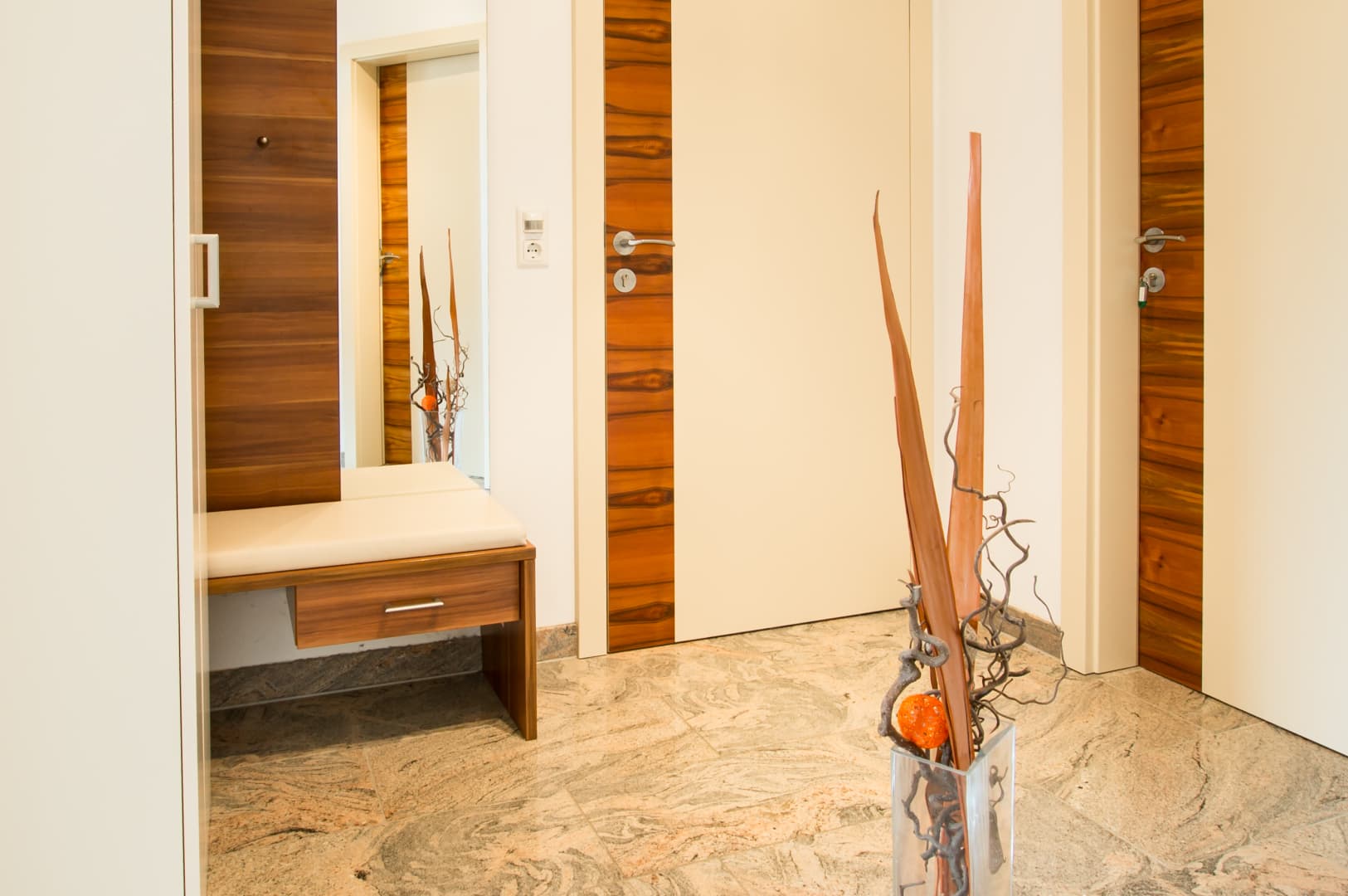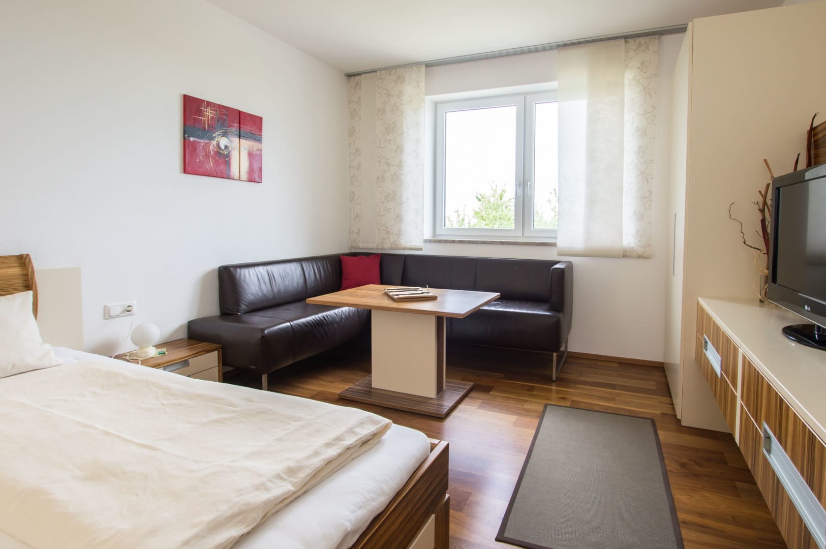 Familienzimmer mit extra Kinderzimmer und Küche mit Terrasse nebenan. Ist mit Fußbodenheizung und Fliegengitter ausgestattet.