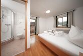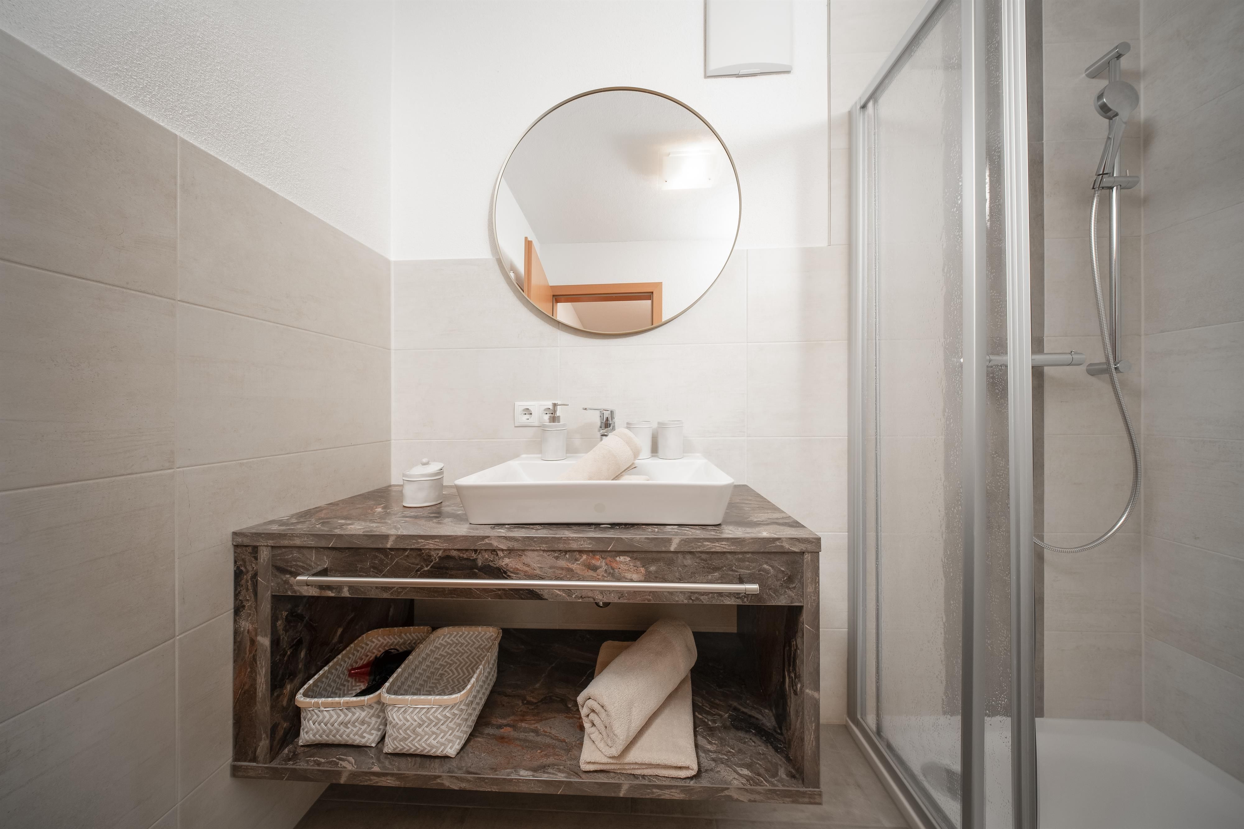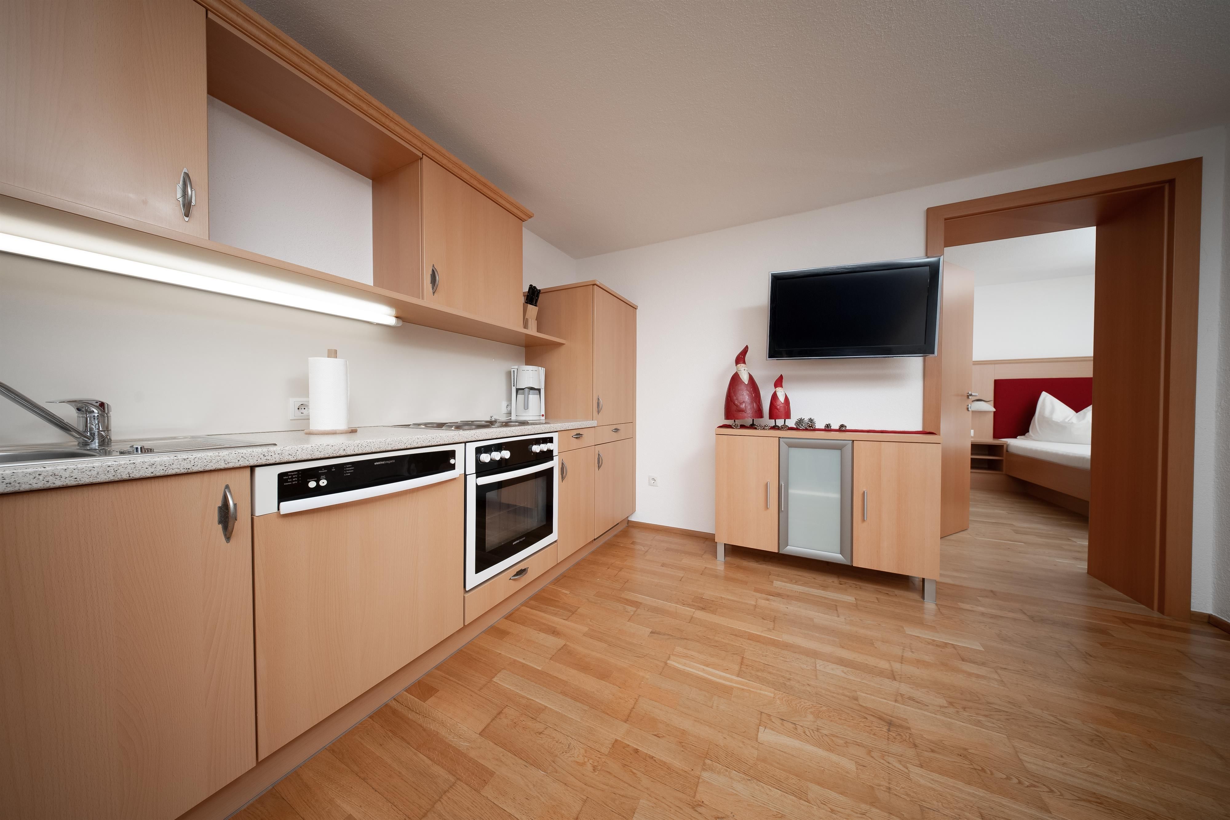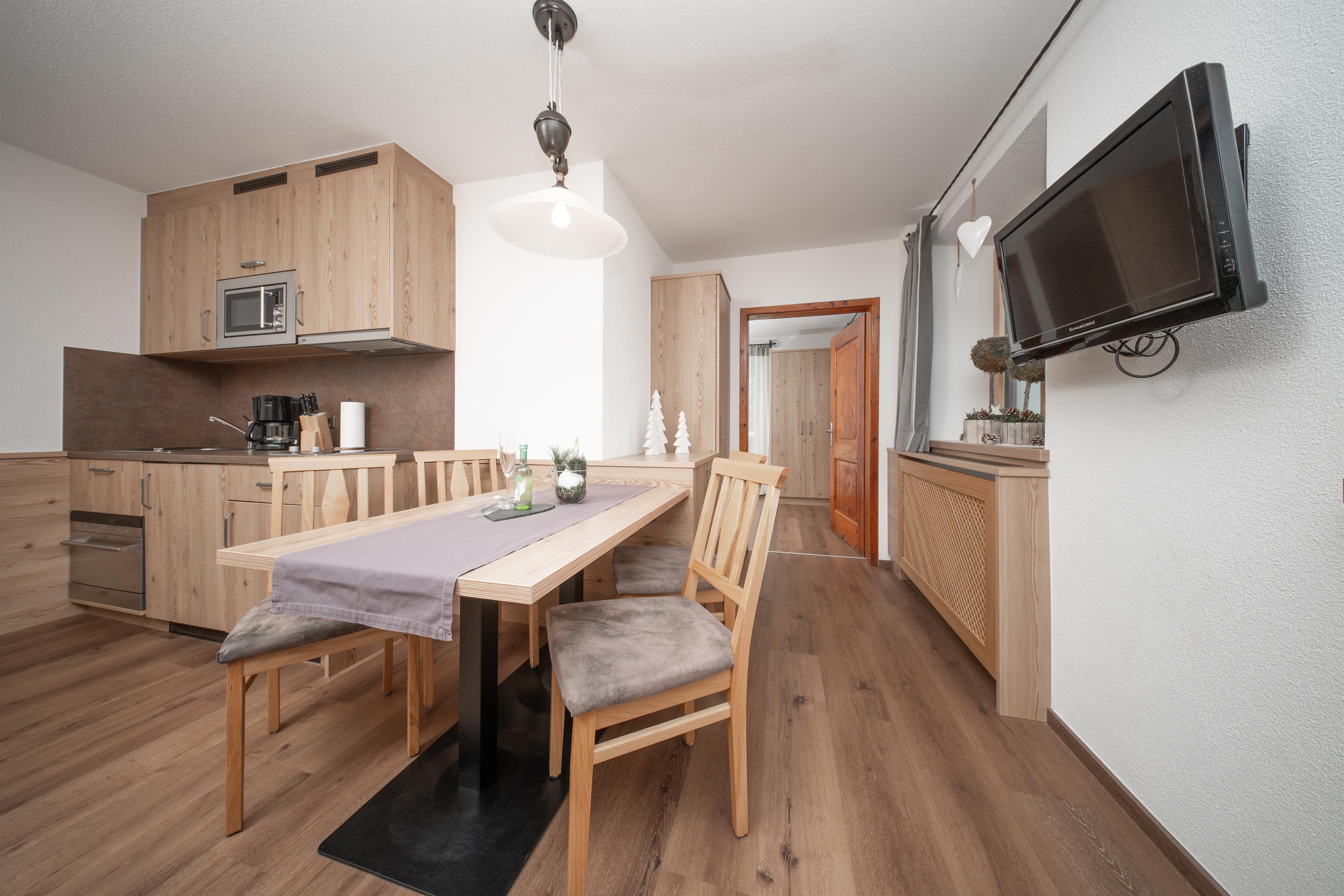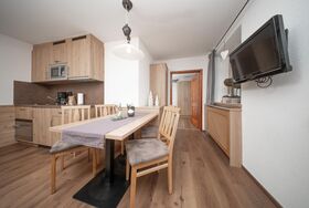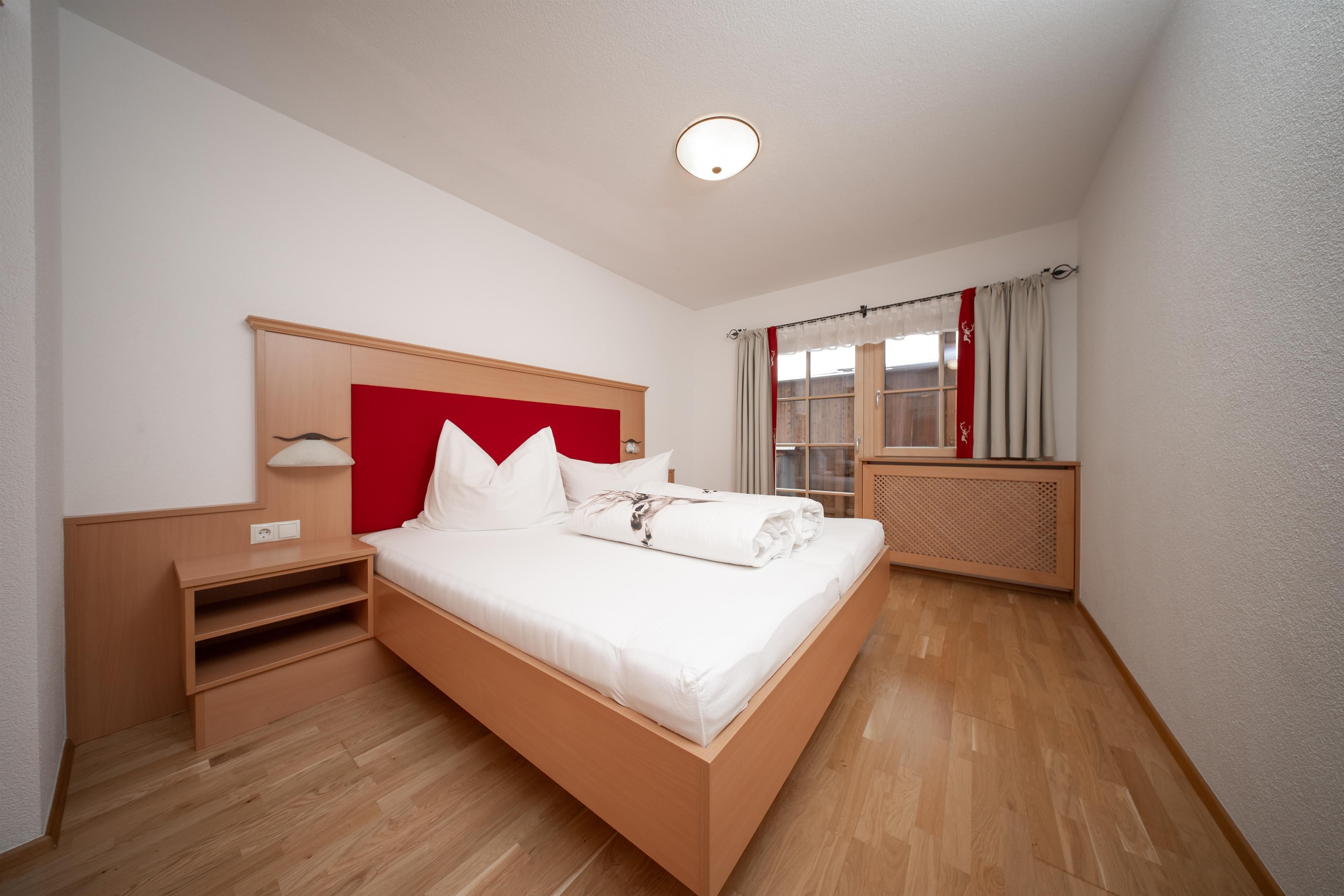 Unser Appartement Alpenflair mit 80 m² besteht aus: 2 mit wunderschönen aufwendigen Tiroler Holzarbeiten eingebaute Doppelzimmer, jeweils mit Dusche/WC und Fußbodenheizung. Küche mit Essbereich, Geschirrspüler, Flat-TV und Balkon. Das Appartement kann um ein gegenüberliegendes Doppelzimmer mit Dusche/WC, Flat-TV und gemütlicher Sitzgelegenheit erweitert werden (5. und 6. Person).