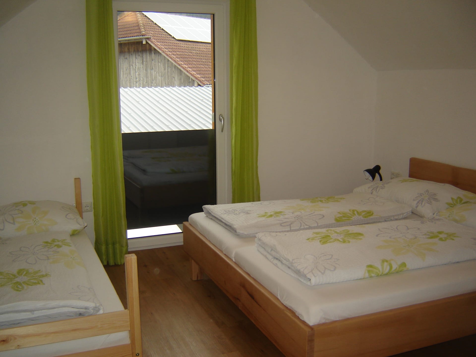 Diese Ferienwohnung liegt im ersten Obergeschoß in unserem neu errichteten Ferienhaus. Die Wohnung besteht aus Wohnküche, 2 Schlafzimmern mit Doppelbett bzw. Doppelbett und Stockbett, Bad, WC und Vorraum.