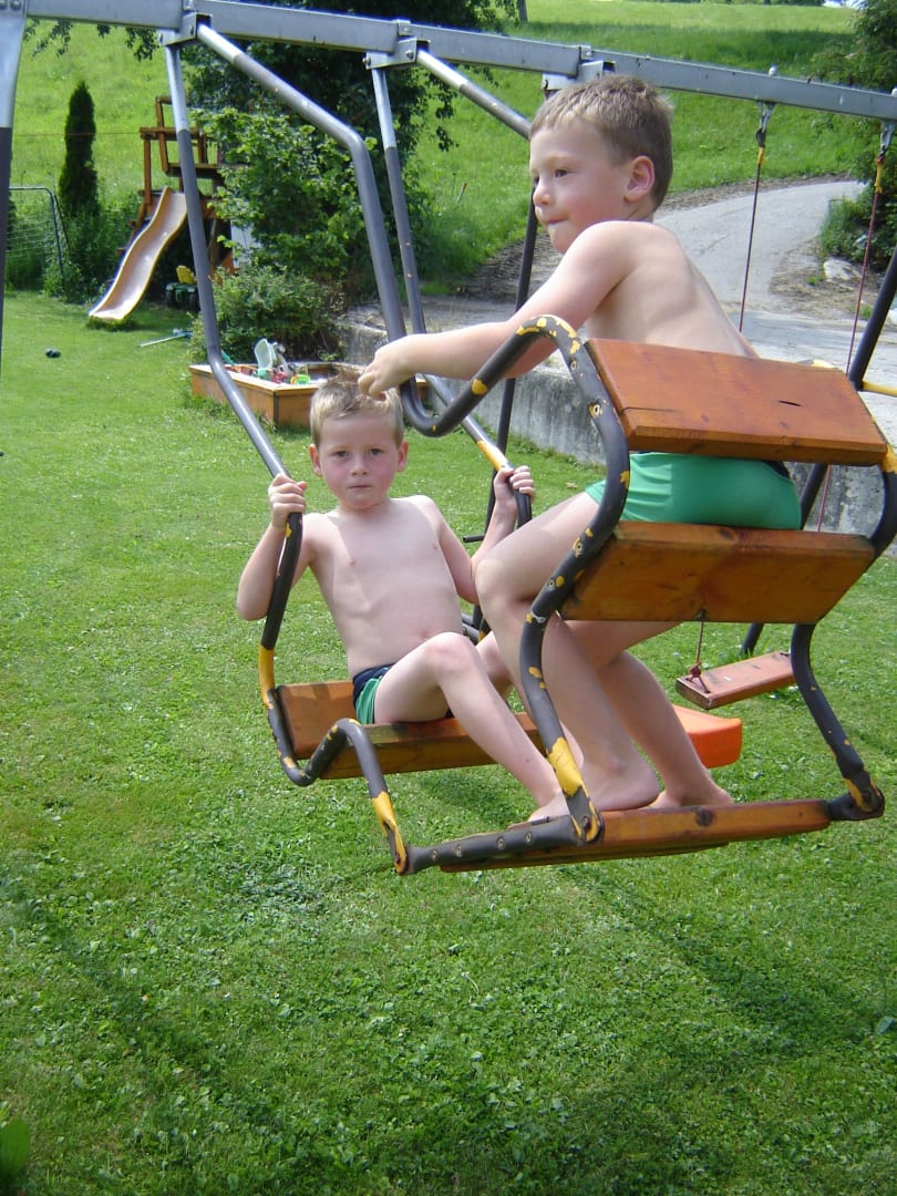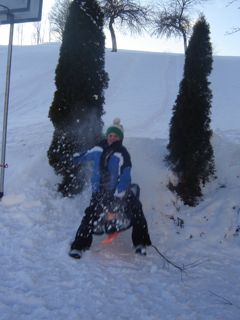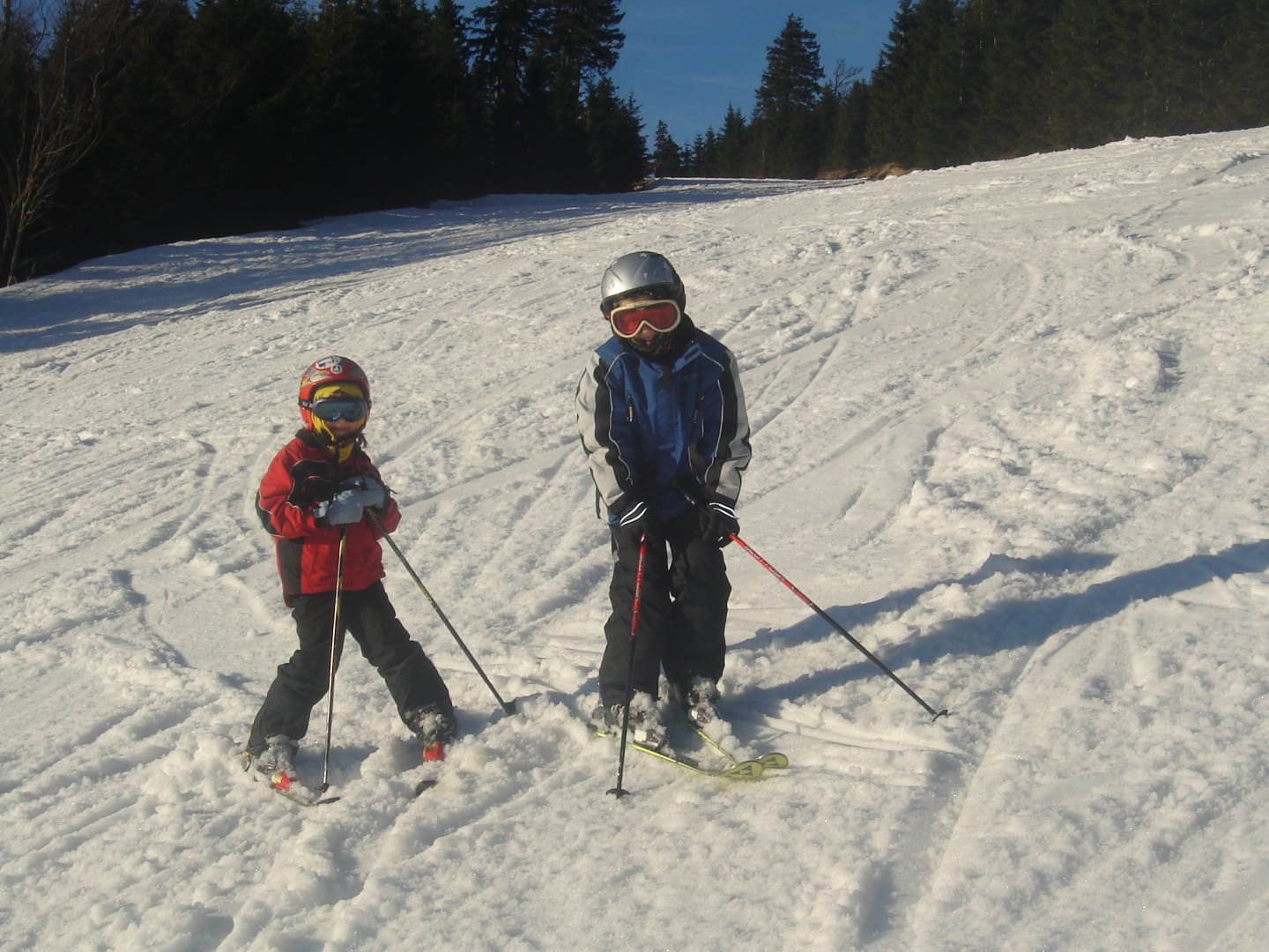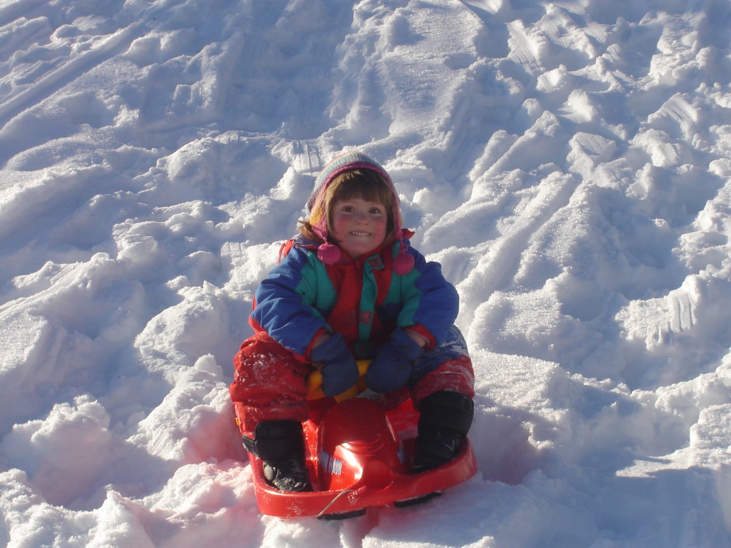 Die Kinder können direkt hinter dem Haus rodeln, Sack rutschen oder einen Schneemann bauen. Der Hang steht auch für die ersten Versuche auf Skiern bereit.