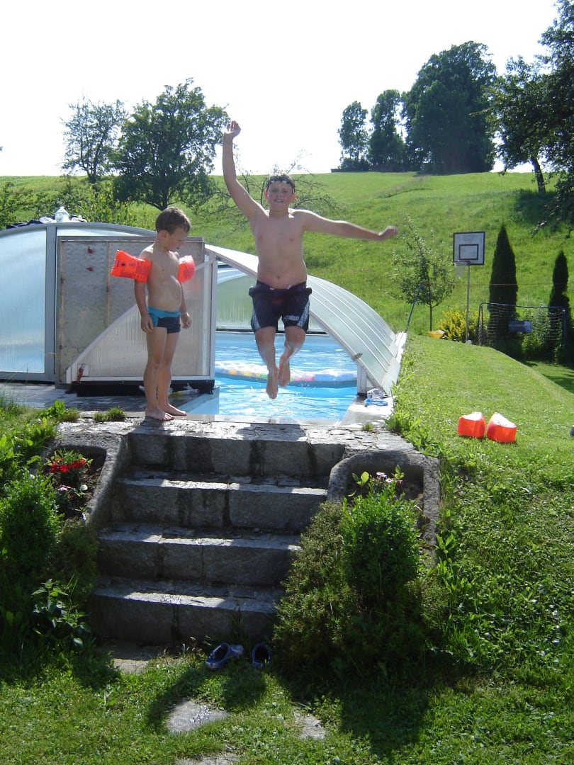 Auf unserem Biohof gibt es viele Tiere und Spielmöglichkeiten für Kinder (Kletterturm, Sandkiste, Rutsche, Schaukel, Trettraktor,....). Zum Entspannen können Sie unser Schwimmbad und den Garten mit Liegewiese und Hängematte benützen.