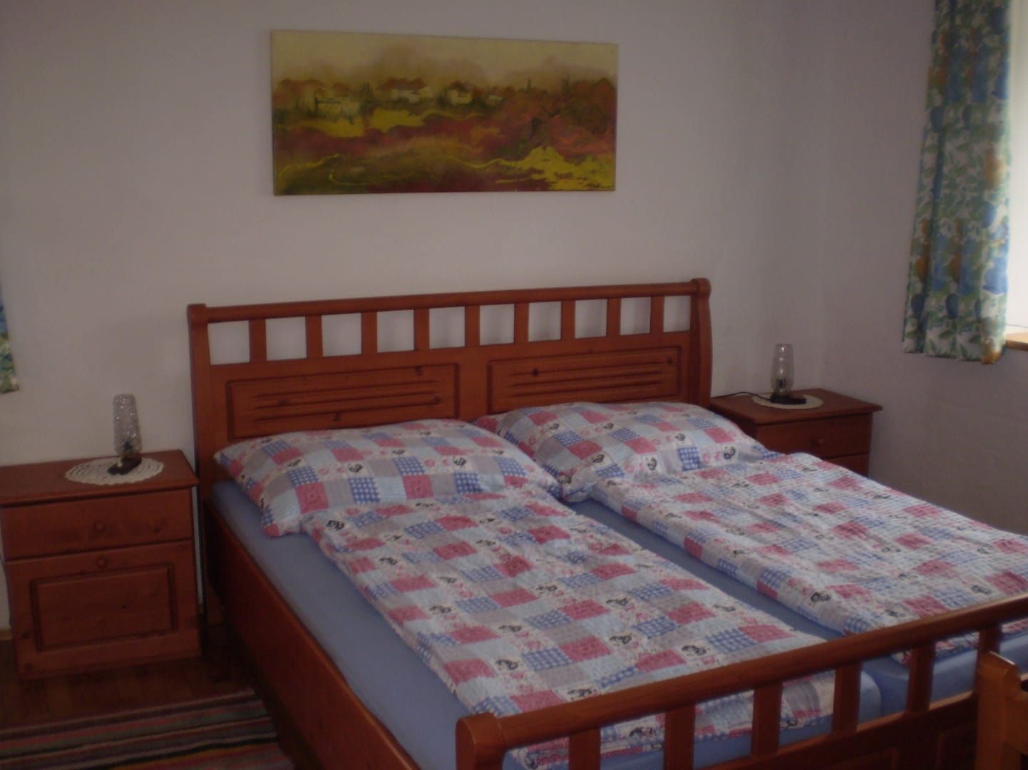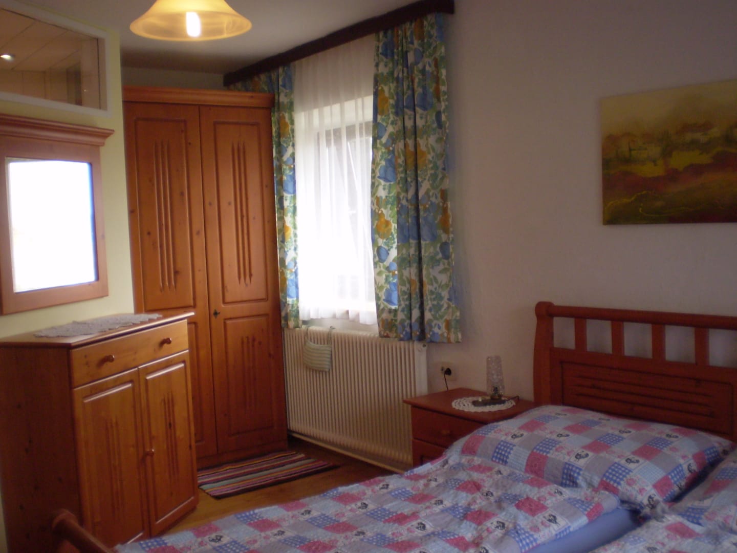 Geräumiges Familienzimmer mit 2 Schlafzimmern, Vorraum, Bad mit Dusche und WC. Kinderzimmer mit 2 Einzelbetten (90 cm x 200 cm), Kommode und Wandtisch, CD-Radio. Schlafzimmer mit Doppelbett, Leselampen, Kleiderschrank, Spiegelschrank, Kommode, Sat-TV, Tisch und Stühlen. Vorraum mit Wandgarderobe. Schöne, geräumige Dusche mit WC, gute Ablagemöglichkeiten, Handtücher nach Bedarf. Herrlicher Blick in den Obstgarten!