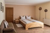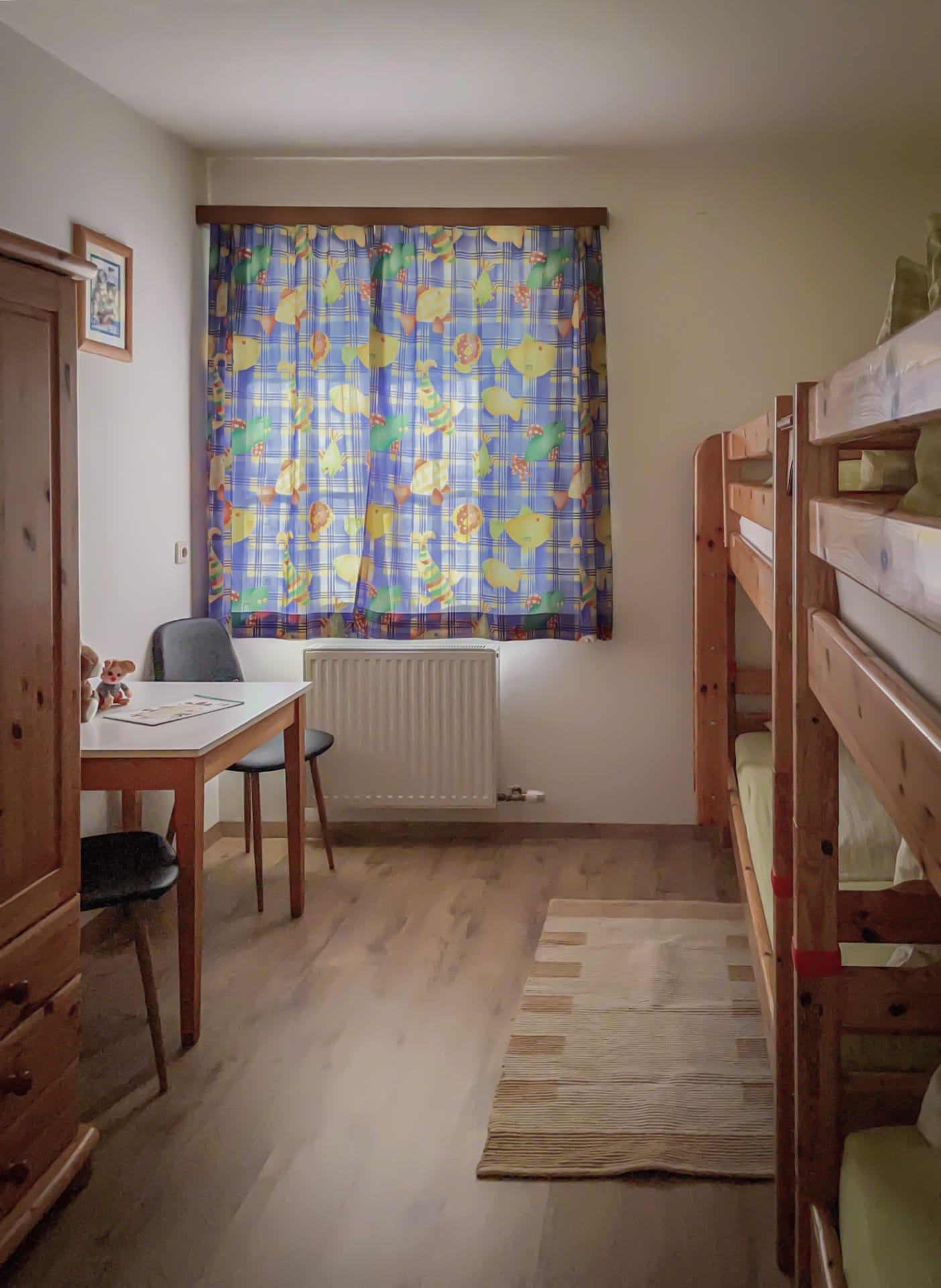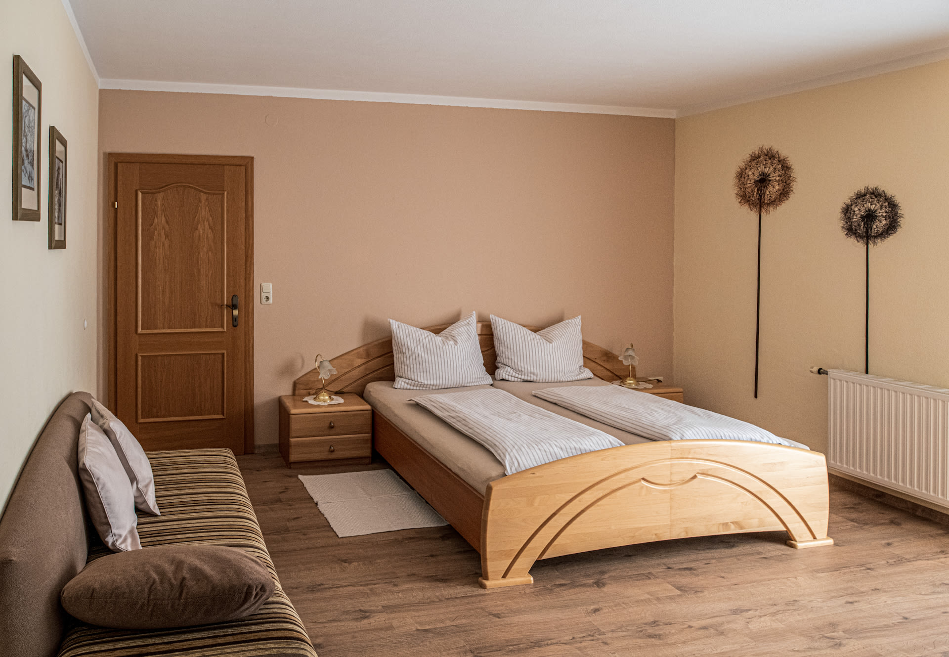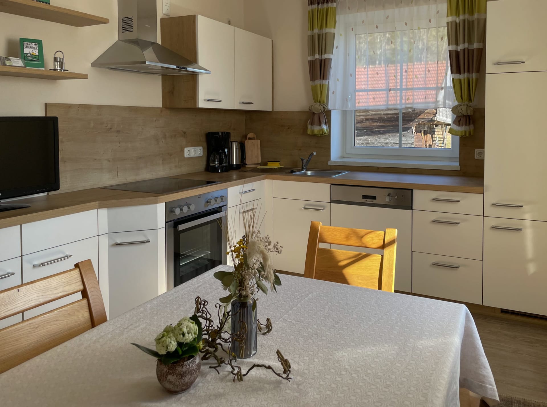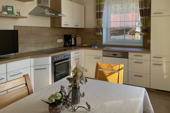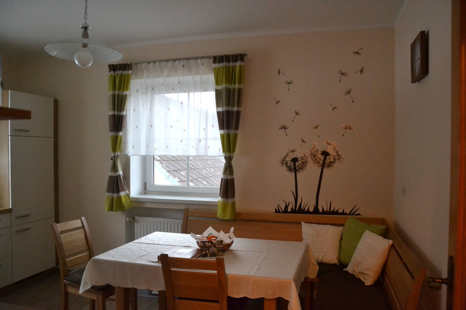Die Ferienwohnung ist 72 m² groß und im Haupthaus untergebracht. Durch die Aussicht in den Innehof und auf die am Waldrand gelegene Spielwiese können sich die Kinder nach Lust und Laune frei bewegen. Zum Frühstück bieten wir Ihnen gerne einen Brötchenservice an.