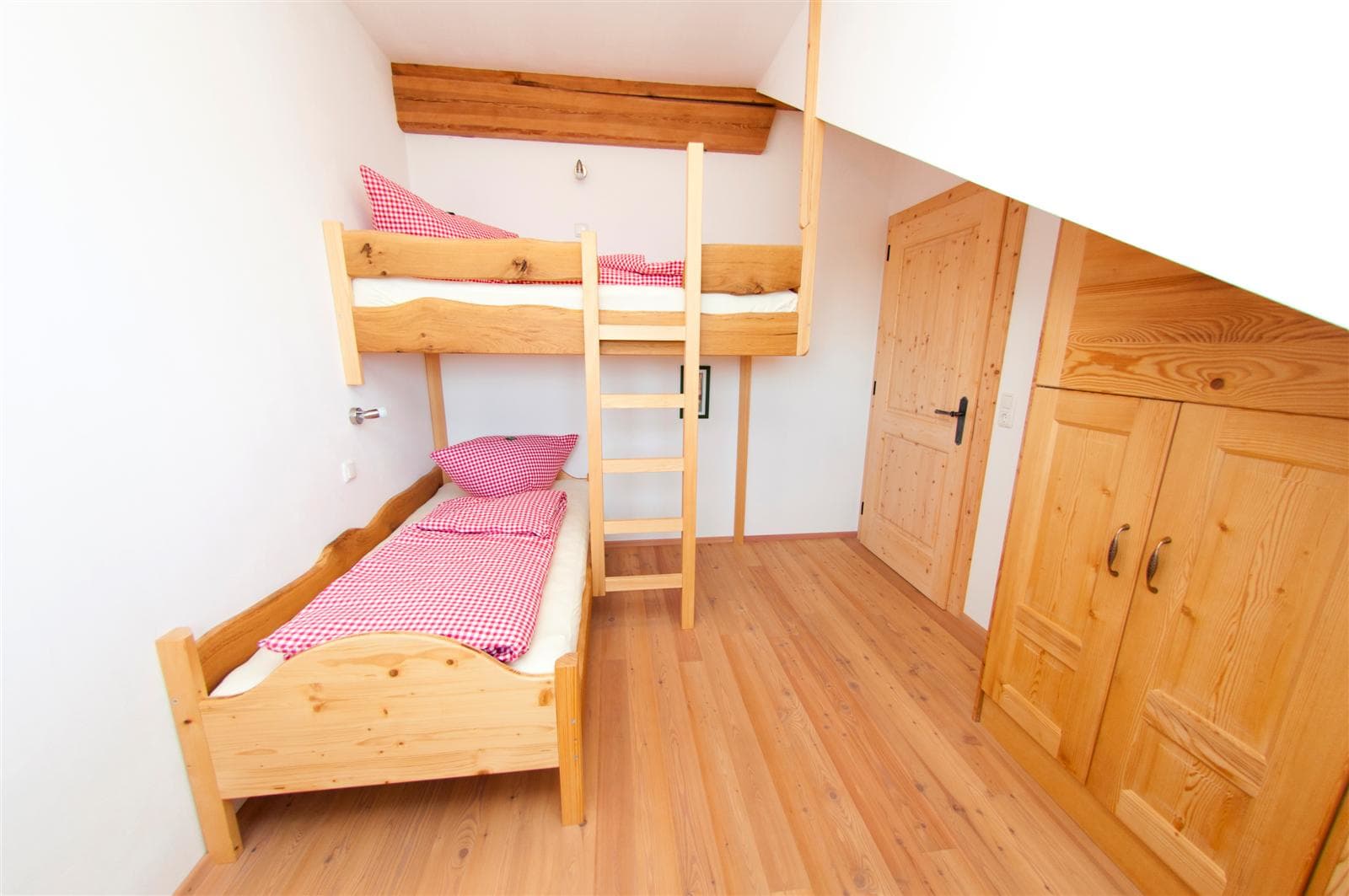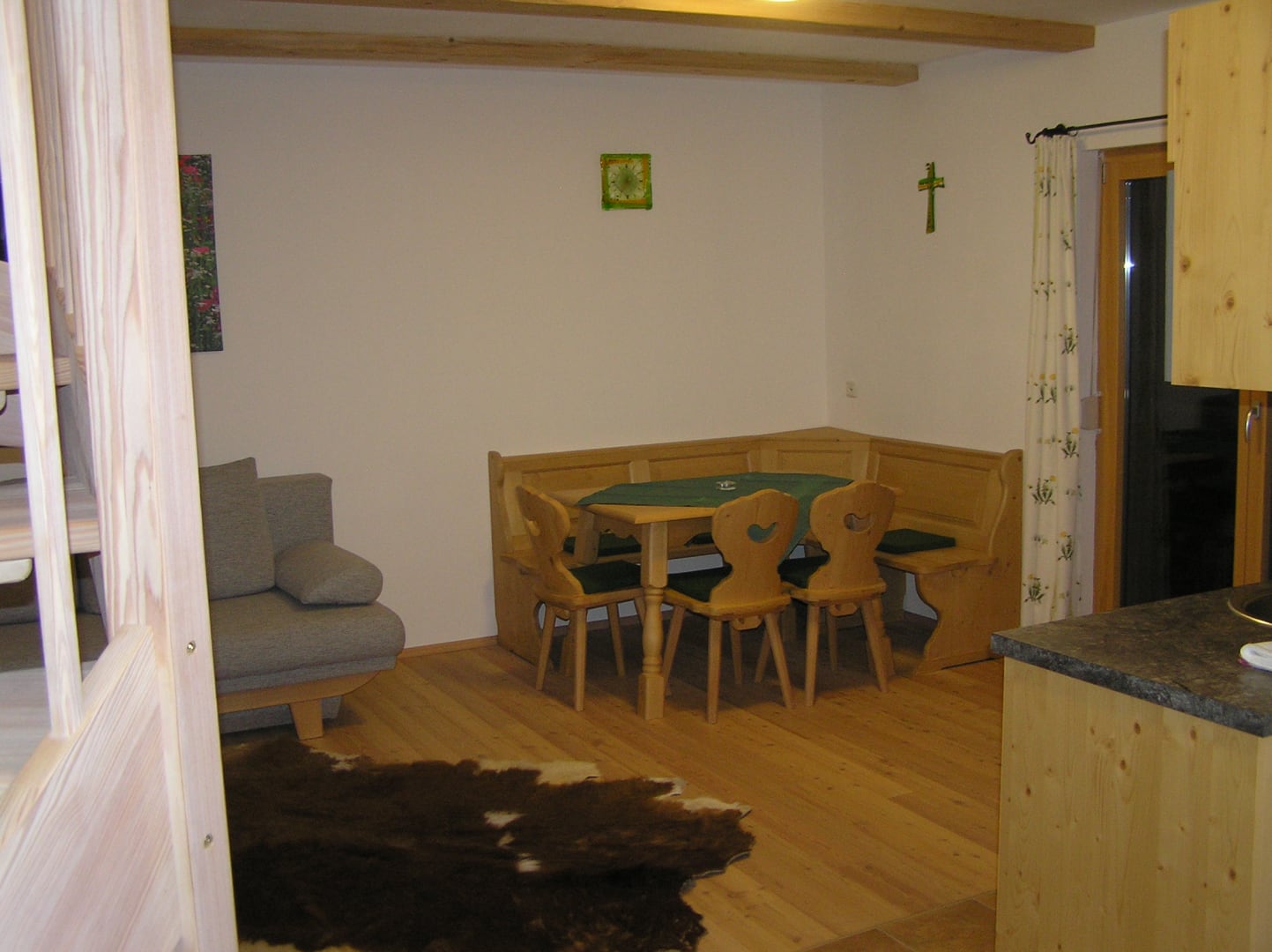 Langschläfer sind in dieser Wohnung wegen der Ausrichtung nach Süd-Westen bestens aufgehoben. Gut ausgeschlafen ist der Sonnenuntergang mit traumhaftem Abendrot und dem Traunstein als Kulisse bestens zu beobachten. Die ausgeklügelte räumliche Aufteilung erlaubt auch Familien mit mehreren Kindern, den Urlaub in vollen Zügen zu inhalieren. Eltern genießen auf dem Balkon gerne ein Stamperl des hauseigenen Zwetschkenbrandes oder ein Glas Apfelmost.