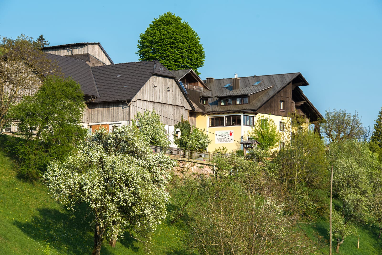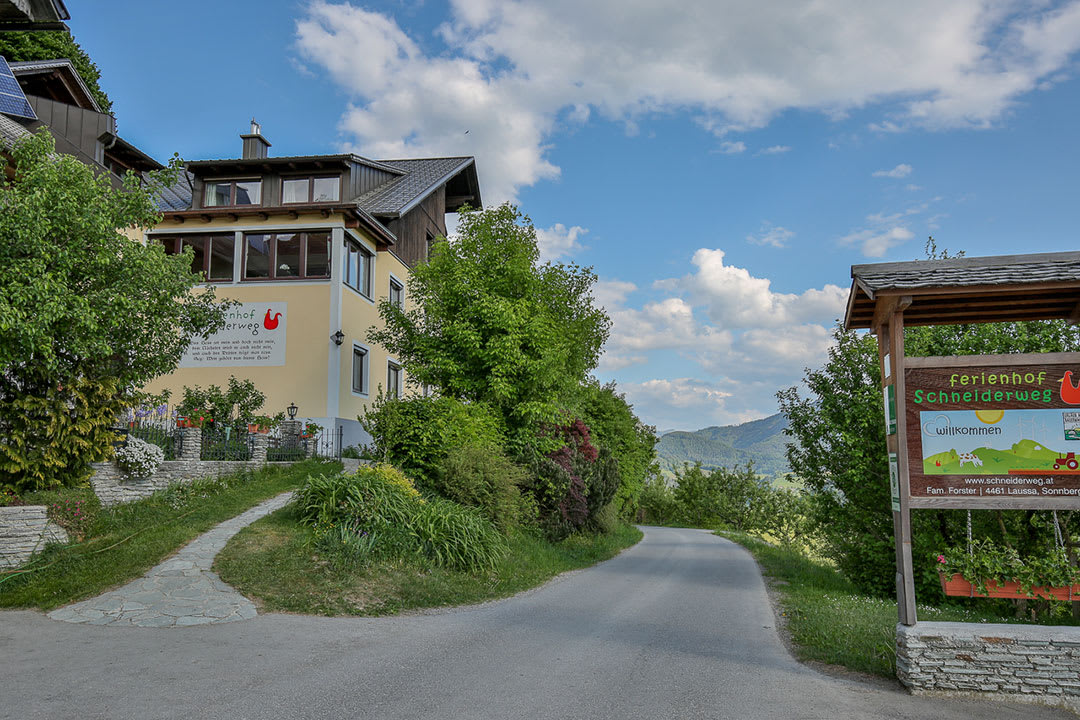 Der Ferienhof Schneiderweg liegt auf einem sonnigen Südhang im Gemeindegebiet von Laussa, südöstlich von Steyr. Eingebettet in eine malerische Wiesen- und Hügellandschaft genießt man vom Hof aus einen herrlichen Ausblick.