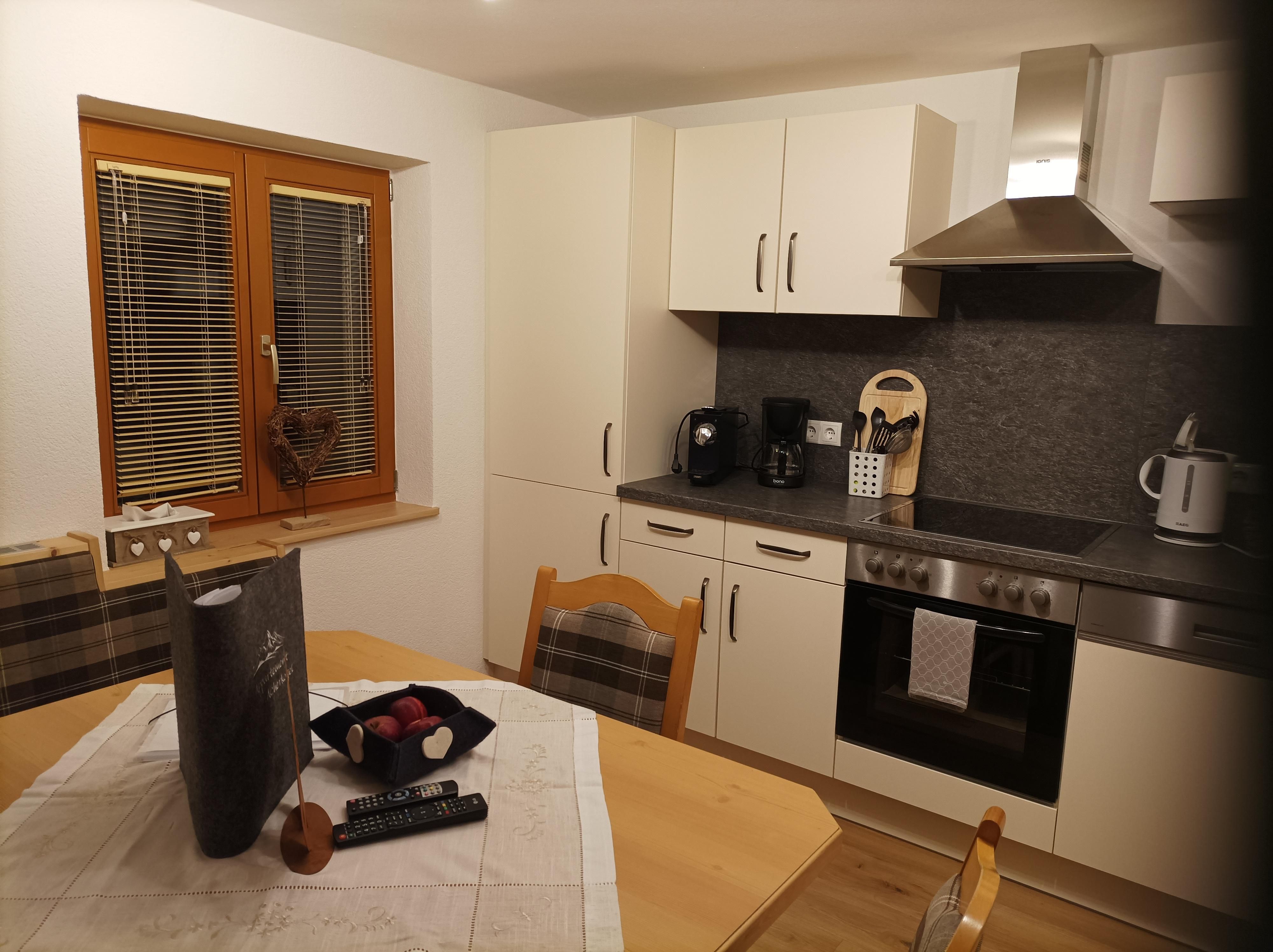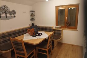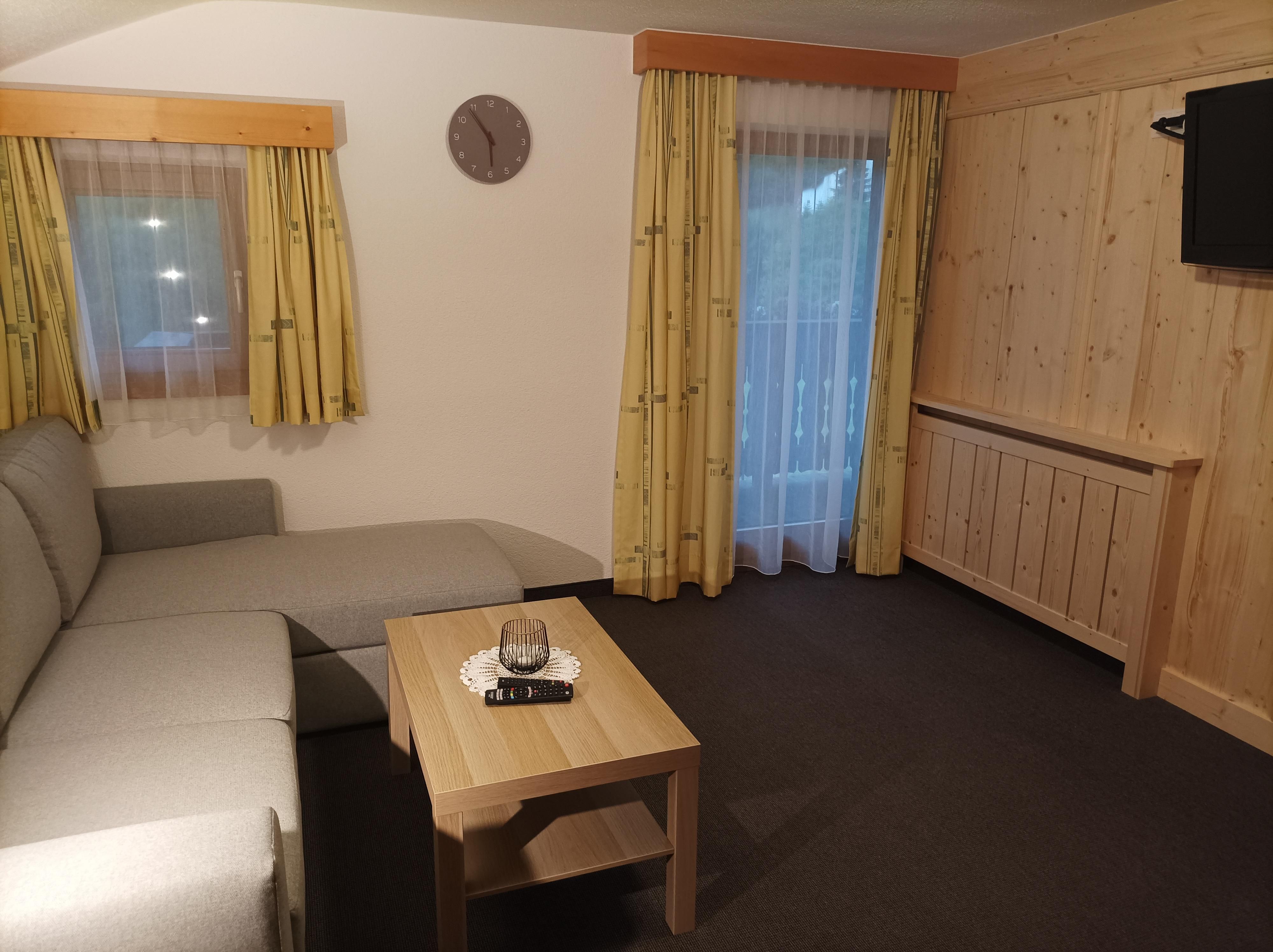 Ferienwohnung für 2 bis 4 Personen im 2. Stock bestehend aus: 2 Doppelzimmer mit jeweils Dusche/WC und Sat-TV und teilweise Balkon; 1 gemütliche Wohnküche komplett ausgestattet mit Spülmaschine, Backrohr, Cerankochfeld, Kühlschrank mit Gefrierfach, Kaffeemaschine, Sat-TV uvm. und einem Wohnzimmer