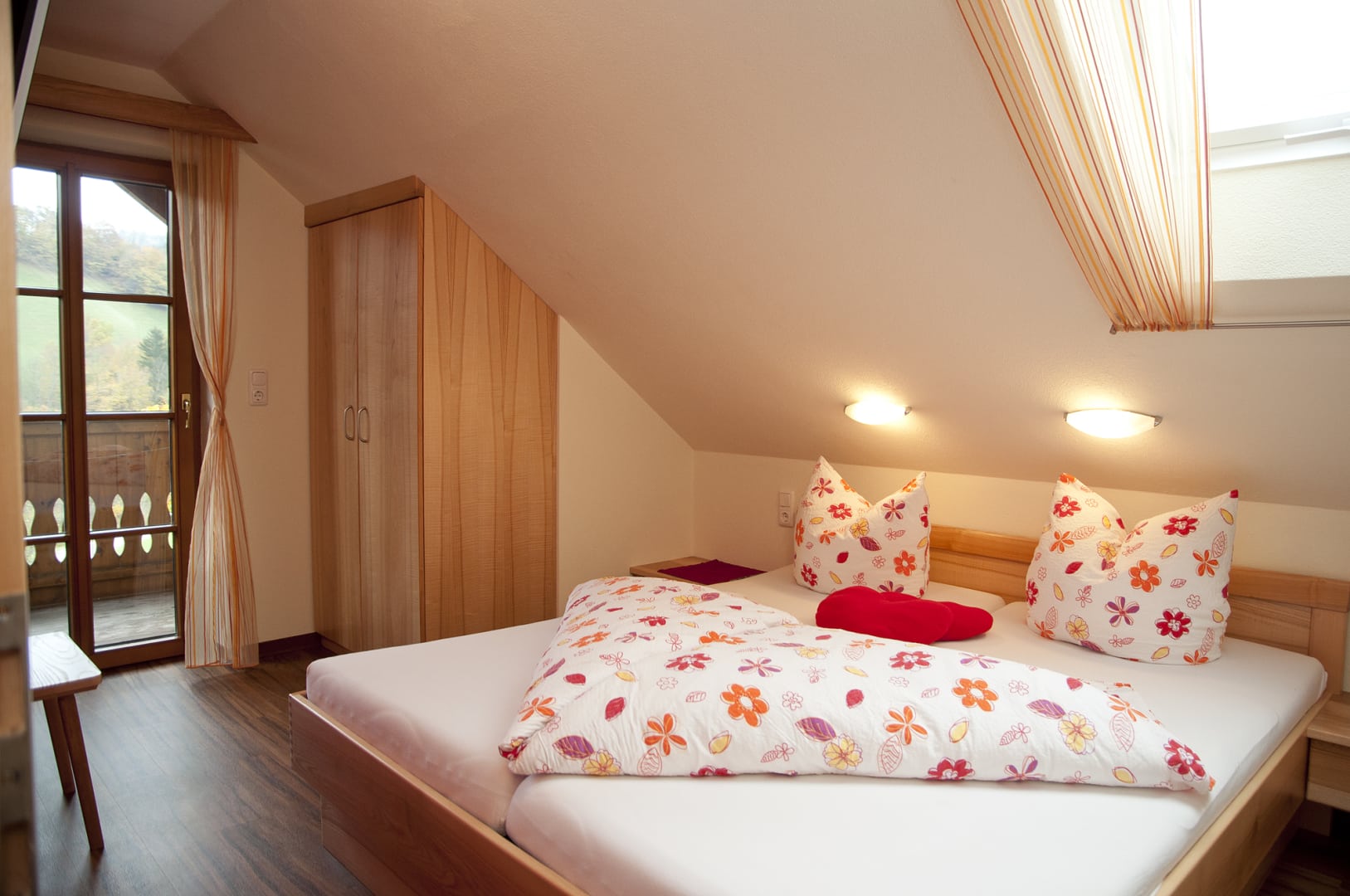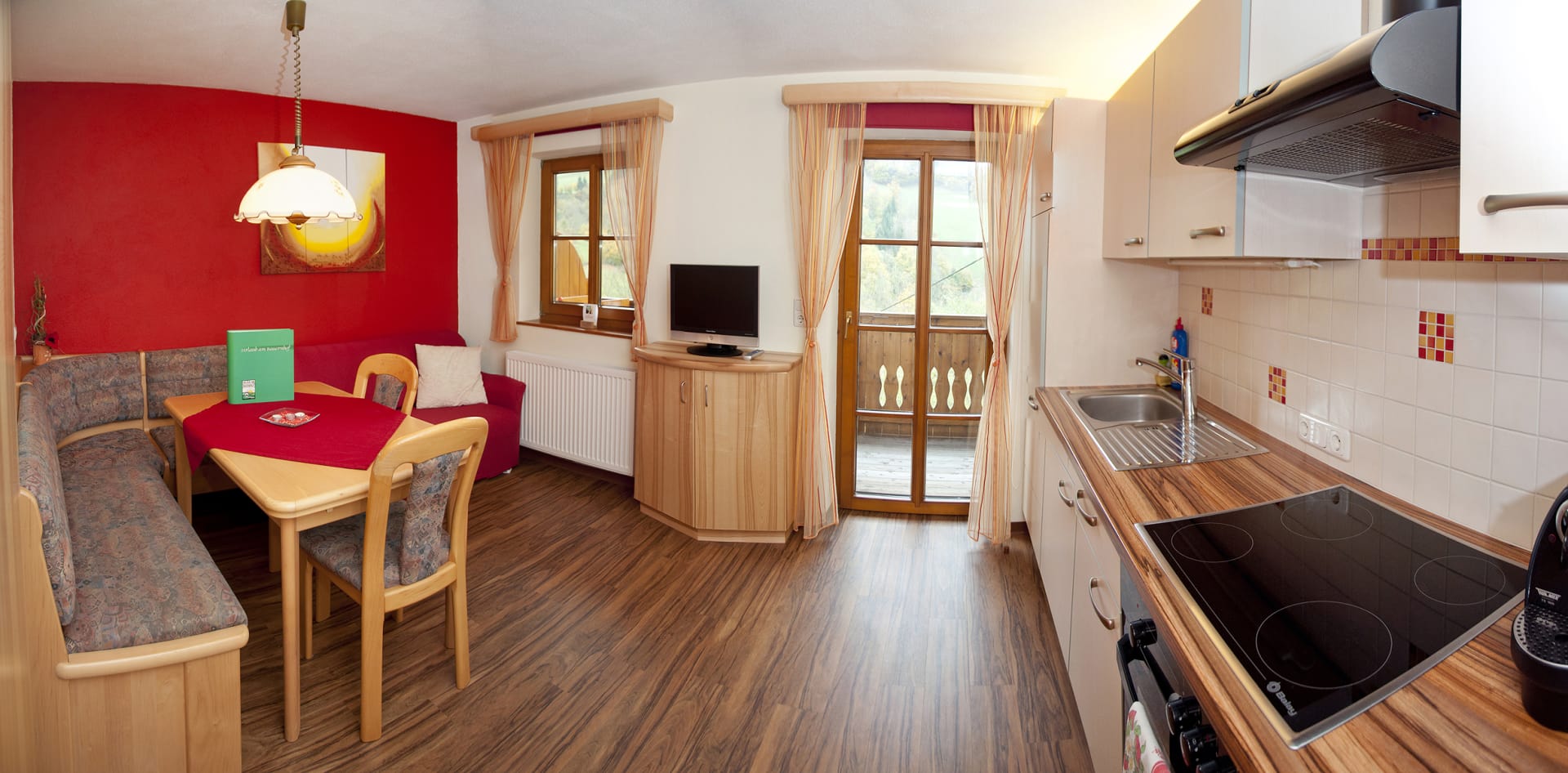 Energie für das Leben in der Natur. Energiespender. Unsere Ferienwohnung „SOMMER“. Die leuchtende Farbe rot lässt die ganze Wohnung erstrahlen. Geweckt vom Vogelgezwitscher und den ersten Sonnenstrahlen kann der neue Urlaubstag beginnen. Bei leckerem Frühstück in unserer Bauernstube, gmiatlich im Pyjama auf Ihrem Balkon oder in Ihrer Wohnküche. Frisch gestärkt hinaus in die Sonne. Erlebe die Natur am Ferienhof Pfaffenlehen!