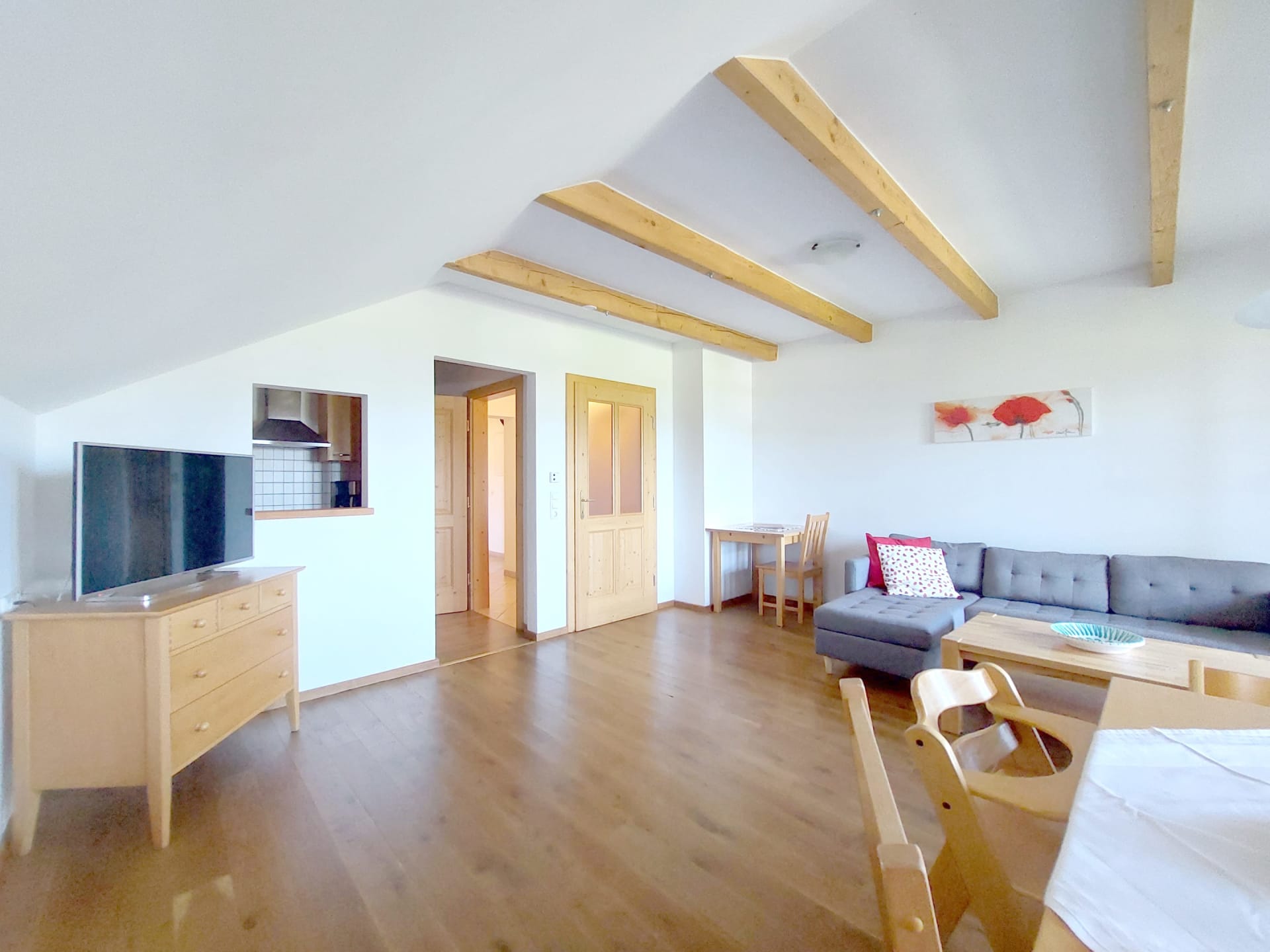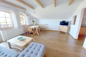 Gemütlich eingerichtete Ferienwohnung (79 m²) mit 2 Schlafzimmern, 13 m² großer Veranda und herrlichem Blick auf den Attersee.