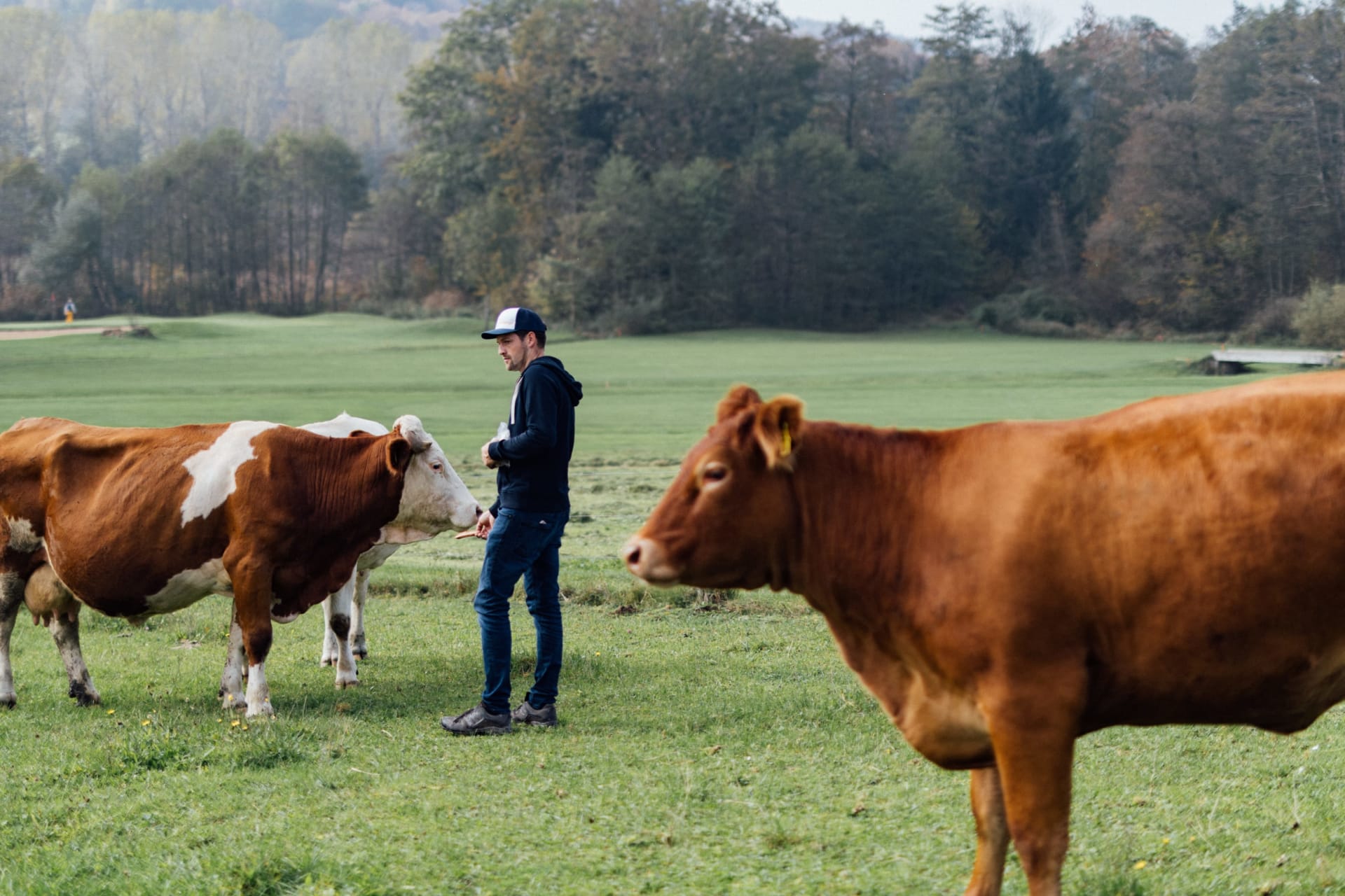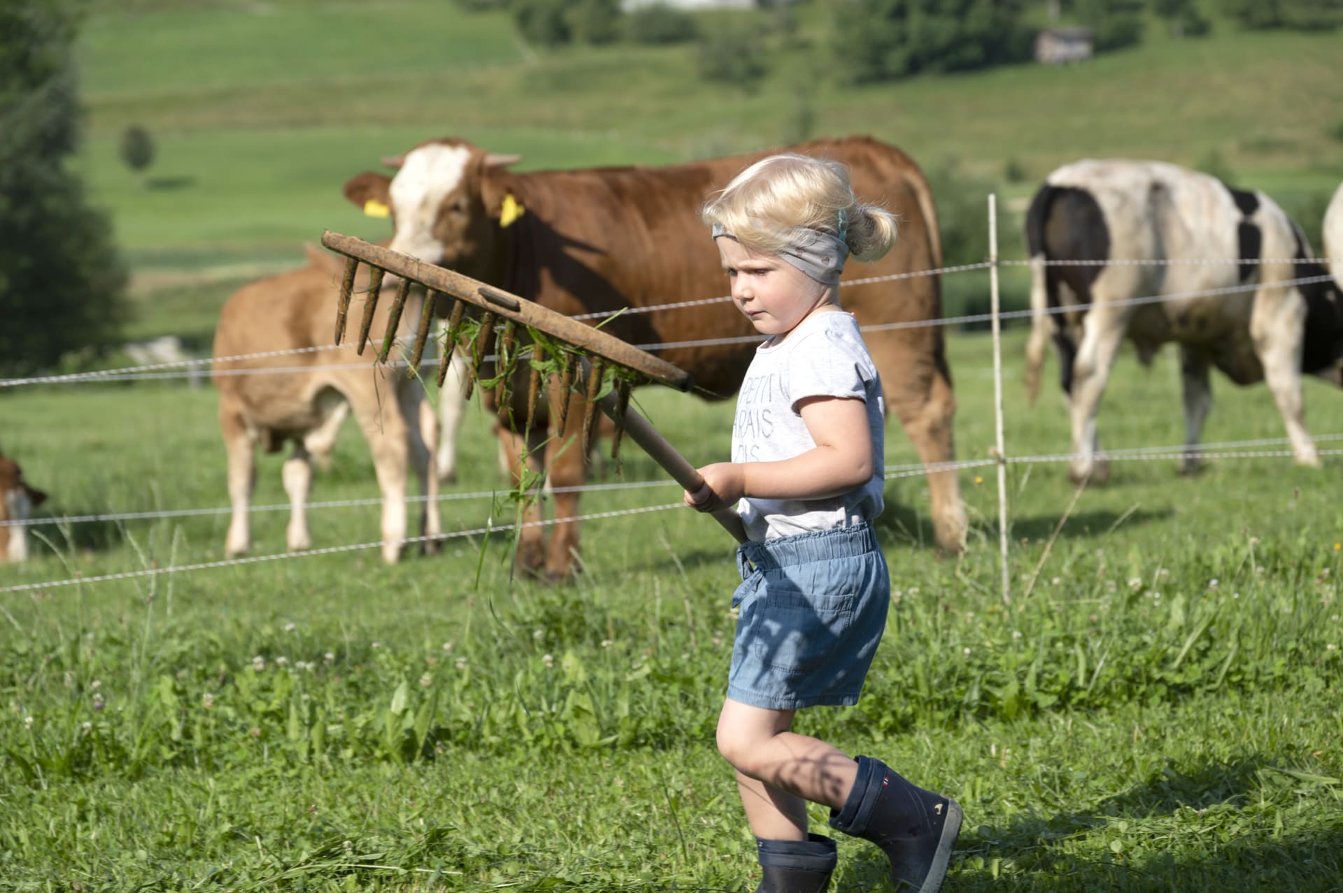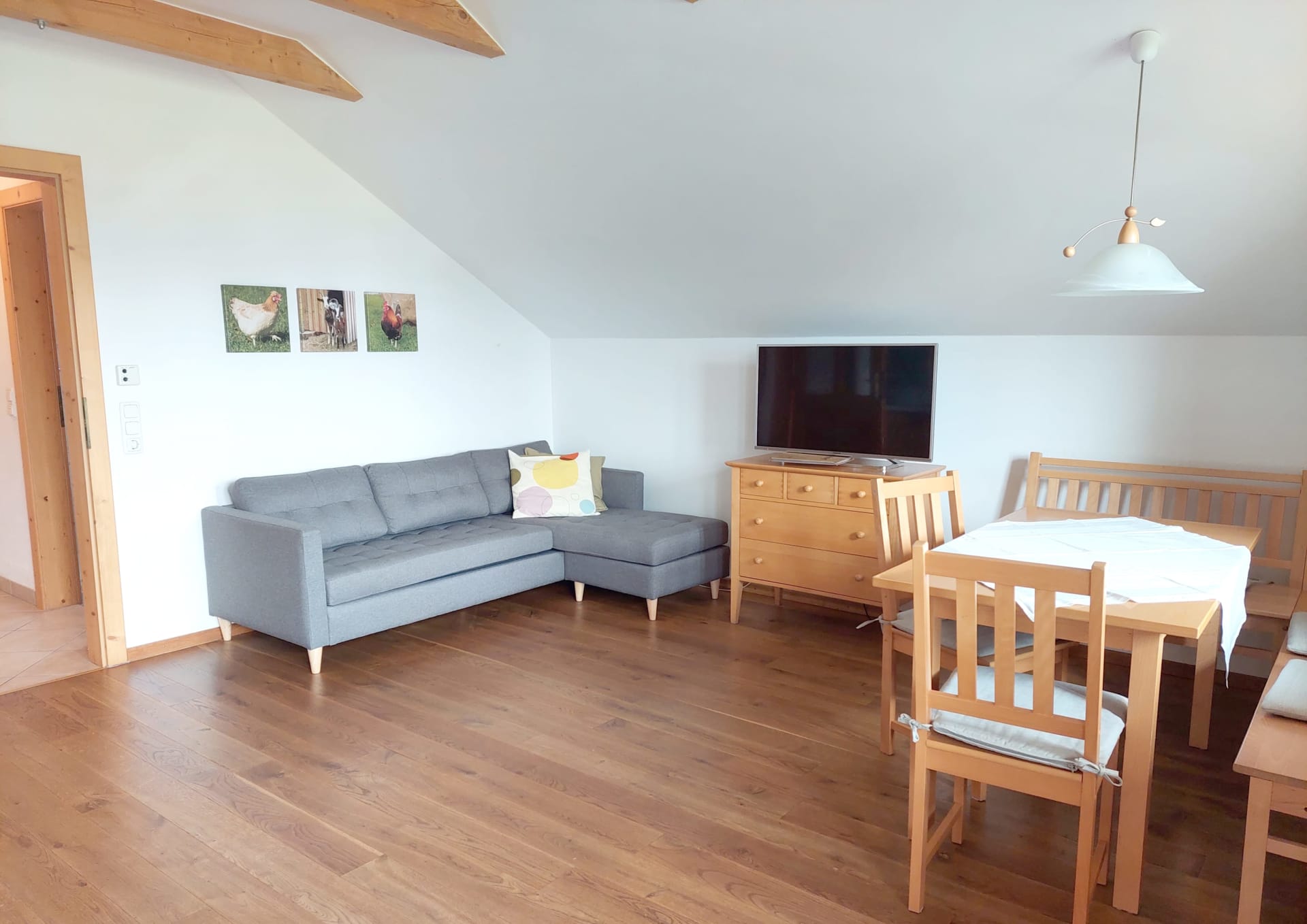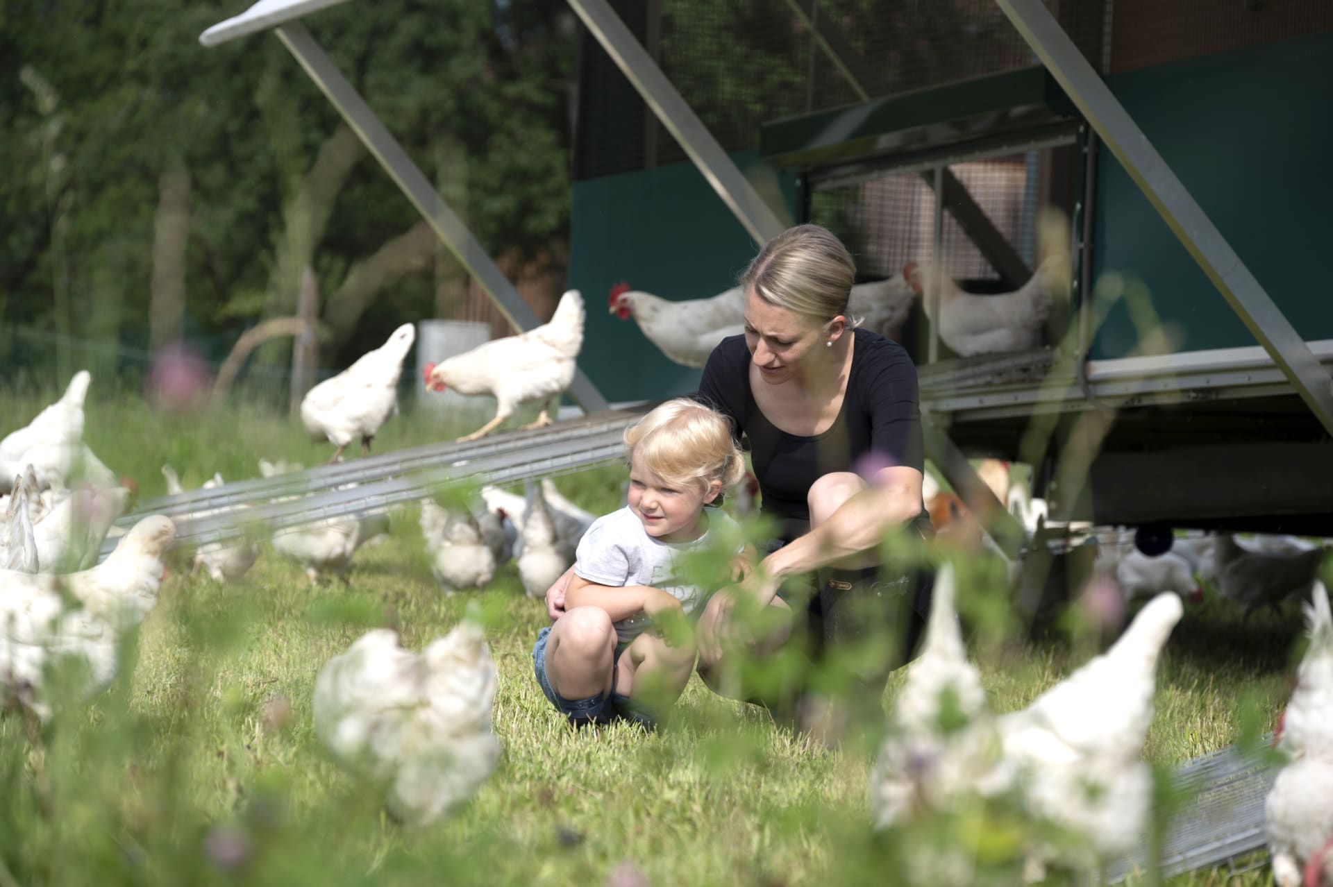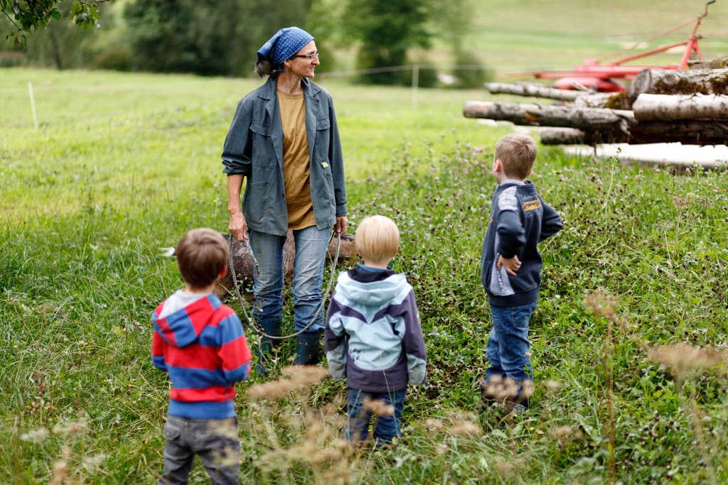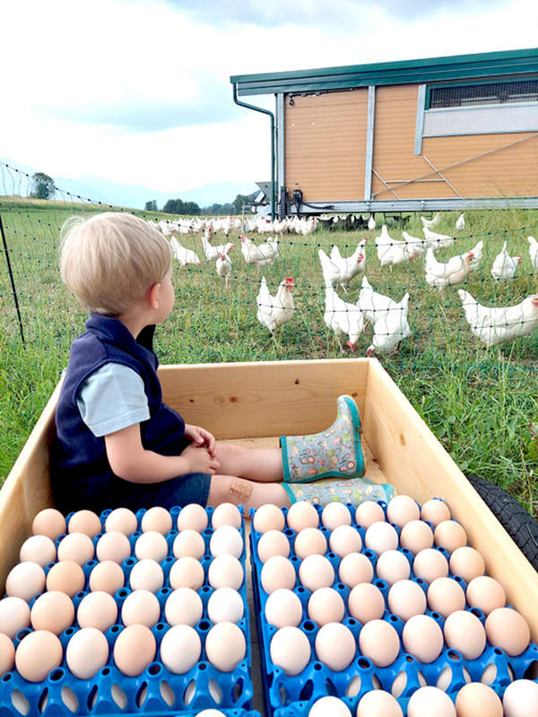 BIO-Bauernhof: Wir bewirtschaften unseren Hof mit Wiesen, Acker und Wald biologisch mit Schwerpunkt auf Mutterkuhhaltung. Kälber, Hühner, Hasen, Enten, die Ziege Gretl und unsere Katzen Hanni und Nanni vervielfältigen das Tiererlebnis.