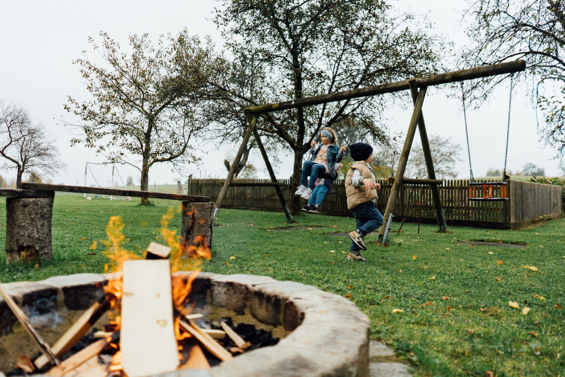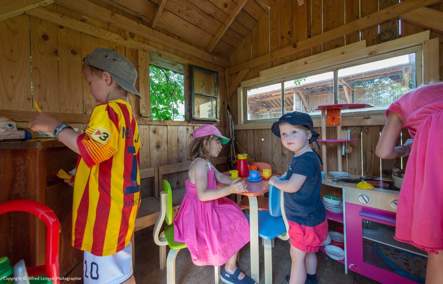 Besonderheiten auf unserem Hof: baby- und kinderfreundliche Ausstattung, Spielplätze im Freien (Spielhaus, große Sandkiste, Tischtennis, 4 m ebenerdiges Trampolin, Fußballtor, Schaukel).