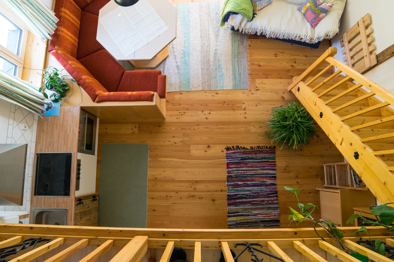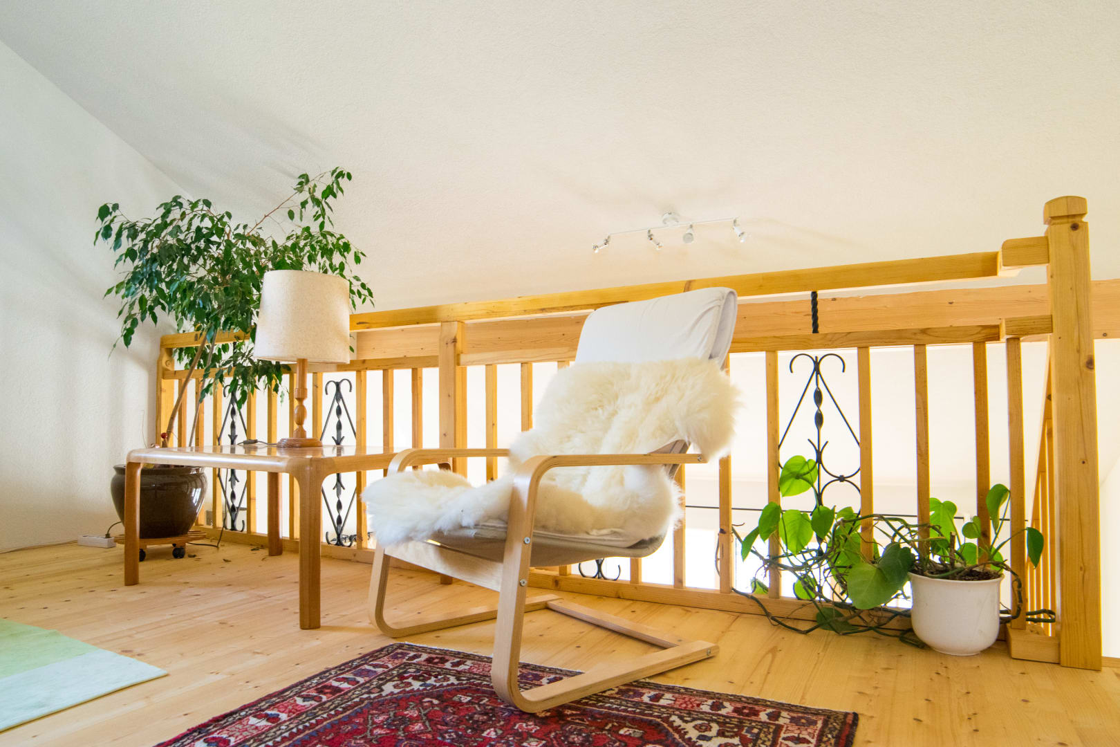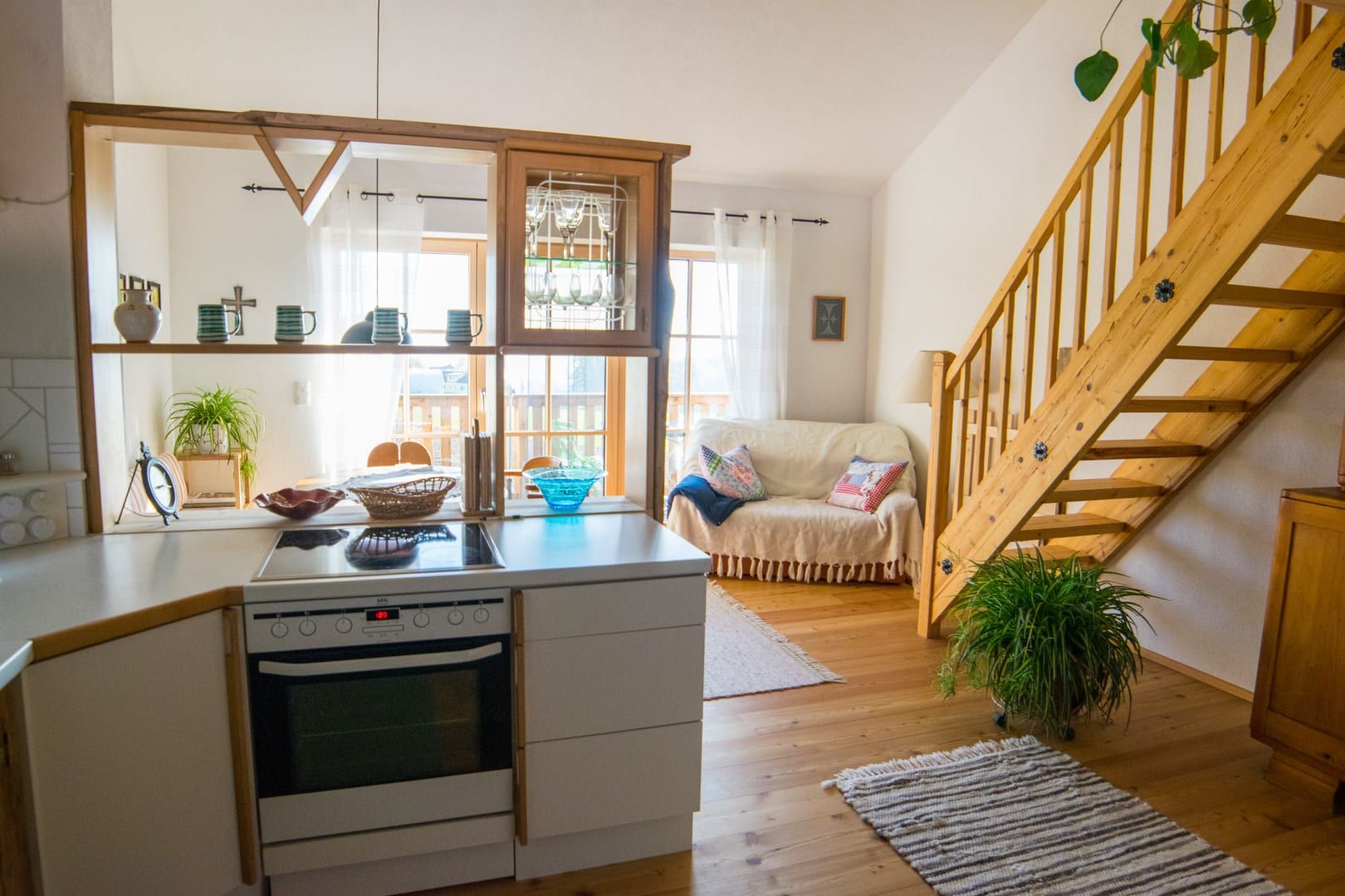 Unsere 70 m² große Wohnung liegt südseitig mit Blick auf das Höllengebirge, bei gutem Wetter sieht man bis zum Dachstein und im Westen bis in die bayrischen Berge. Die Wohnung Morgensonne ist großzügig ausgestattet. Das Schlafzimmer liegt ostseitig und durch Altholz wird der besondere Charakter des Zimmers hervorgehoben. Das zweite Schlafzimmer befindet sich in der Galerie, welche über eine Treppe vom Wohnraum aus erreichbar ist.
