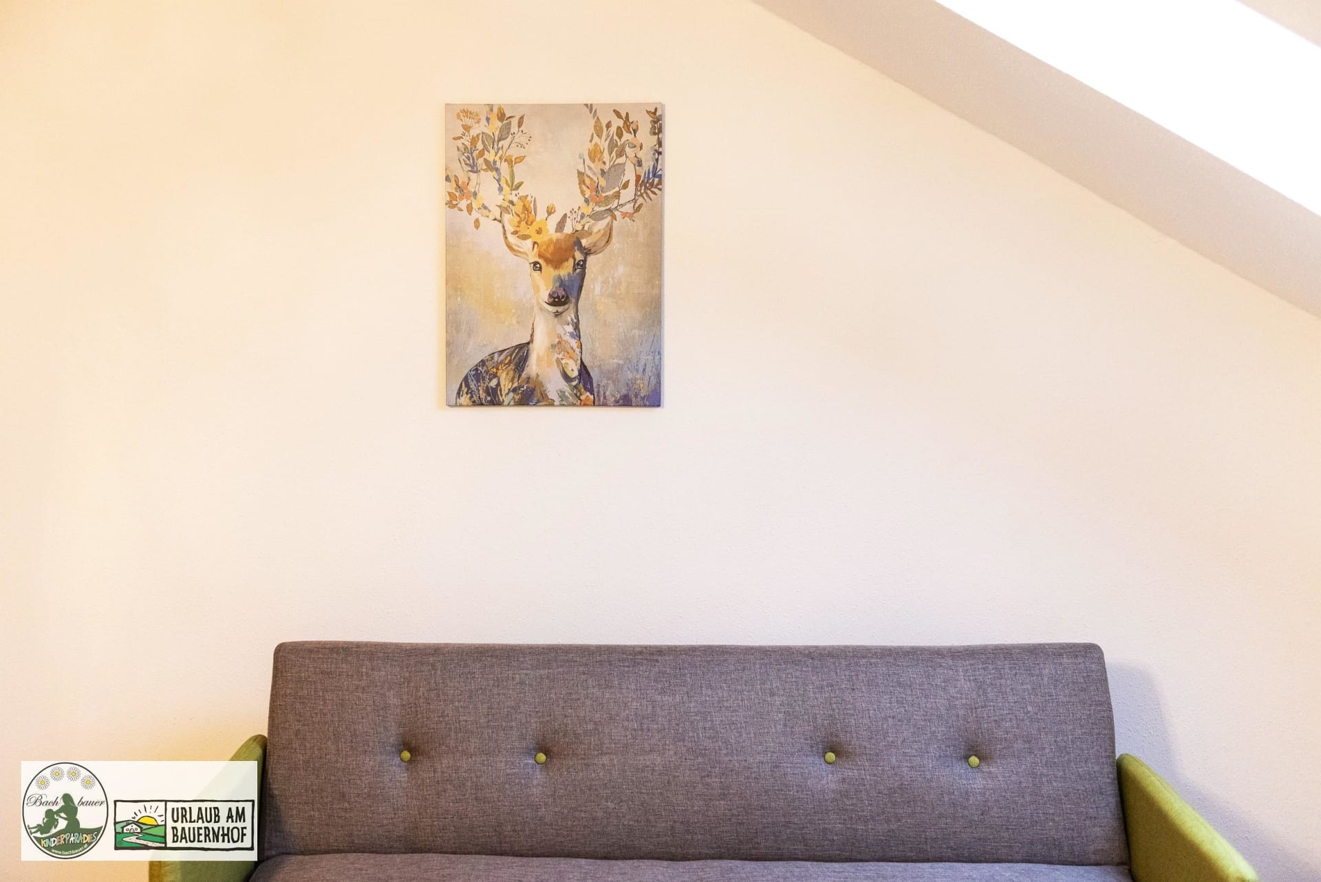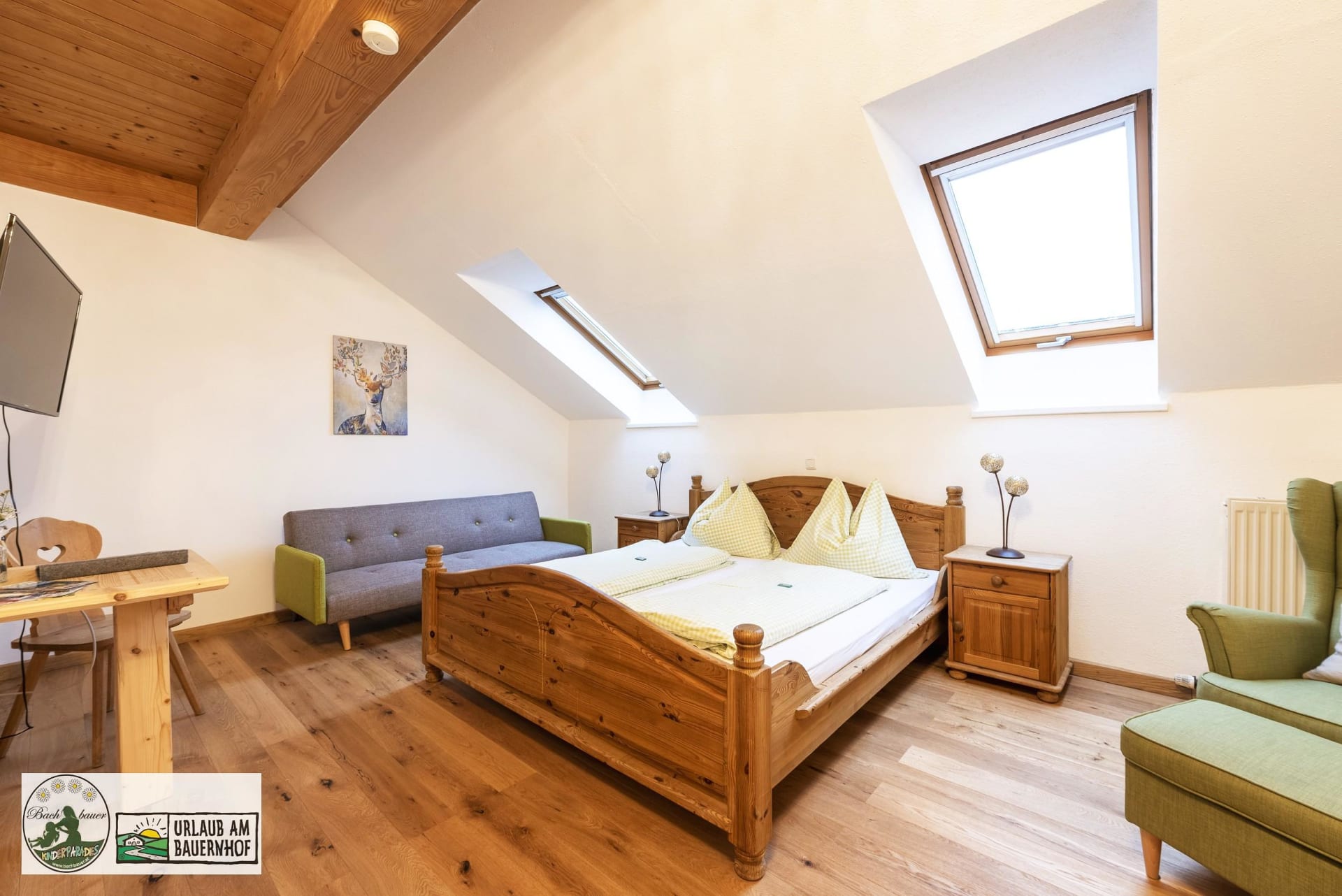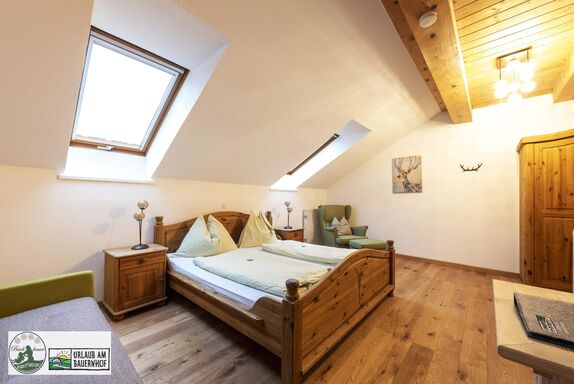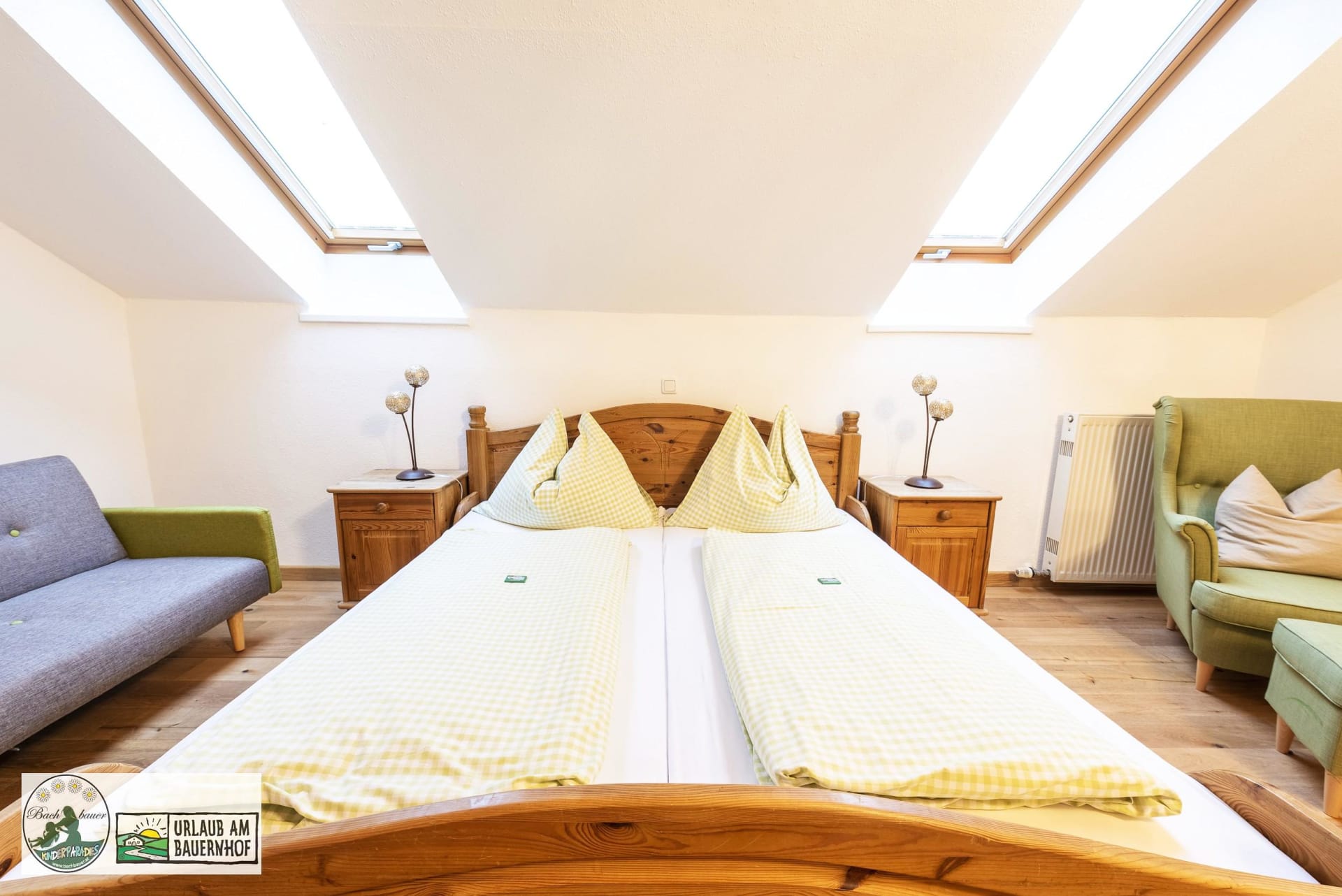 Gemütliches Doppelzimmer (ca. 30m²) Couch, Bad, Sat-TV und Stereoanlage.