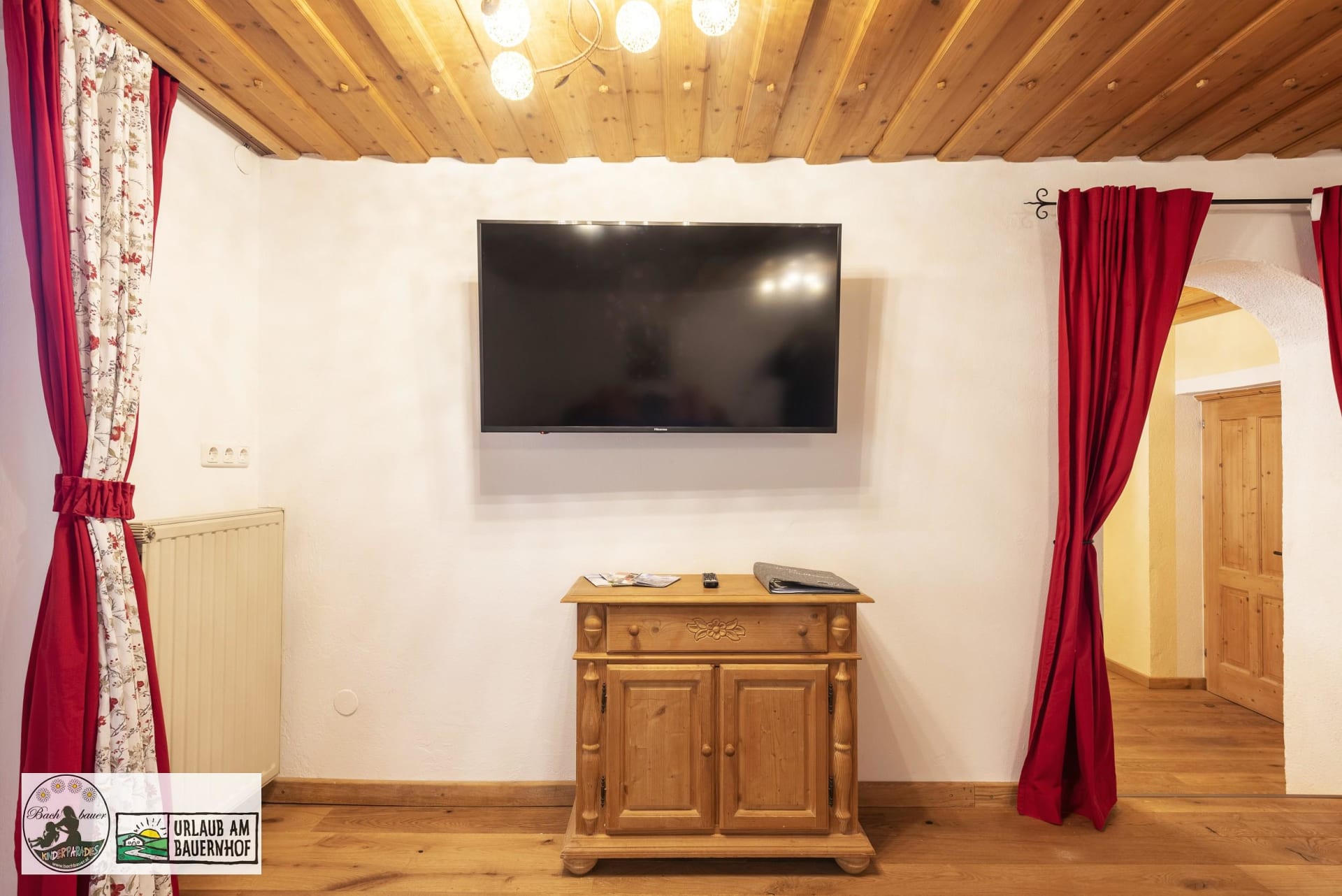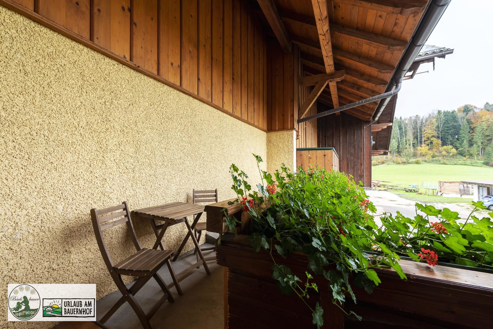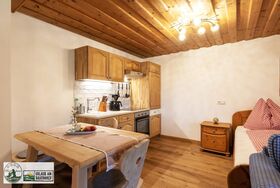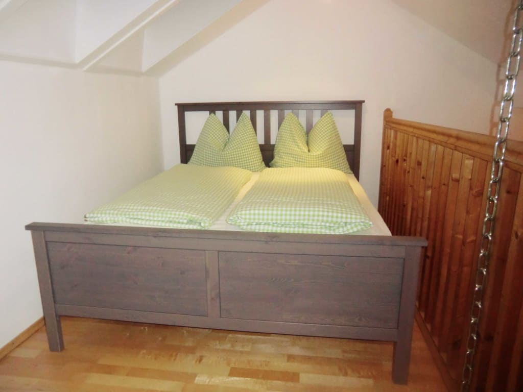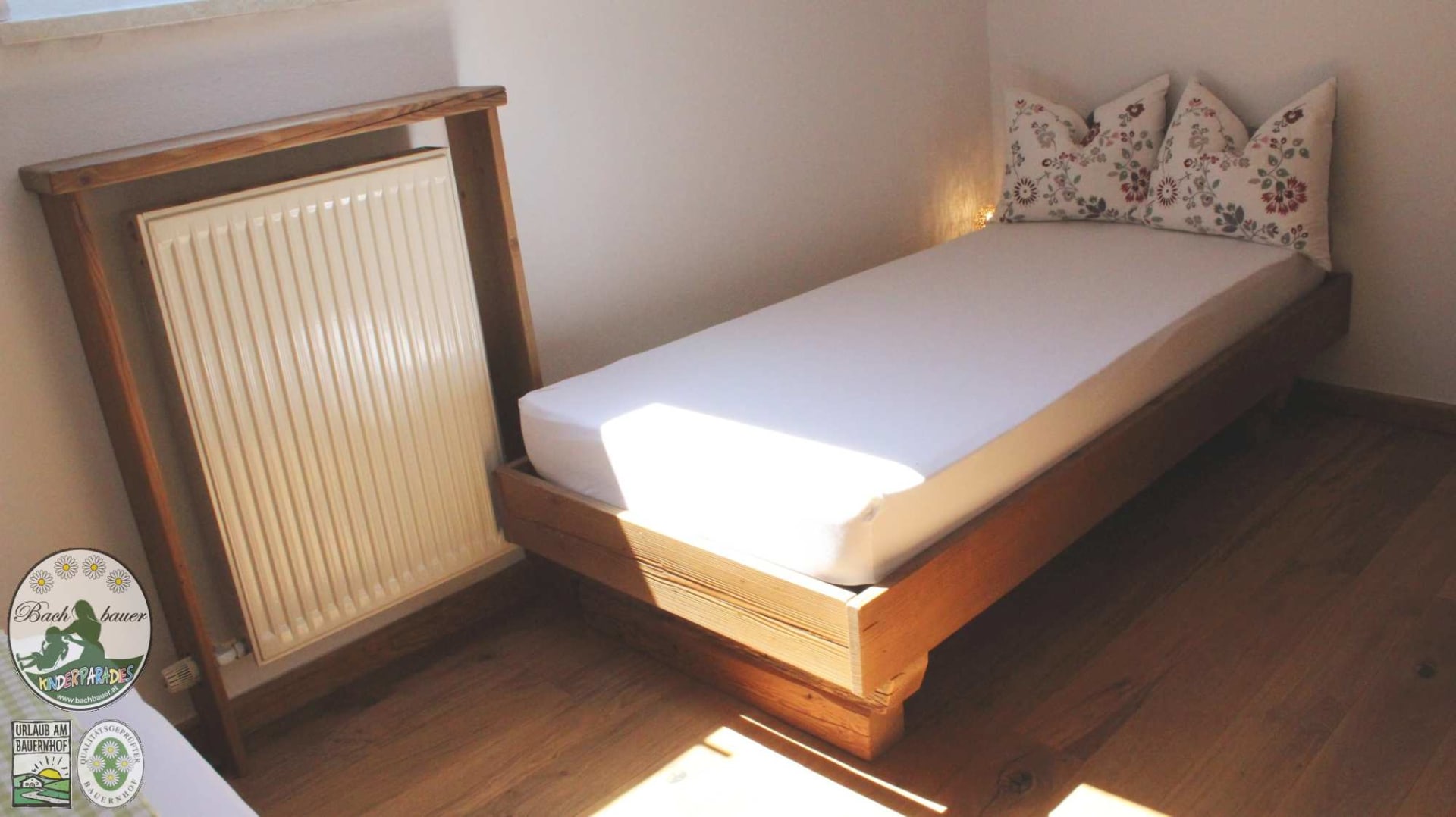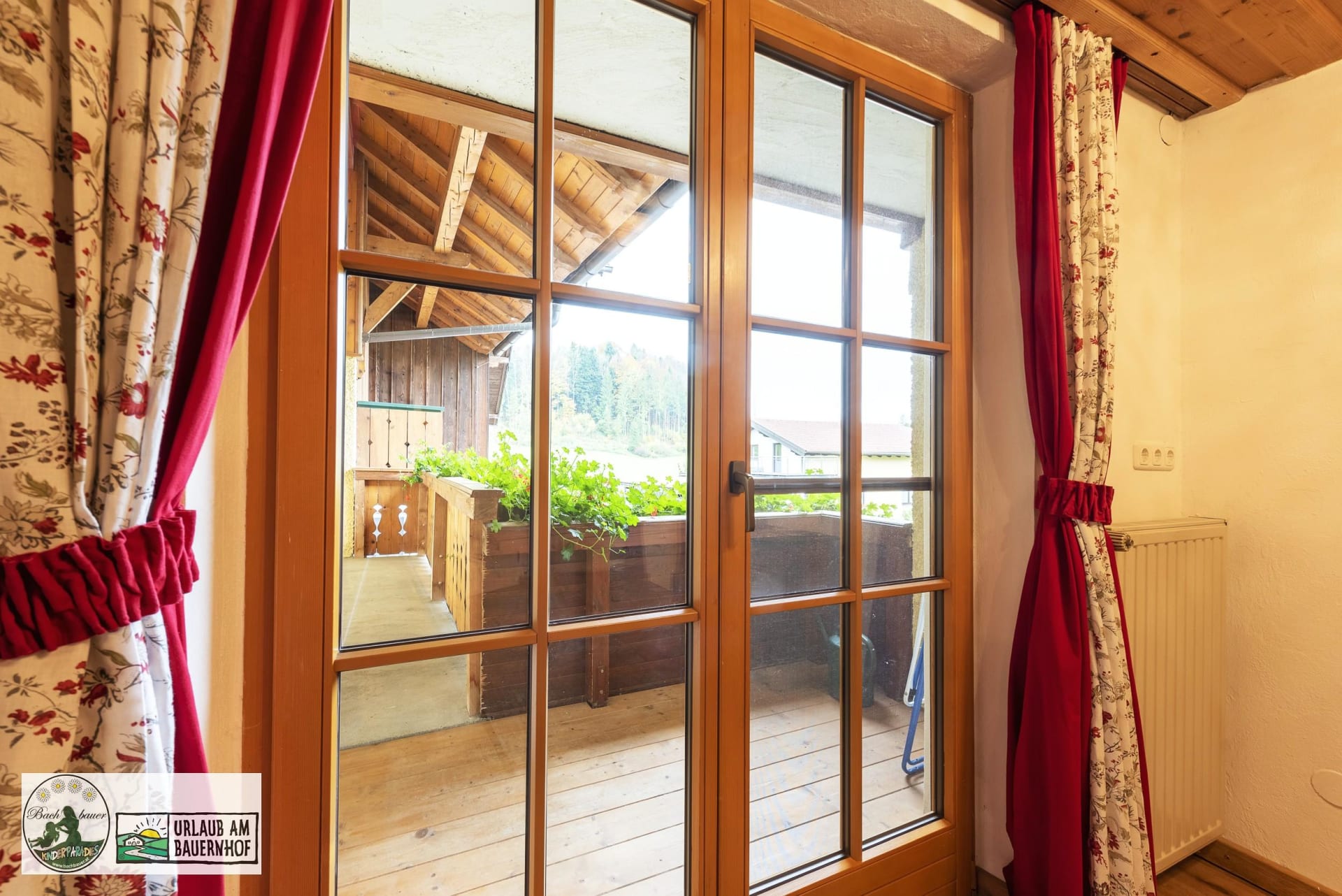 Dieses gemütliche Familienzimmer ist ca. 48 m² groß und für 1-4 Personen. Wohn-Schlaf-Zimmer mit Doppelbett. Bad/WC. Kinderzimmer mit zwei Einzelbetten (Durchgang zum Eltern-Schlaf-/Wohnraum ohne Tür). Holzböden und Vollholzmöbel. Es hat einen großen Balkon mit Aussicht auf den Hof, Kinderspielplatz und Fuhrpark teilweise einsehbar. Küche komplett eingerichtet. Sat-TV