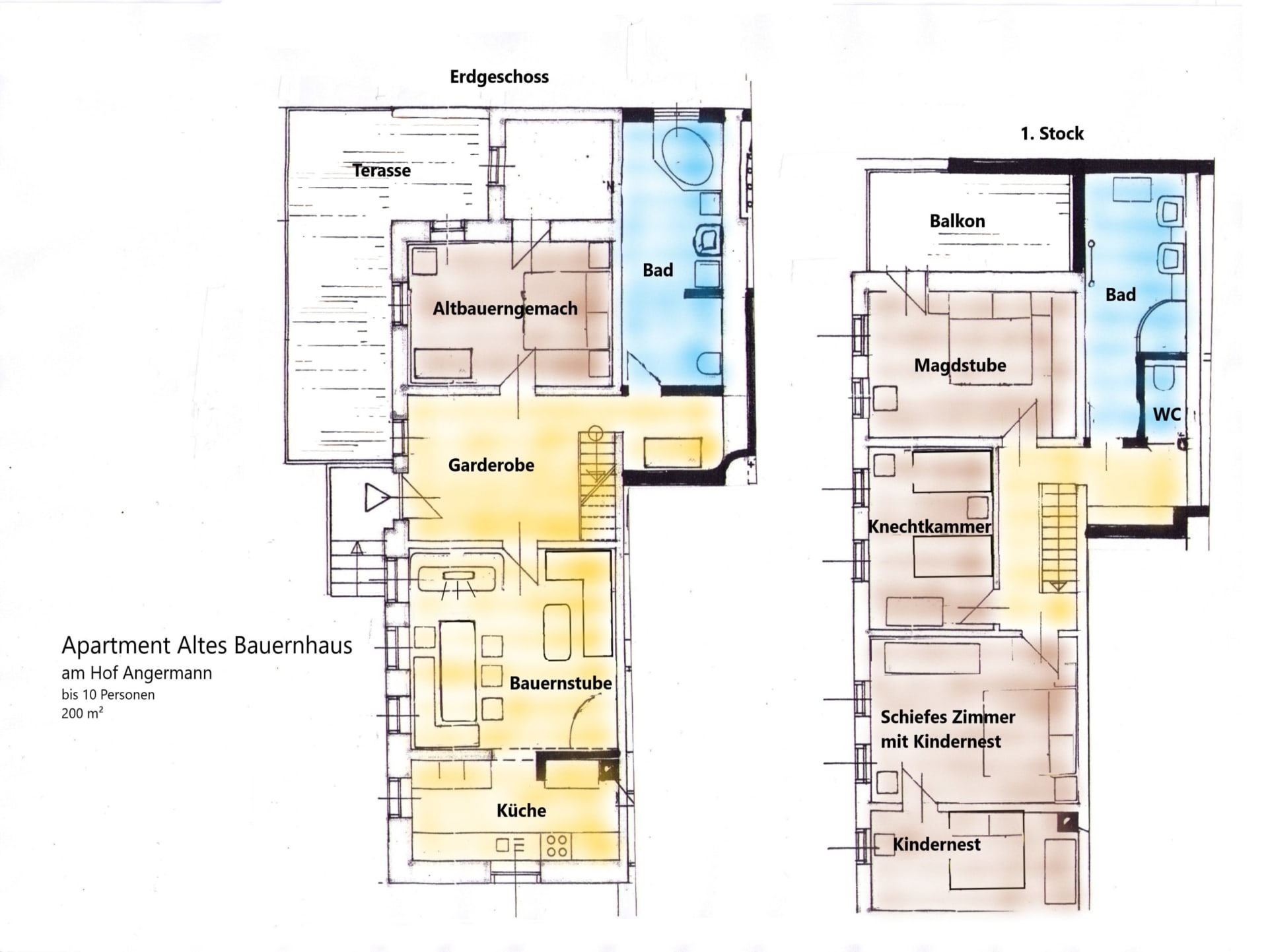 Der Angermann ist ein ruhig gelegener Erbhof eingebettet im Naturpark Attersee-Traunsee mit Streuobstwiesen,  Bergen und Seen. Die Zimmer der verschiedenen Wohnungen mit See- und Bergblick lassen die Herzen der Urlauber höher schlagen.