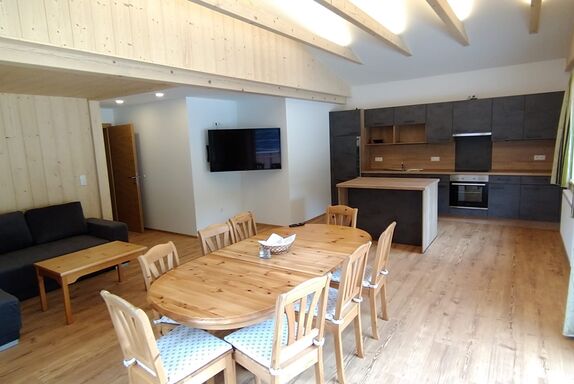 Schlafen unterm Sternenhimmel. Diese sehr geräumige und gemütliche Ferienwohnung wurde soeben renoviert. Sie befindet sich im 2. Stock. Viel Platz für die Kinder zum Toben. Getrennte Schlafzimmer sorgen für die Ruhe der Eltern z.T. Zirbenbetten. Die schöne Einrichtung mit viel Holz vermittelt Bodenständigkeit und Wärme. Fußbodenheizung im Bad. Große Dachterrasse mit Liegestühlen. Bad und WC getrennt. Für Gruppen oder größere Familien bestens geeignet.