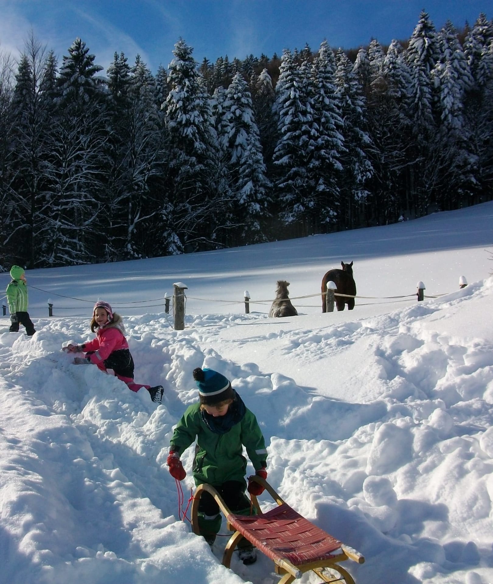 Unsere Highlights: Rodeln und Eisstockschießen sind unsere lustigsten Winter-Besonderheiten. Mit Schneeschuhen durch den Winterwald wandern, eine Schneeburg oder den größten Schneemann bauen sind - bei ausreichend Schnee - besonders lustig.