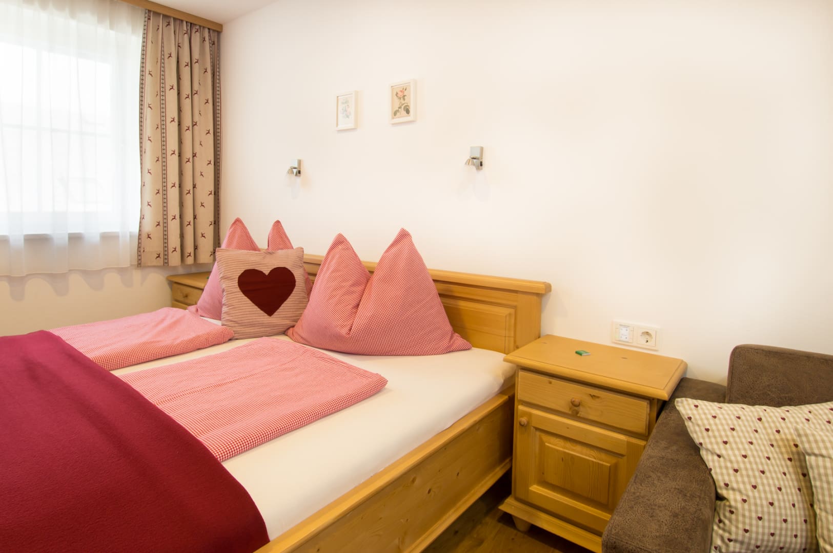 Ein gemütliches Zimmer mit Doppelbett und Schlafsofa für bis max. 3 Personen mit Kabel-TV, Dusche, WC, kleiner Gästeküche am Gang.
