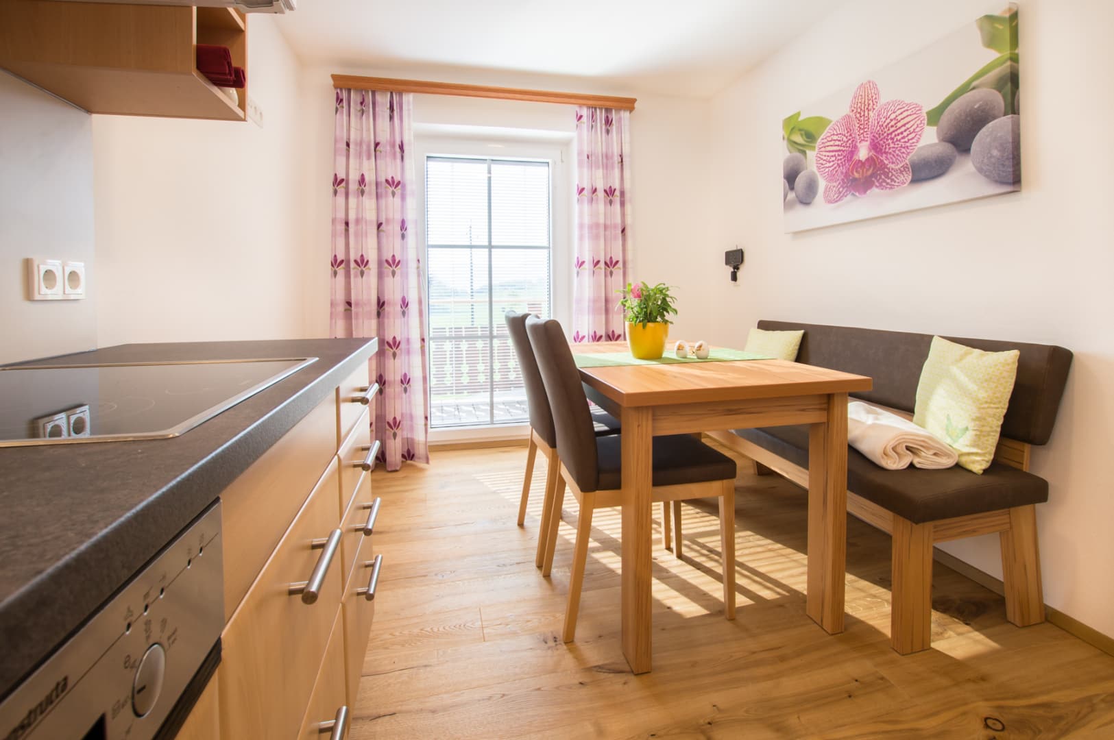 Genießen Sie in einer unserer 3 gemütlichen Ferienwohnungen Ihren Urlaub auf unserem Bauernhof. Eine große, geräumige Ferienwohnung bis max. 4 Personen mit herrlichem Bergblick auf Schafberg, Mondseeberg und Drachenwand und sogar Seeblick von Ihrem Balkon erwartet Sie.