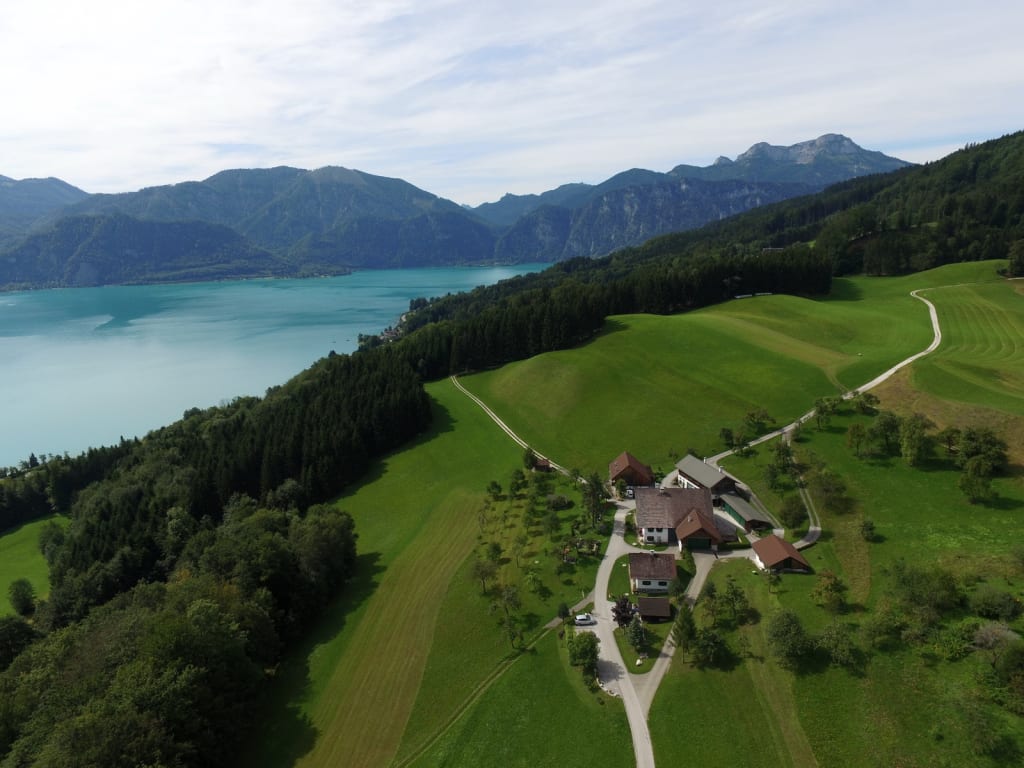 Unser gepflegter Ferienbauernhof befindet sich in herrlicher Einzellage im Naturschutzgebiet Egelsee auf einer Anhöhe oberhalb des Attersees mit herrlichem Panoramablick über See und Gebirge!